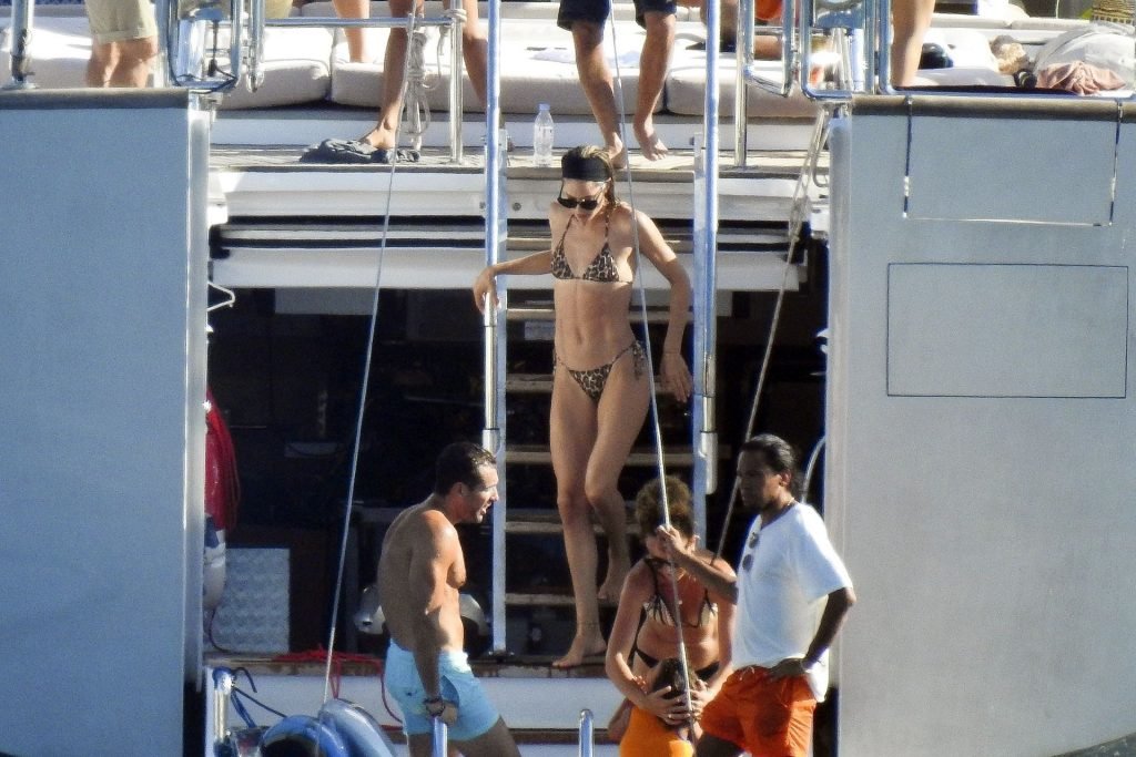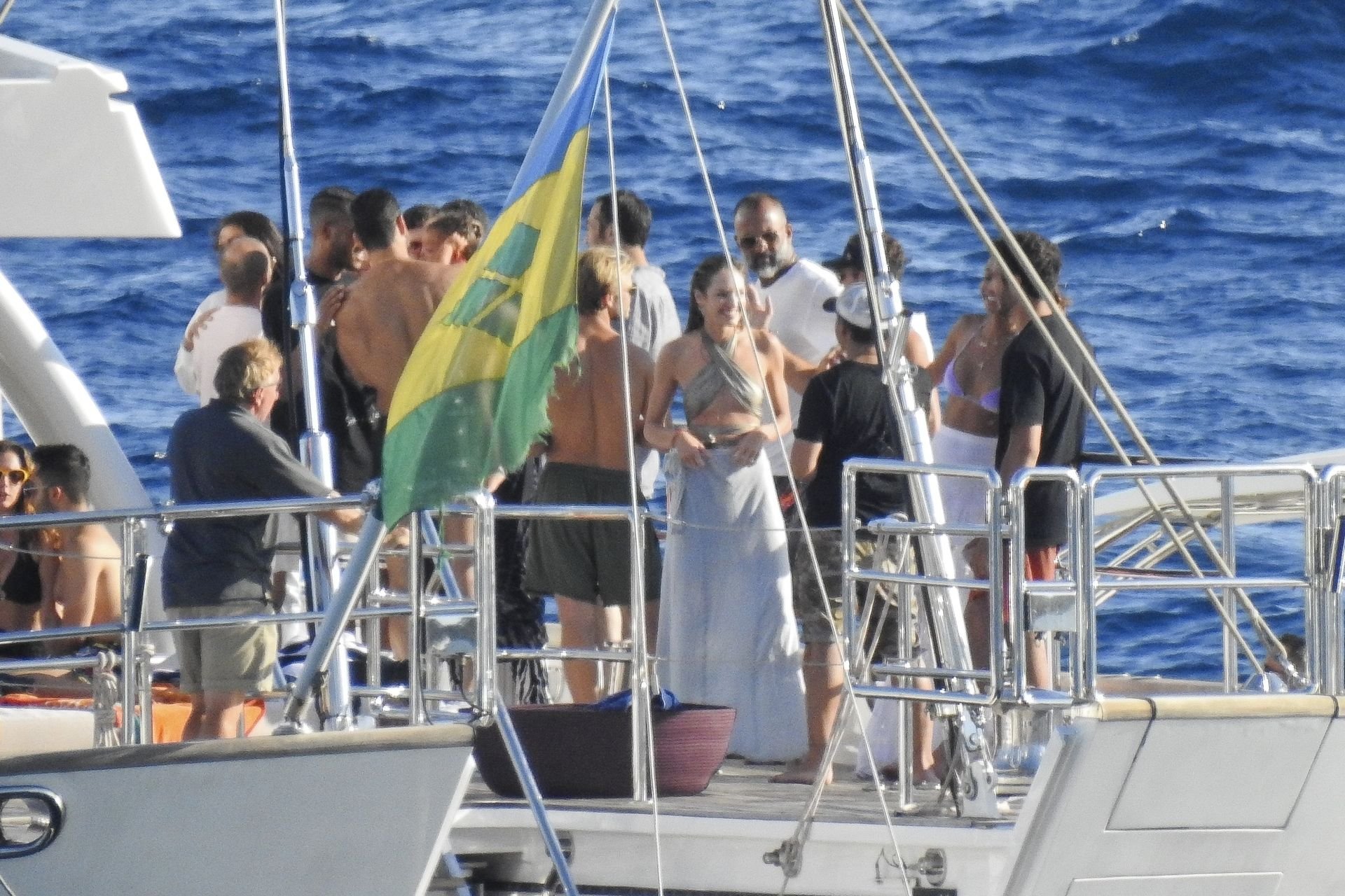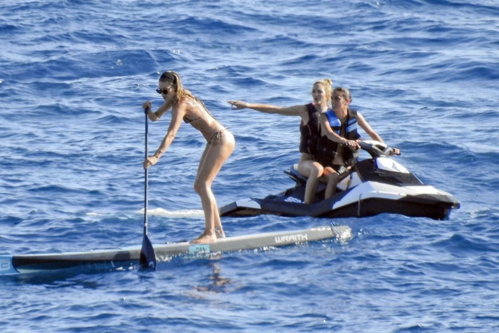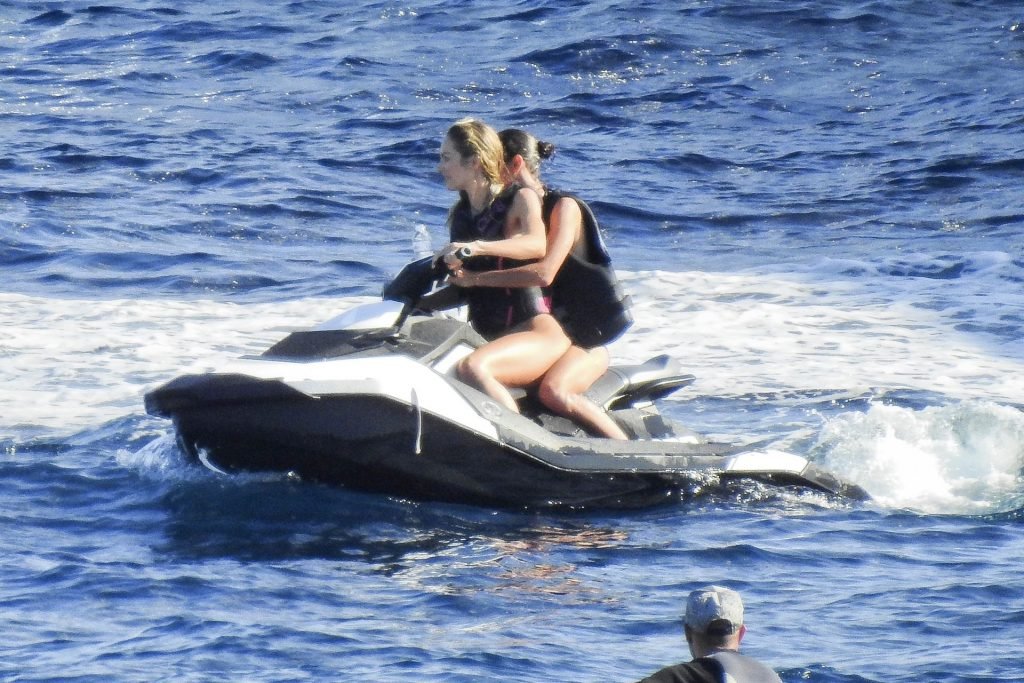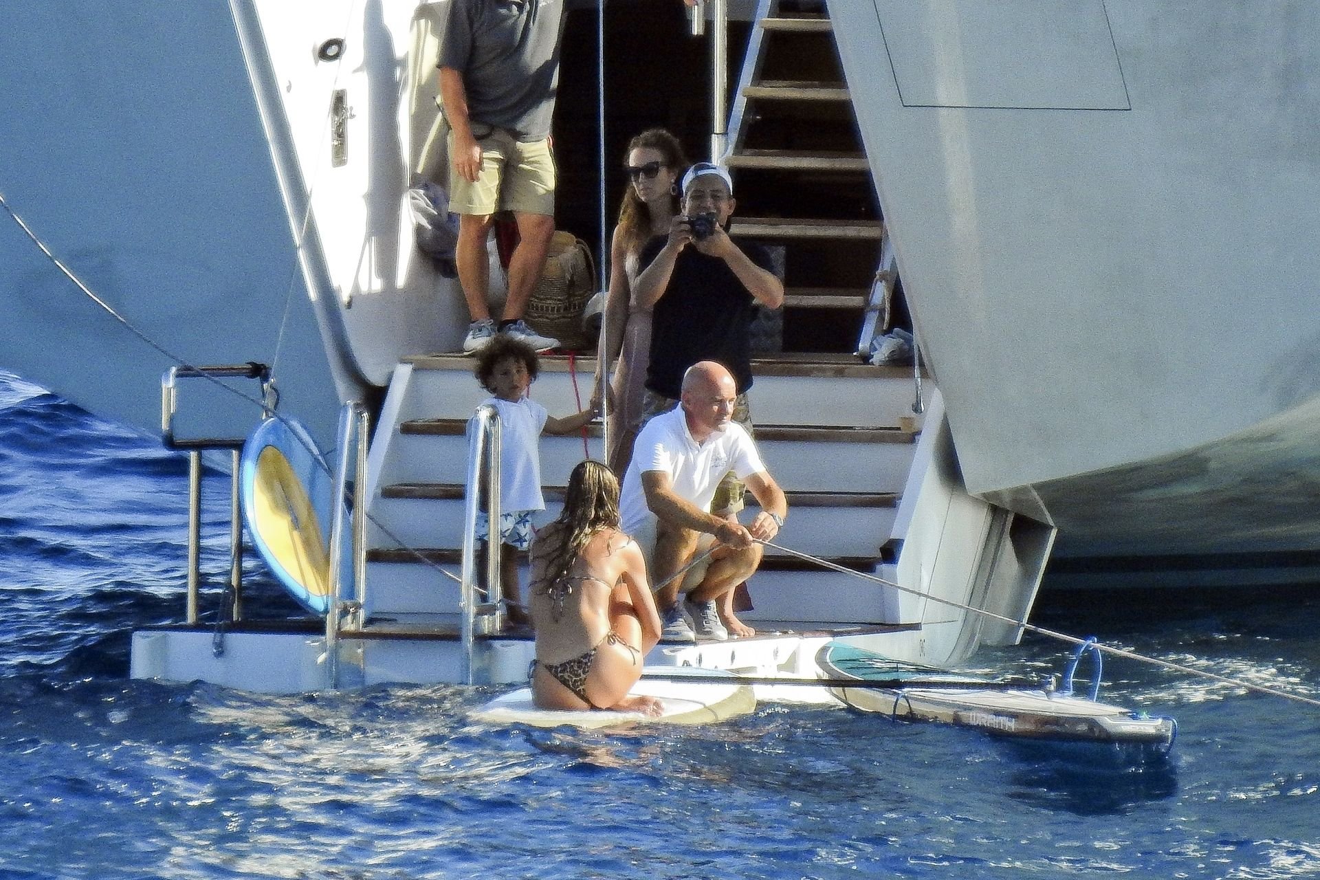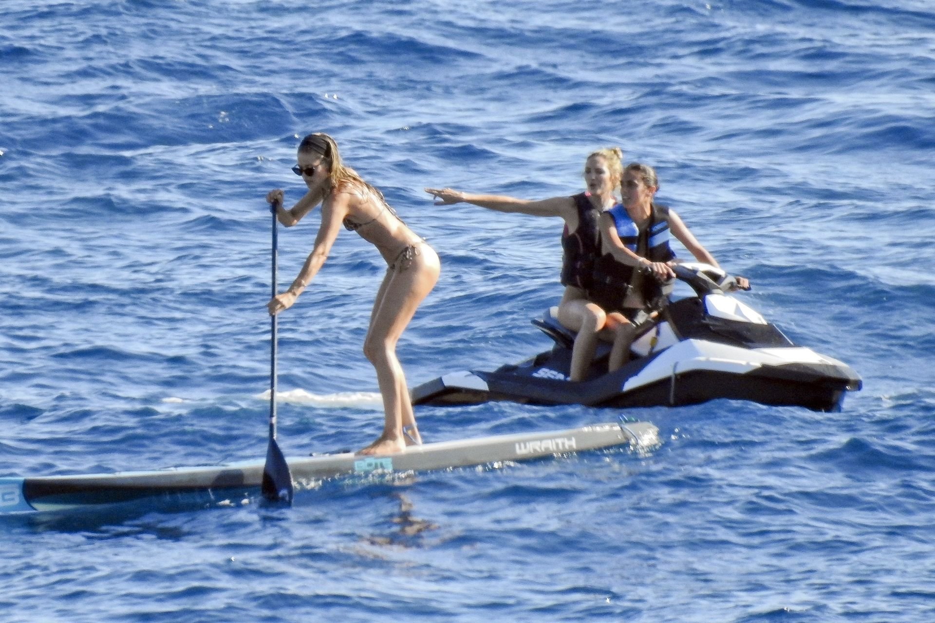 DJs Sunnery James e Ryan Marciano, o ator Glenn Powell e as supermodelos Doutzen Kroes, Candice Swanepoel, Joan Smalls começam a festa a bordo de uma embarcação de luxo em Ibiza, 14/08/2019. Também a bordo estão o produtor de cinema Mohamed al Turki e o socialite Richie Akiva.