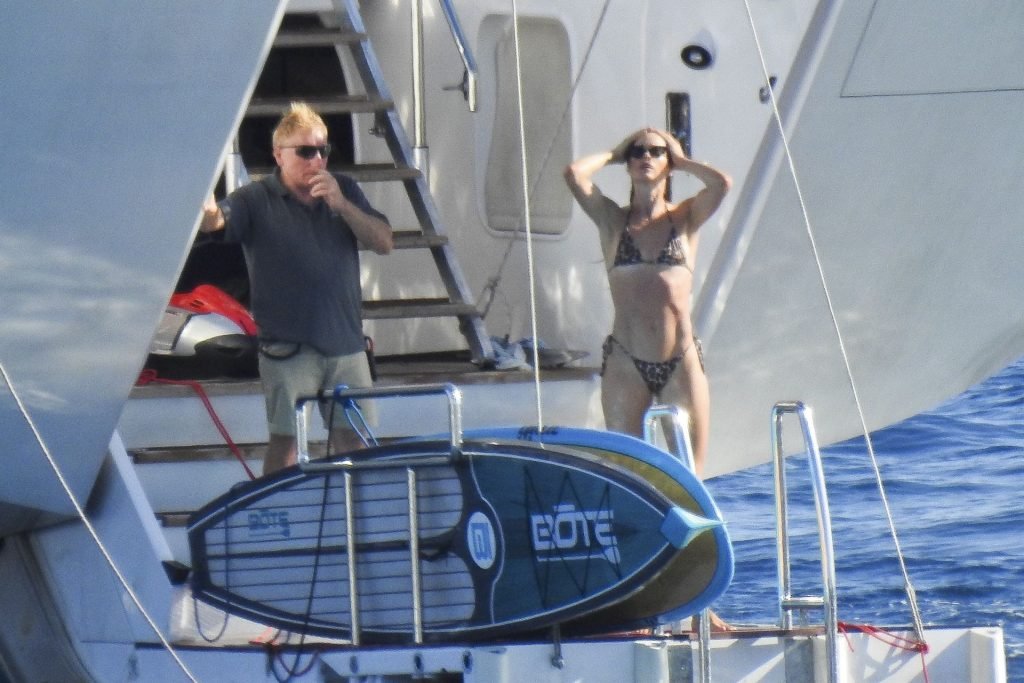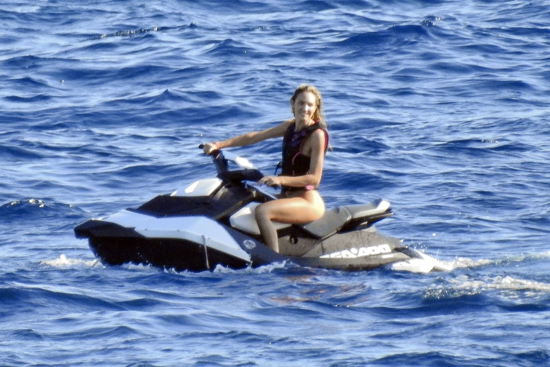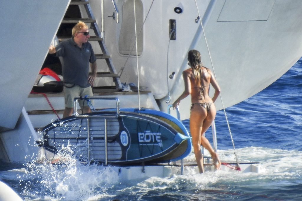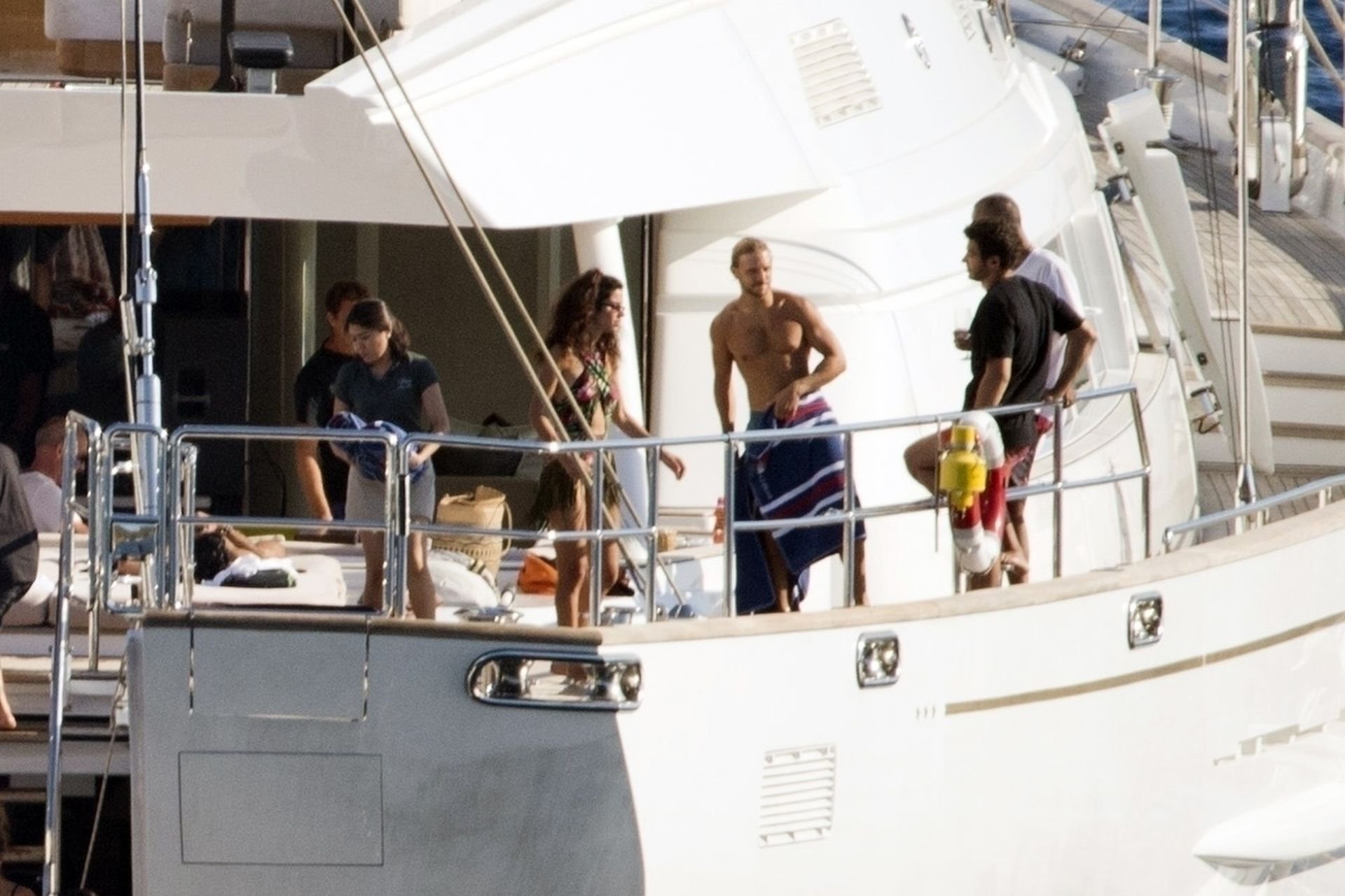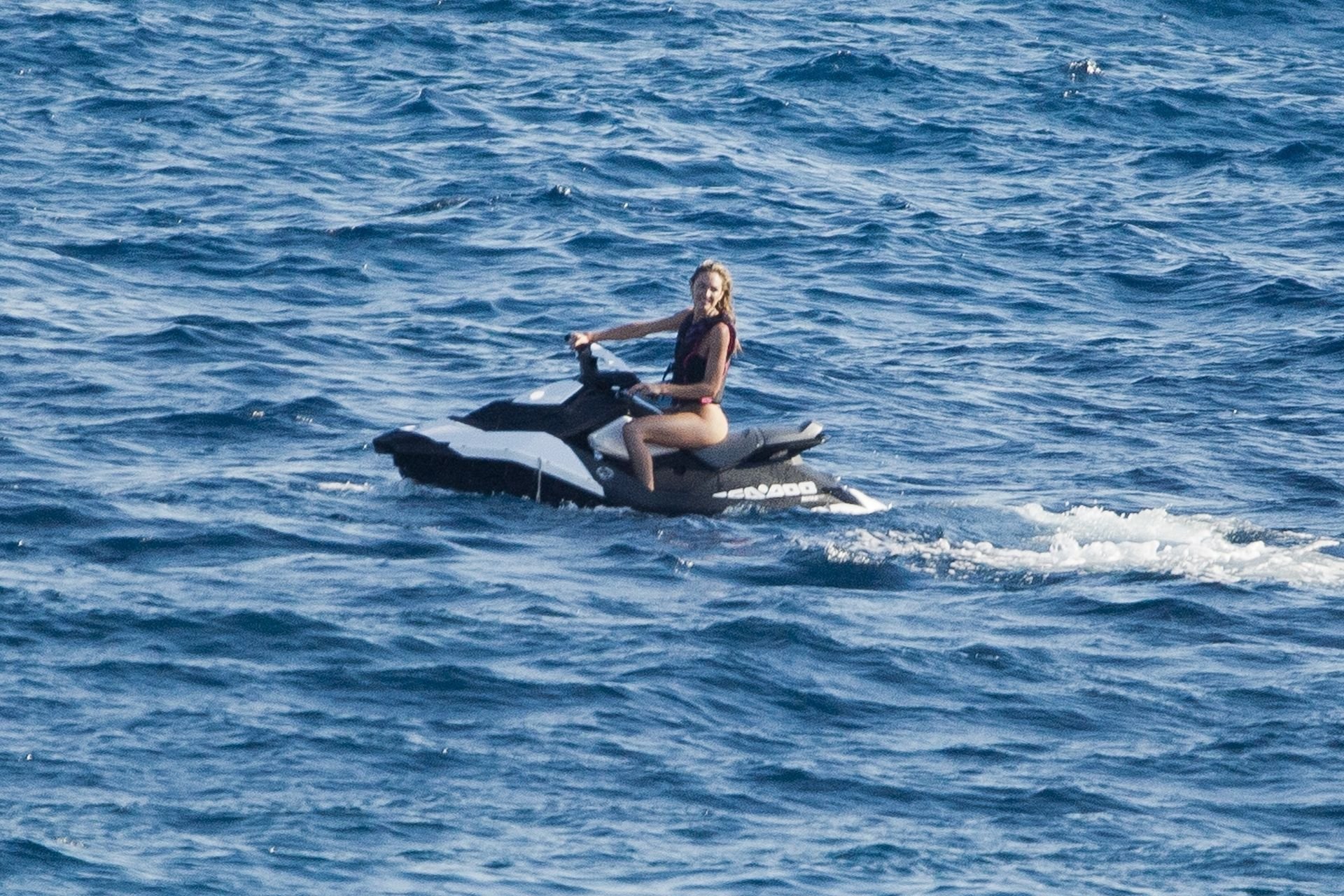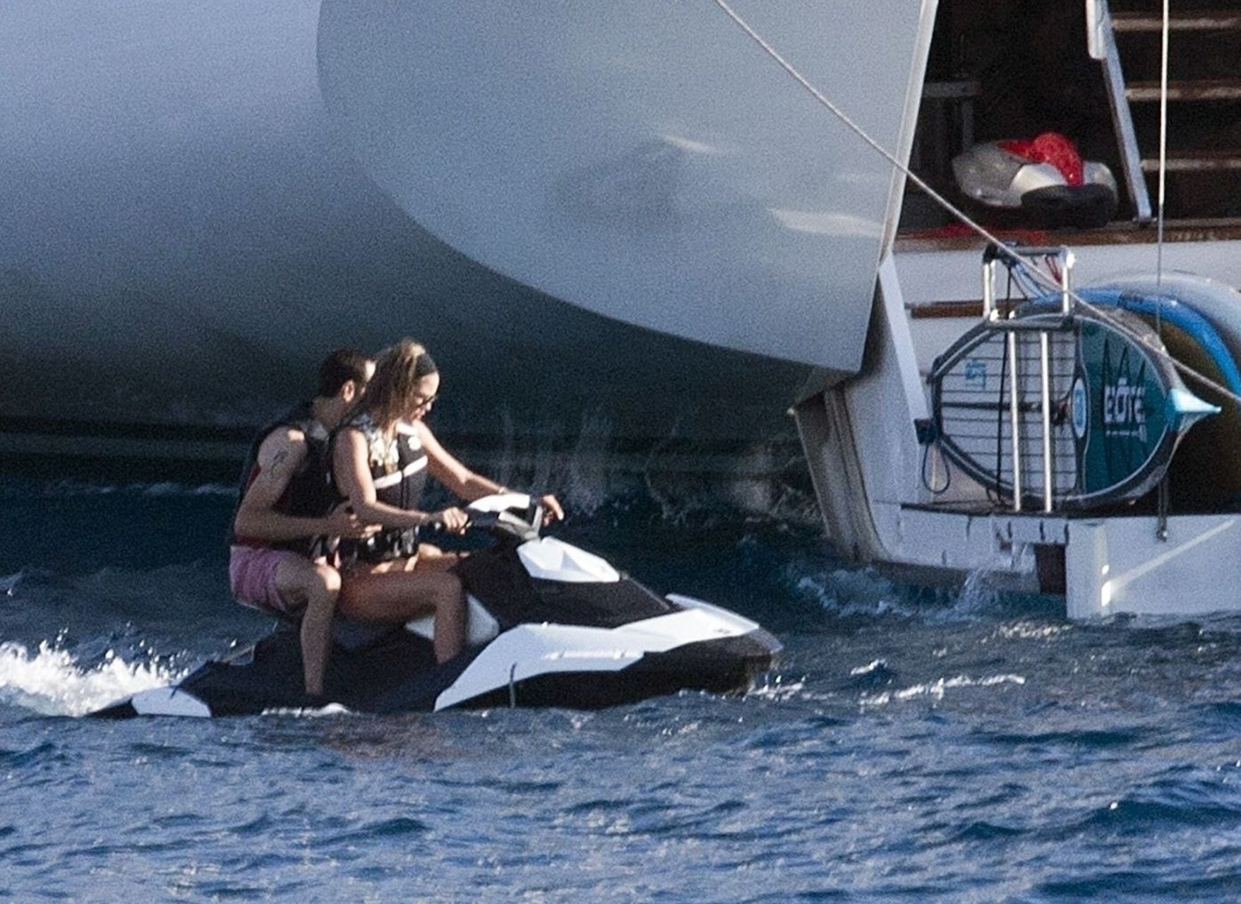DJs Sunnery James e Ryan Marciano, o ator Glenn Powell e as supermodelos Doutzen Kroes, Candice Swanepoel, Joan Smalls começam a festa a bordo de uma embarcação de luxo em Ibiza, 14/08/2019. Também a bordo estão o produtor de cinema Mohamed al Turki e o socialite Richie Akiva.