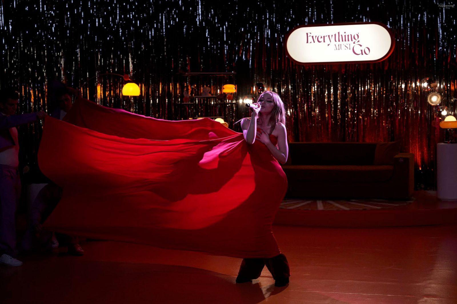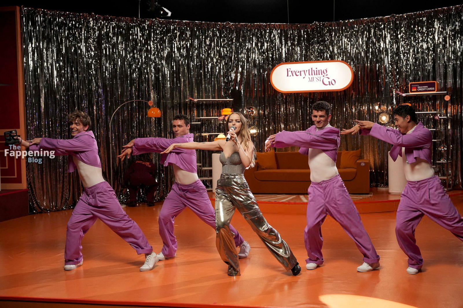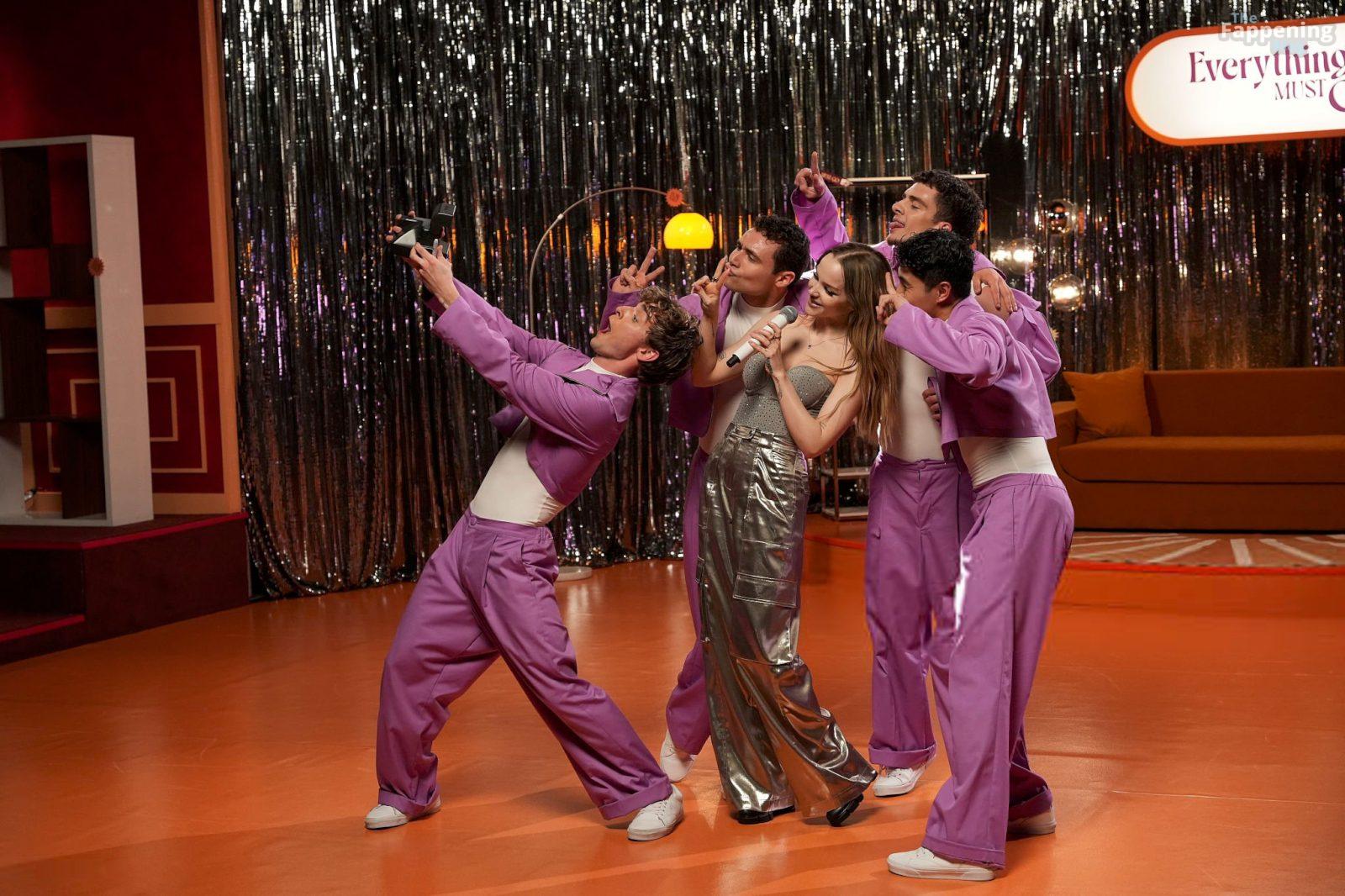 Dove Cameron exibe seu decote em um espartilho brilhante e calças justas, indo totalmente sexy para sua transmissão ao vivo de “Everything Must Go”.