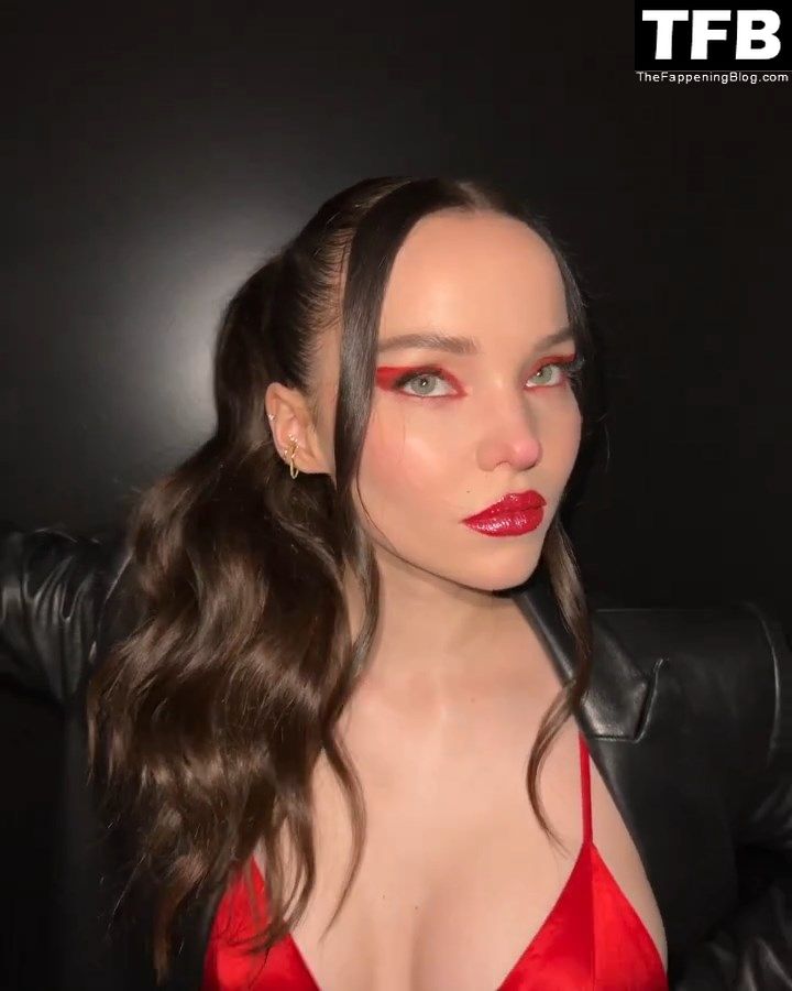 Dove Cameron exibe seus seios perfeitos enquanto posa com um sutiã vermelho – Instagram, 16/12/2022.