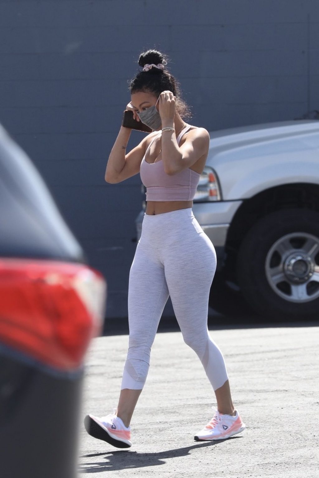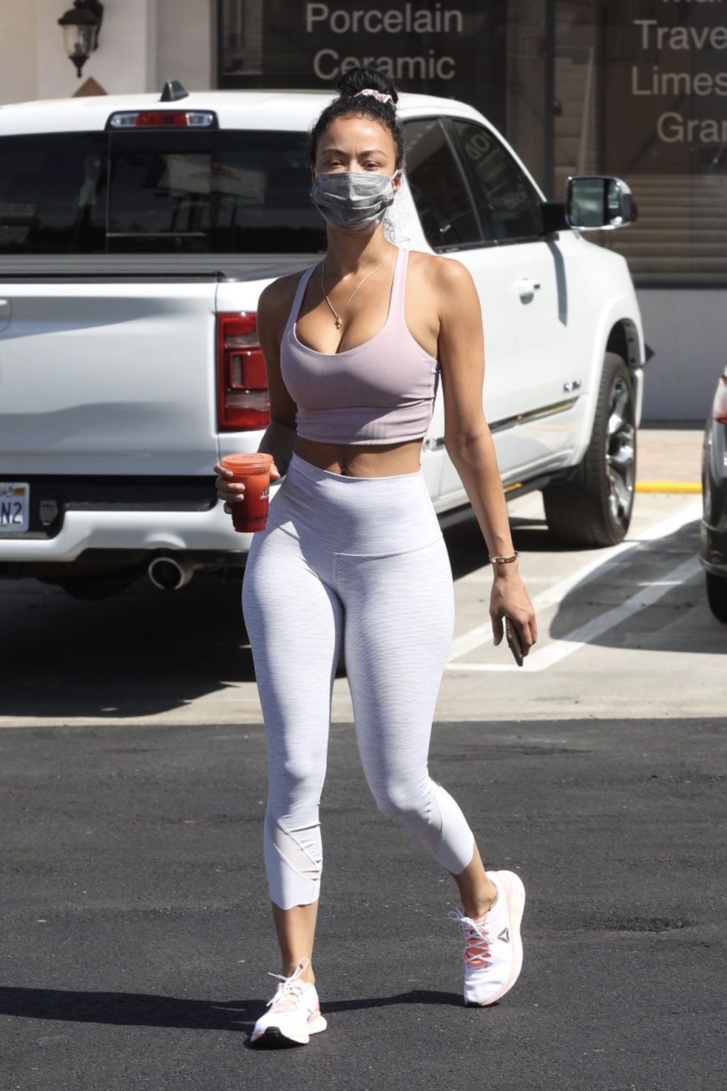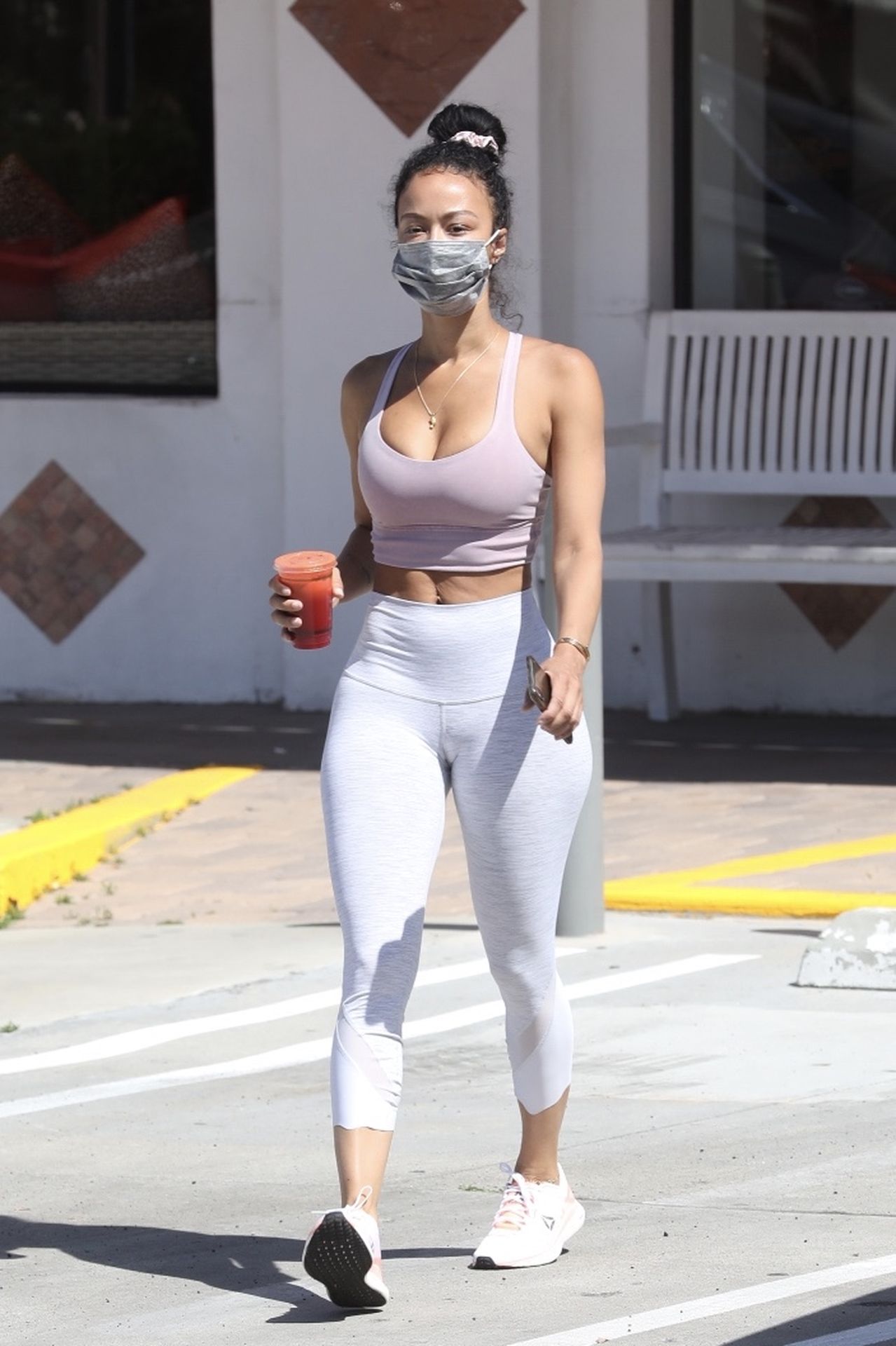 Draya Michele exibe seu corpo sexy usando uma máscara em meio à Covid-19 enquanto chega ao Juicy Ladies em Woodland Hills após um treino, 07/05/2020.