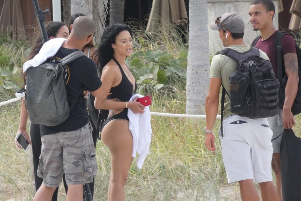 A modelo e atriz americana Draya Michele, 33 anos, foi fotografada com um maiô preto sexy durante um ensaio fotográfico na praia em Miami Beach. A jovem de 33 anos estava ótima exibindo seu corpo muito curvilíneo.