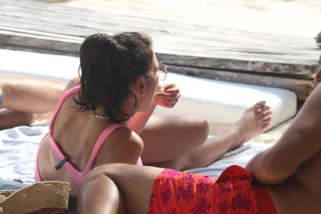 Cantora Dua Lipa e Anwar Hadid continuam sua escapada na praia mexicana em Tulum, 01/05/2021.