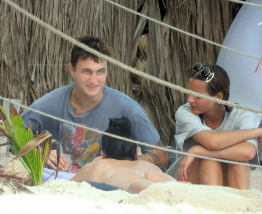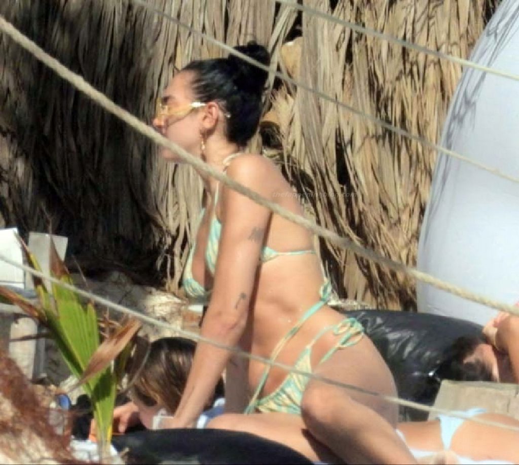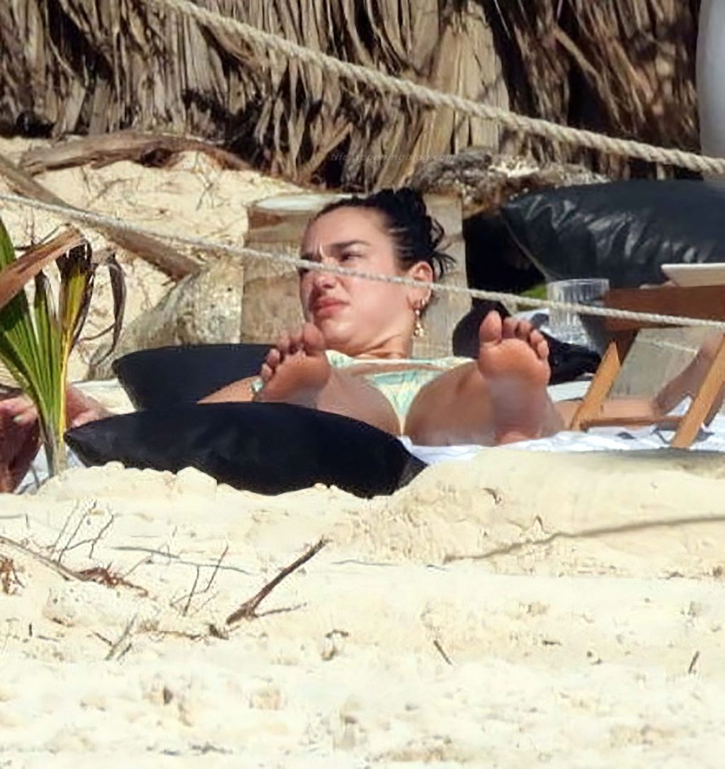 Cantora Dua Lipa mostra seu bumbum de biquíni na praia durante férias em Tulum, 01/01/2021.