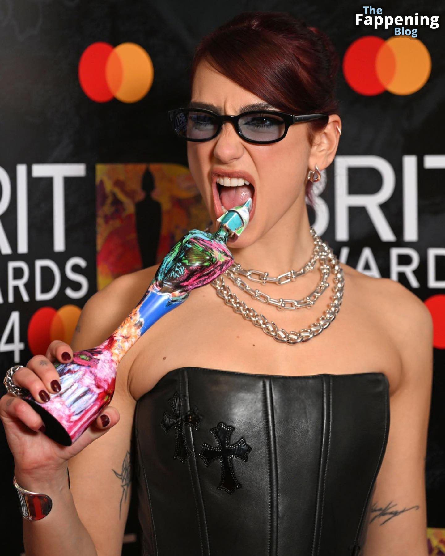 A cantora faz pose no tapete vermelho do BRIT Awards no sábado, 2 de março de 2024, na O2 Arena em Londres.
