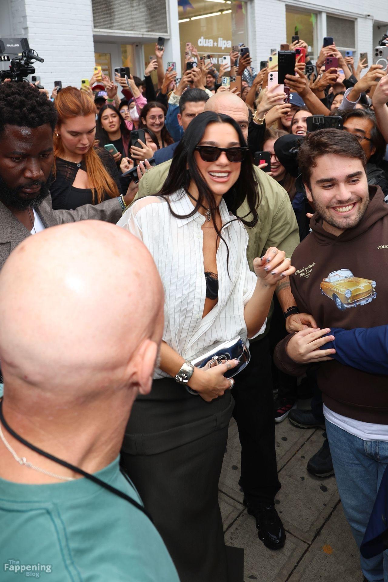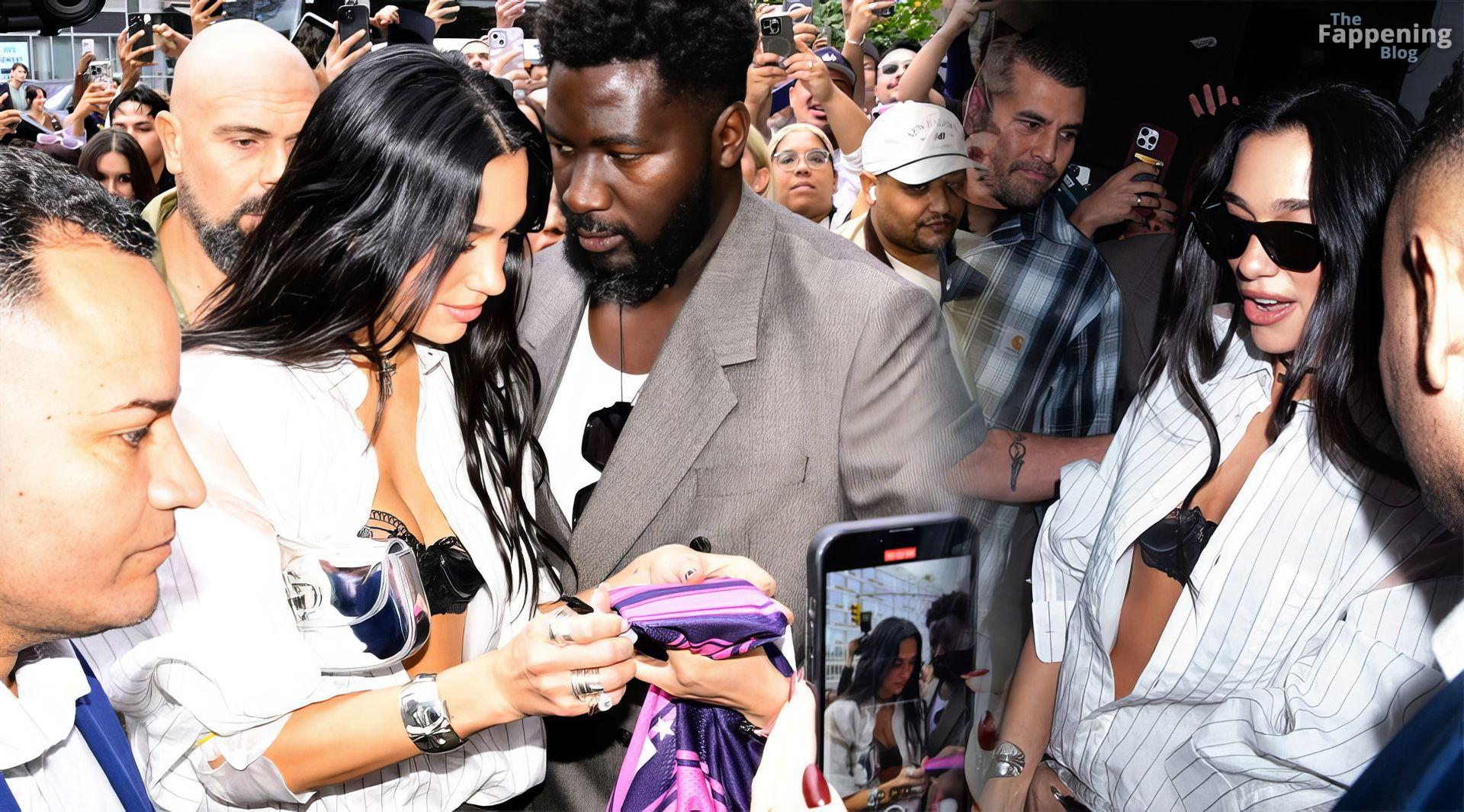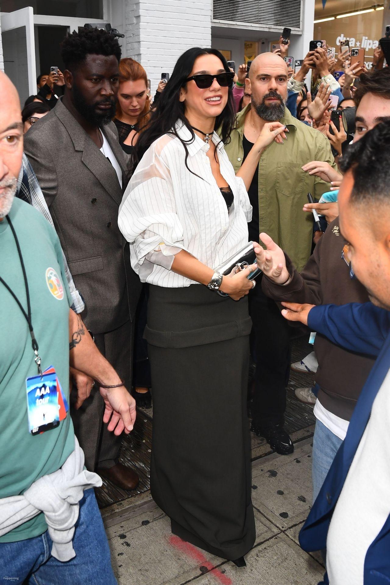 Bra à mostra, decote em exibição—o visual ousado de Dua Lipa no pop-up em NYC deixou os fãs sem palavras e as câmeras disparando Nova York, NY A cantora Dua Lipa está toda sorrisos ao chegar em sua “Radical Optimism” Pop-Up Shop em Manhattan.