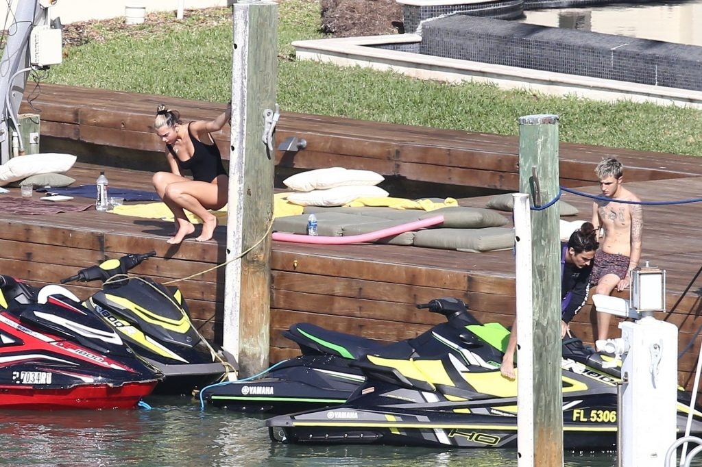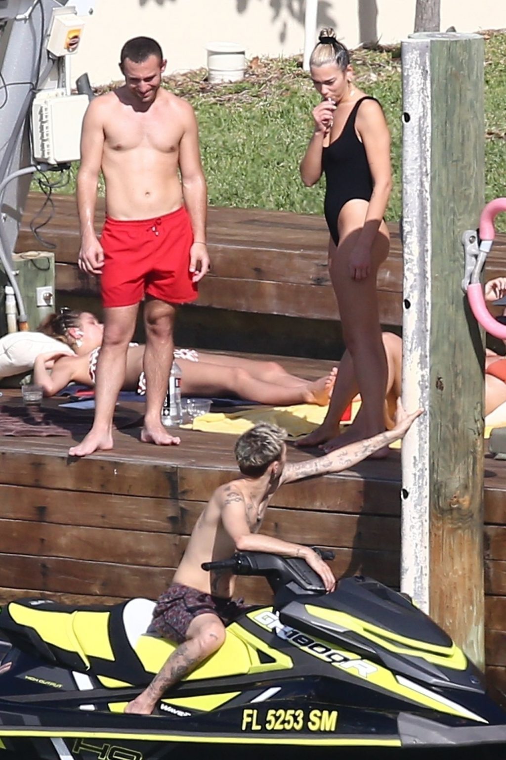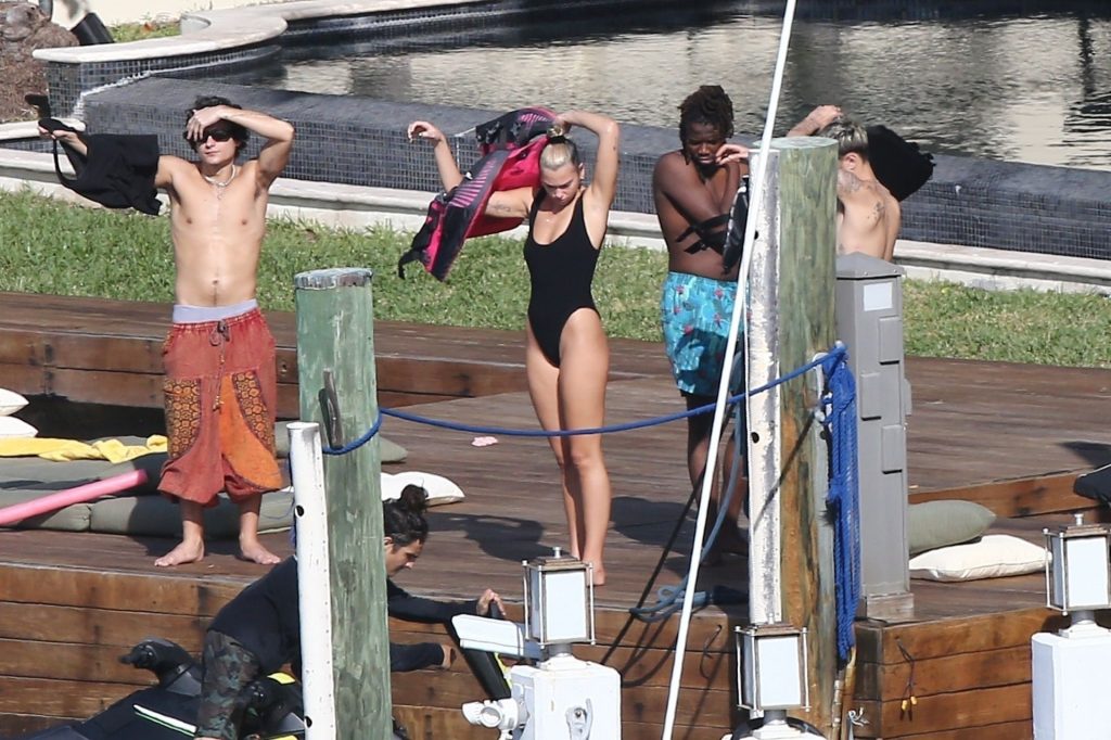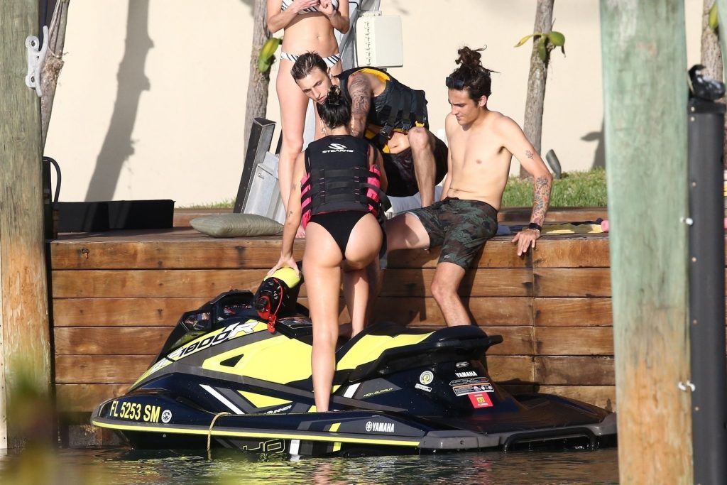 É sexta-feira… a cantora Dua Lipa e o namorado Anwar Hadid estão começando o fim de semana com yoga e diversão de jetski em Miami com amigos, 01/03/2020.