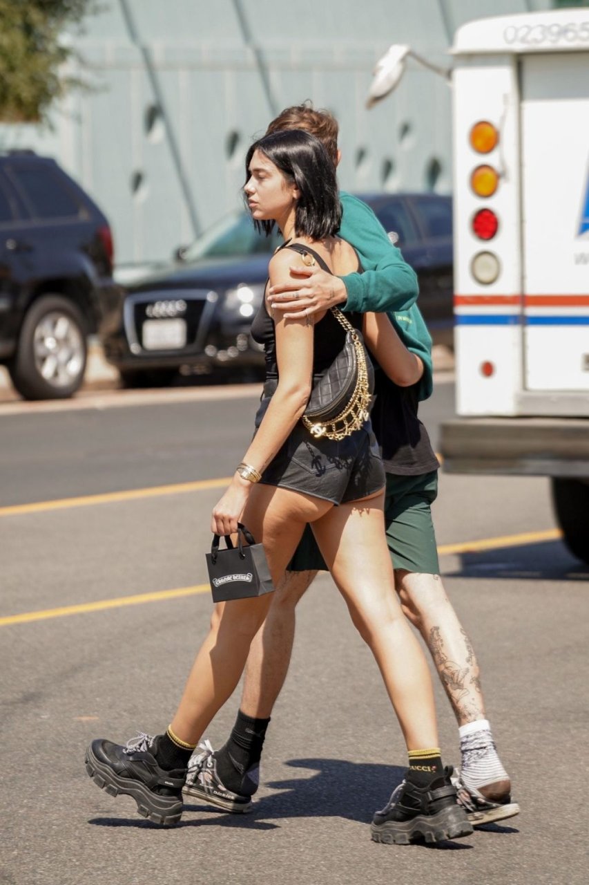 Anwar Hadid e Dua Lipa exibem carinho em público enquanto almoçam no Malibu Country Mart em Malibu, após comemorarem juntos o 24º aniversário dela ontem, 23/08/2019.