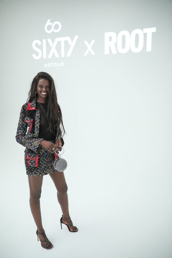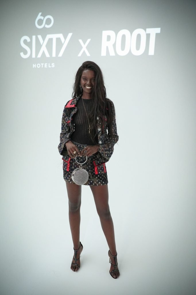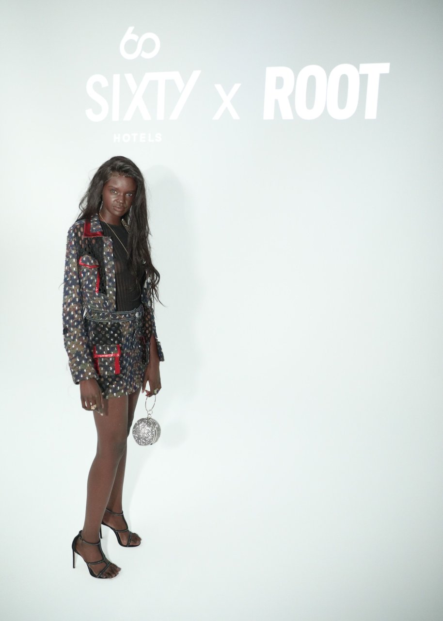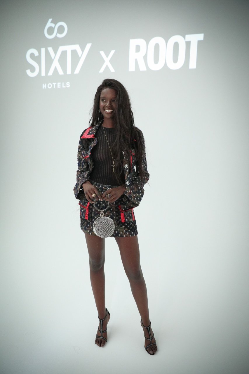 Duckie Thot sem sutiã usa uma blusa transparente no evento Sixty Hotels x Root, Nova York, 04/05/2017. Nyadak ‘Duckie’ Thot é uma modelo australiana. Idade: 21.
