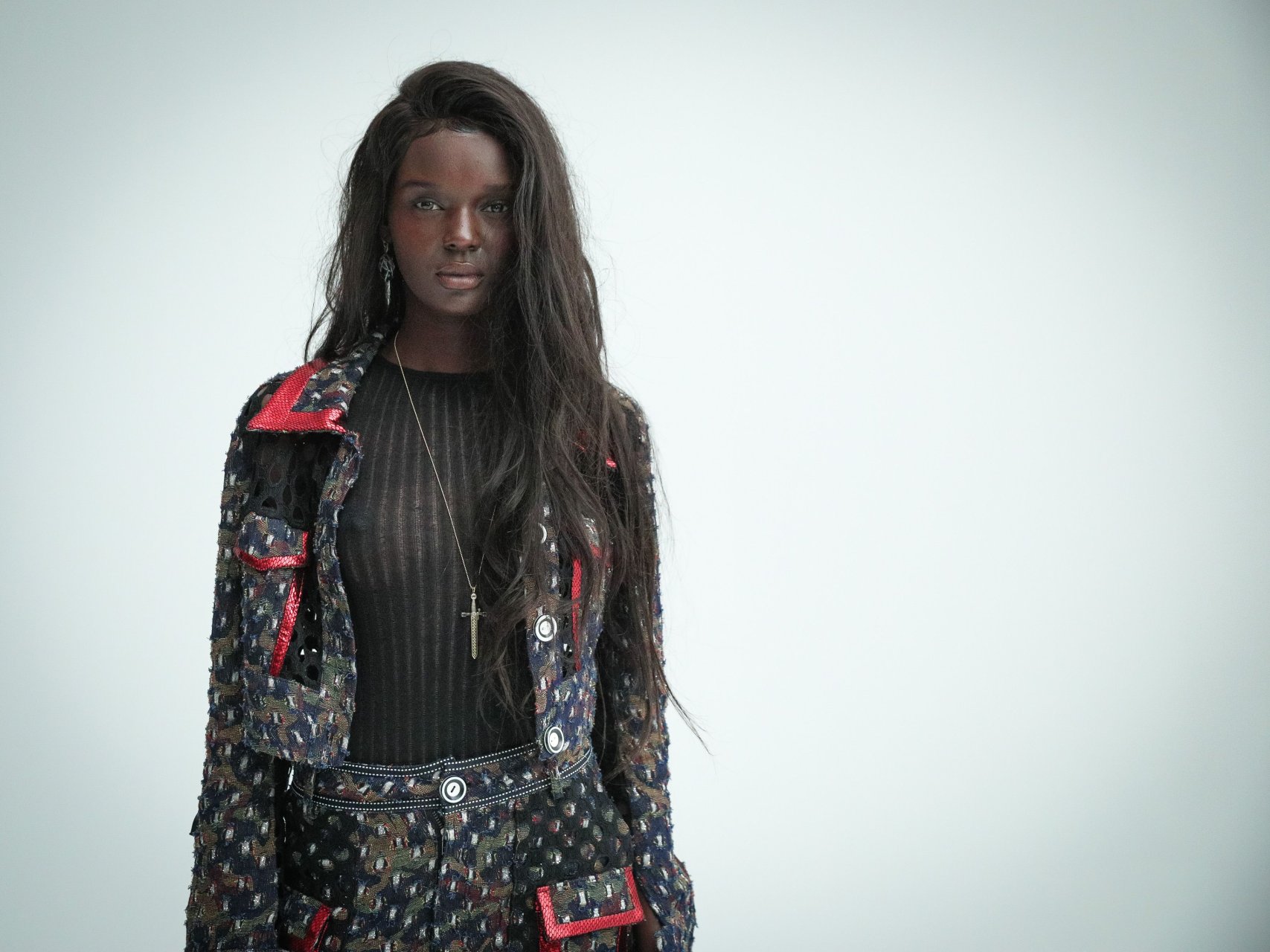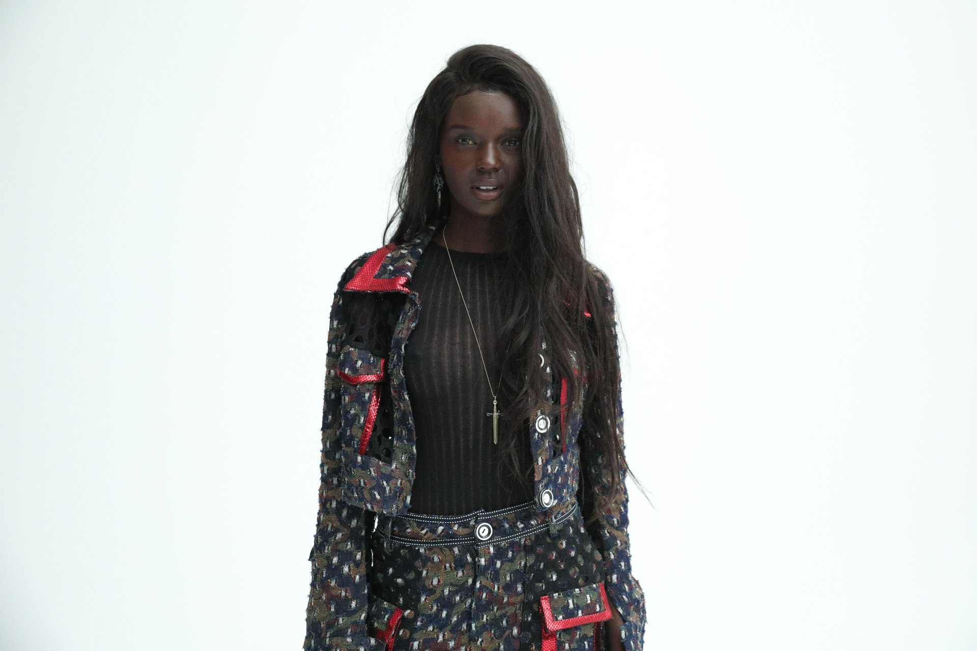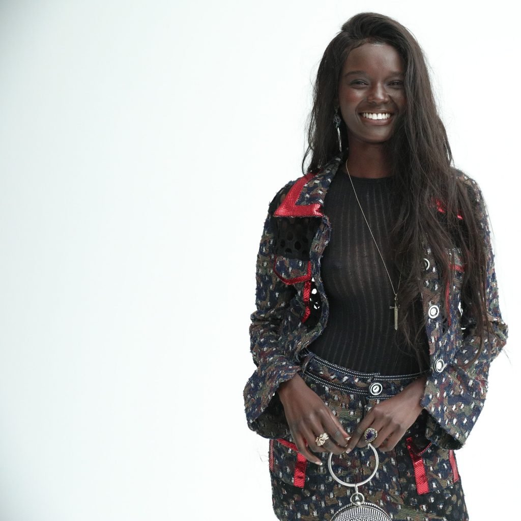 Duckie Thot sem sutiã usa uma blusa transparente no evento Sixty Hotels x Root, Nova York, 04/05/2017. Nyadak ‘Duckie’ Thot é uma modelo australiana. Idade: 21.