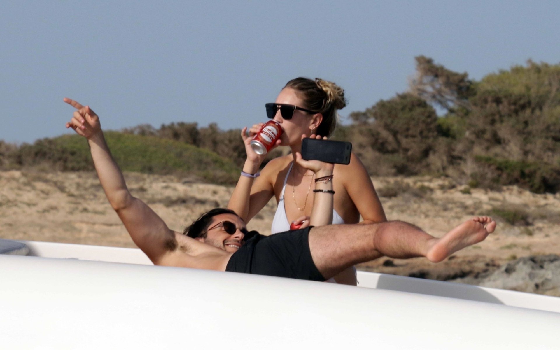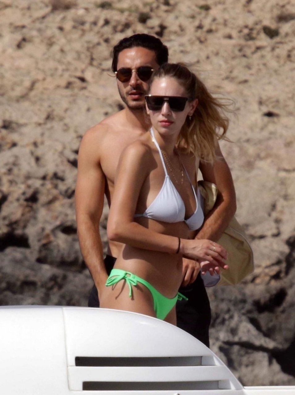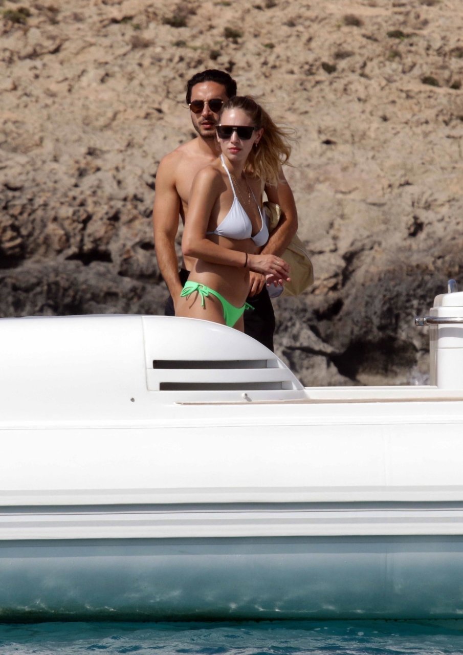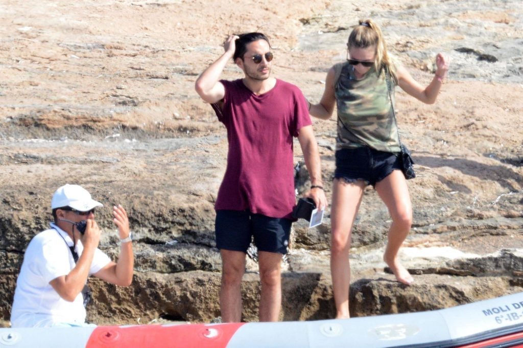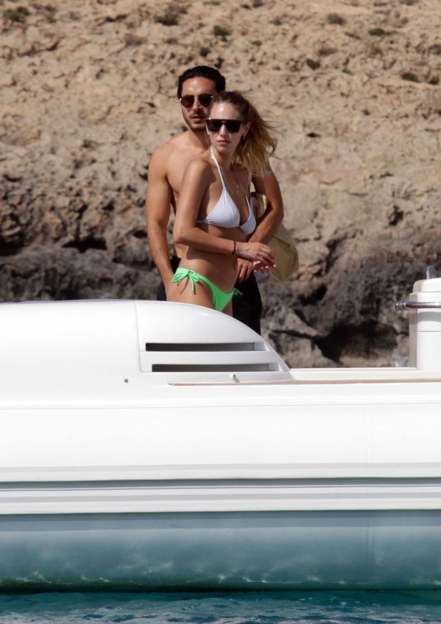 A modelo americana Dylan Frances Penn exibindo um público sexy demonstração de afeto com possível novo namorado de férias em Formentera, 17/07/2018. A filha de 27 anos do ator americano Sean Penn brilhou sob o sol espanhol com seu biquíni minúsculo.