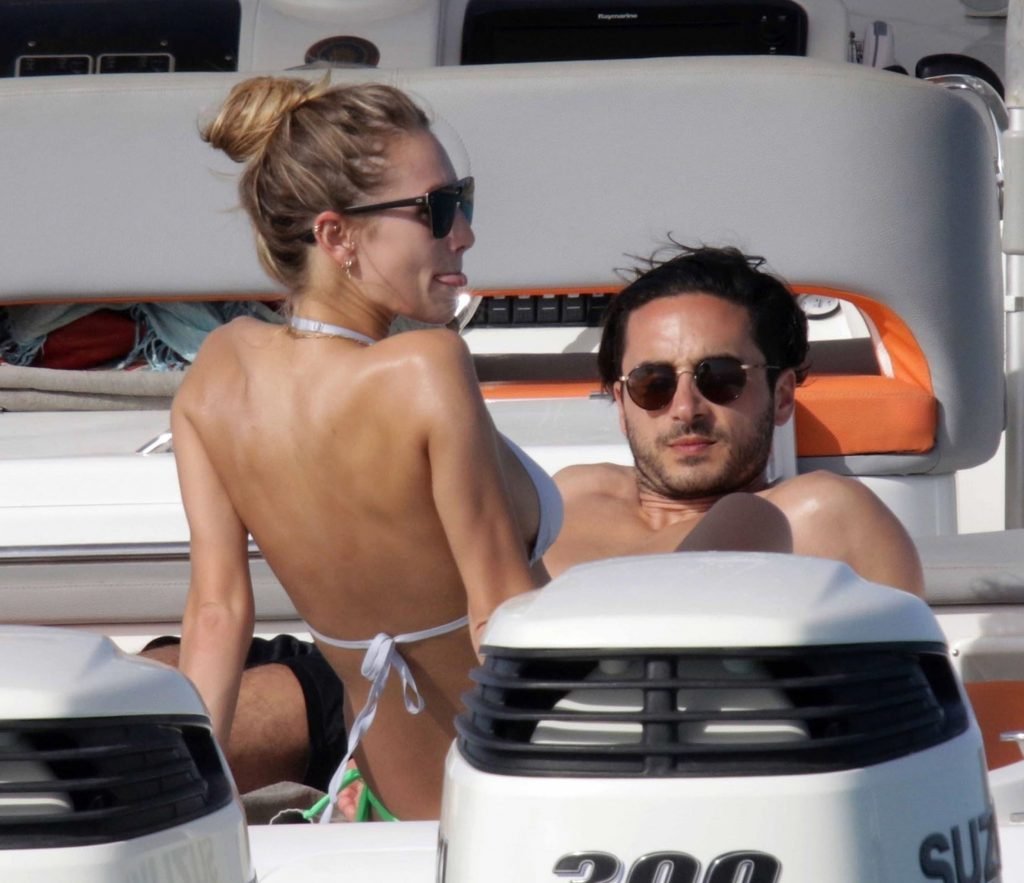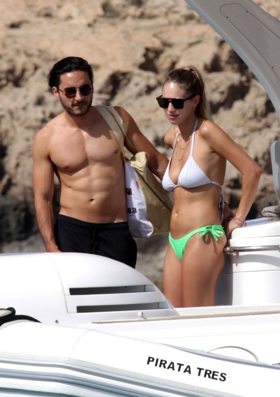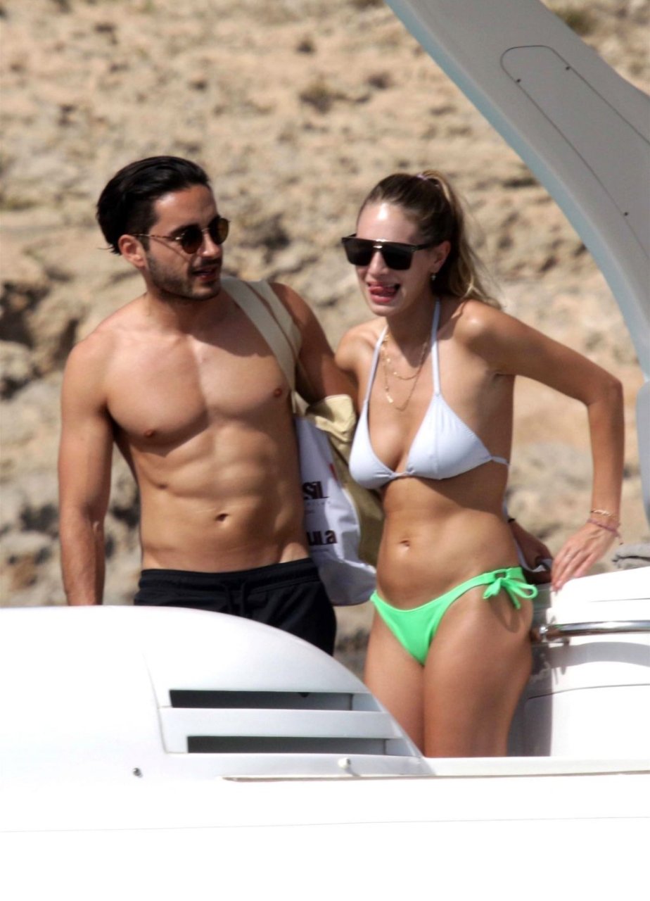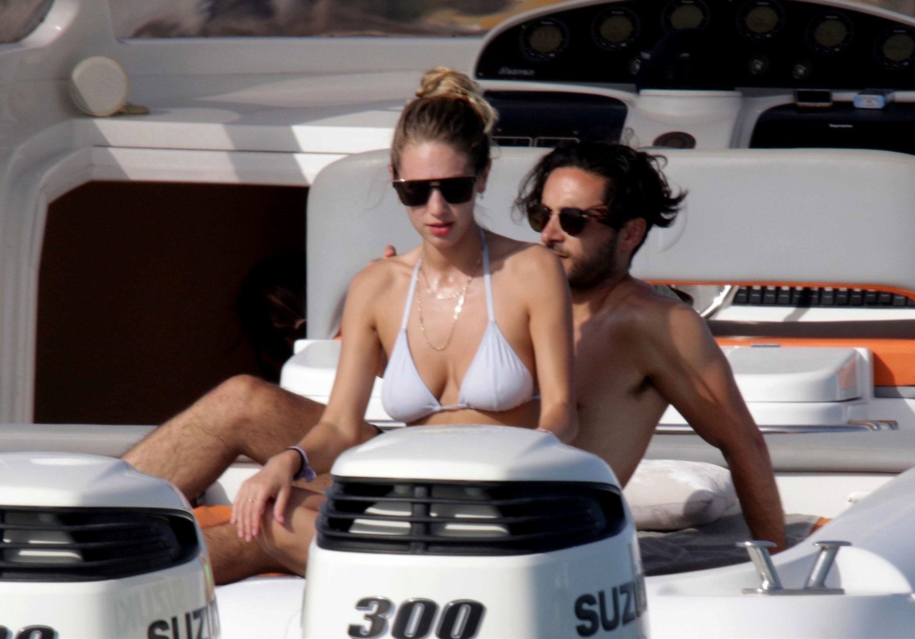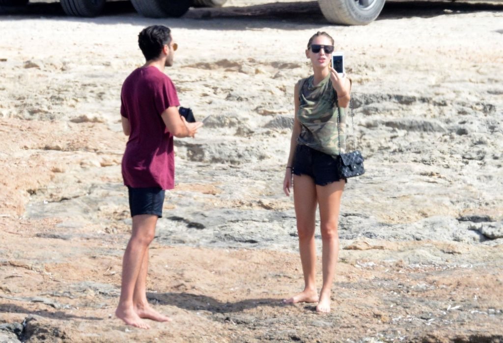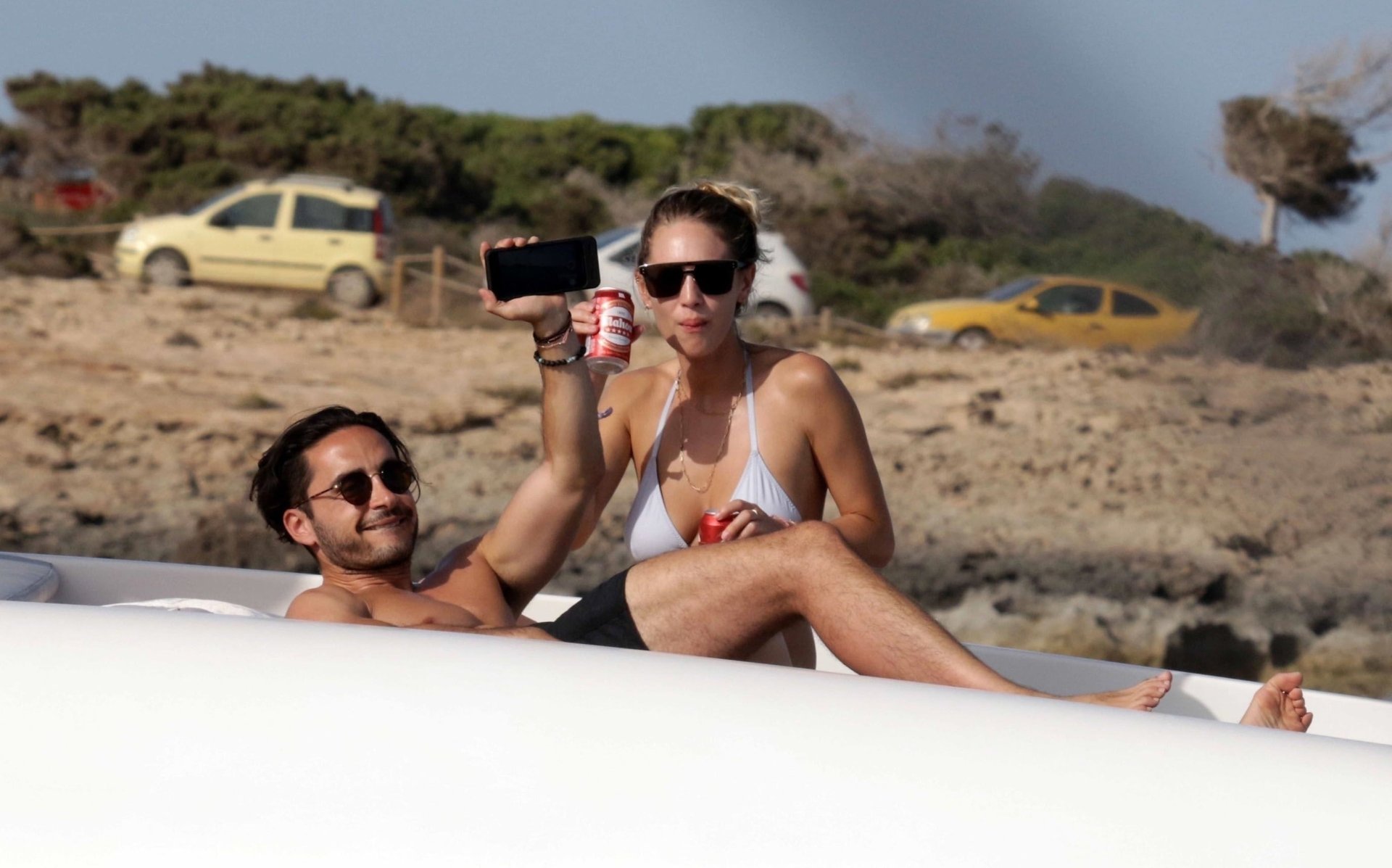 A modelo americana Dylan Frances Penn exibindo um público sexy demonstração de afeto com possível novo namorado de férias em Formentera, 17/07/2018. A filha de 27 anos do ator americano Sean Penn brilhou sob o sol espanhol com seu biquíni minúsculo.