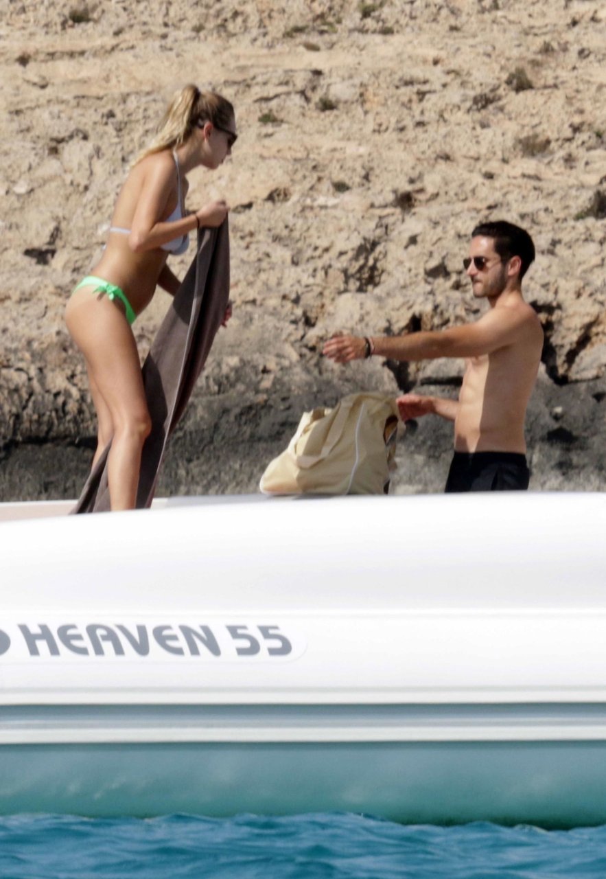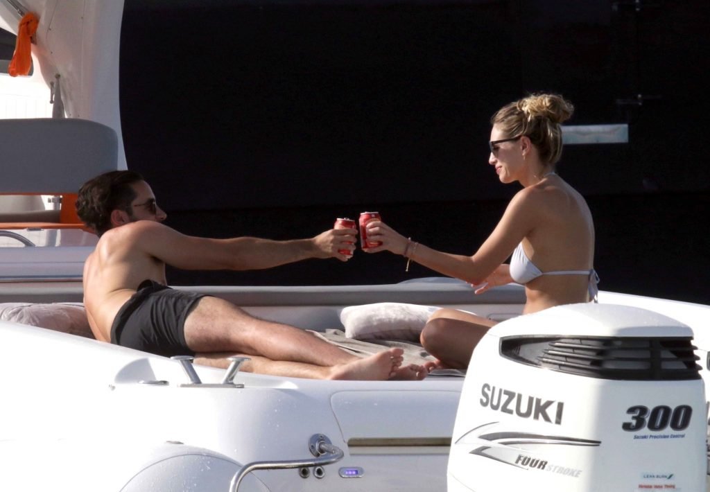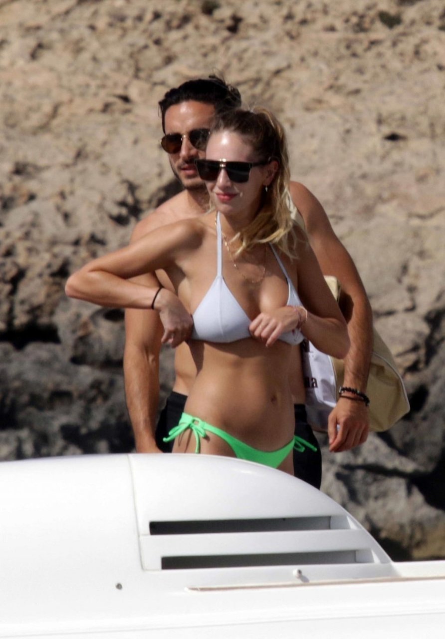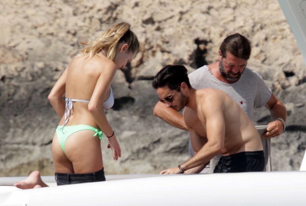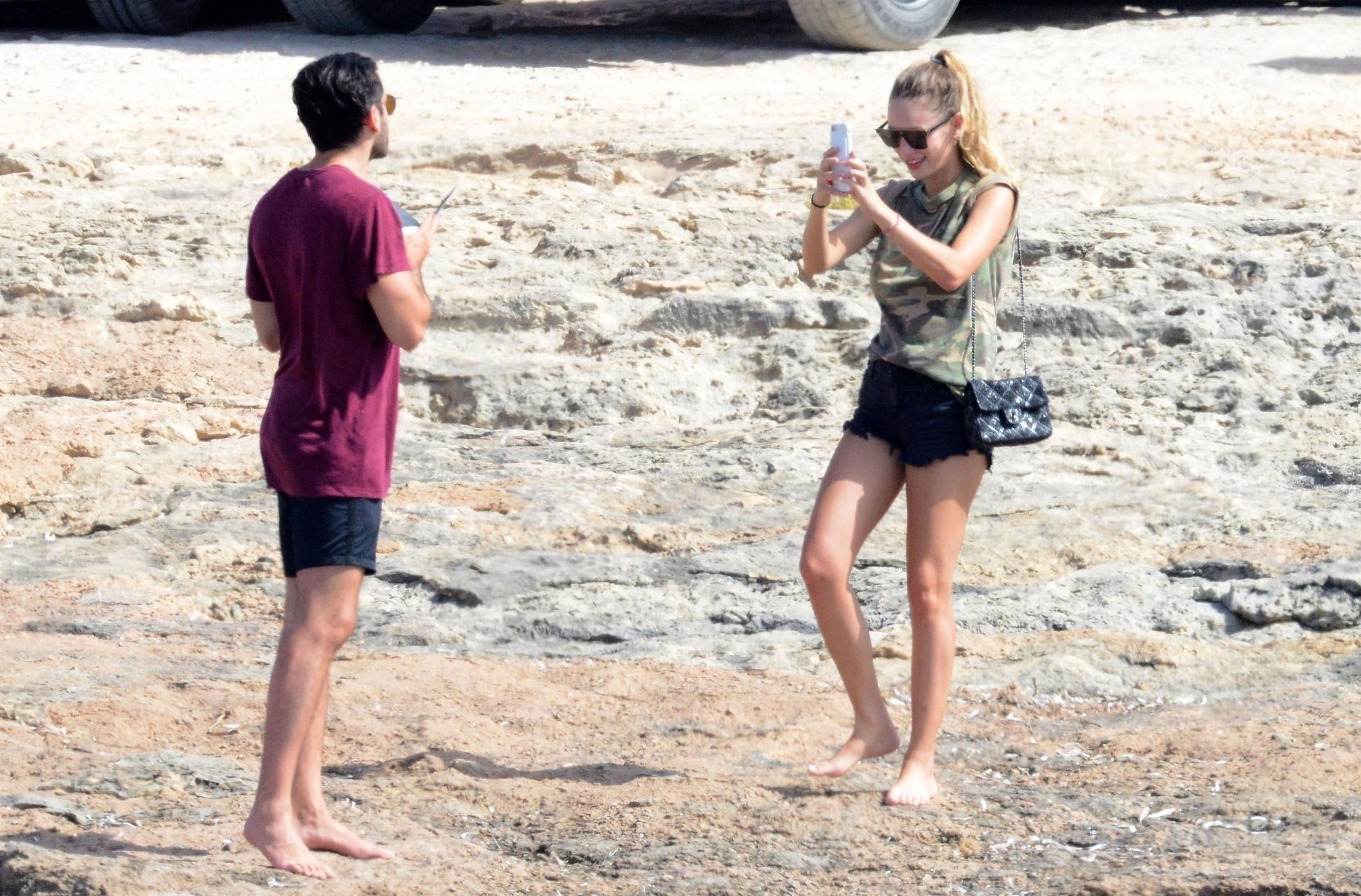 A modelo americana Dylan Frances Penn exibindo um público sexy demonstração de afeto com possível novo namorado de férias em Formentera, 17/07/2018. A filha de 27 anos do ator americano Sean Penn brilhou sob o sol espanhol com seu biquíni minúsculo.