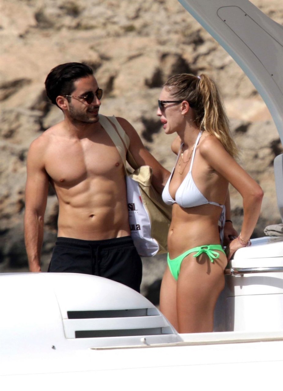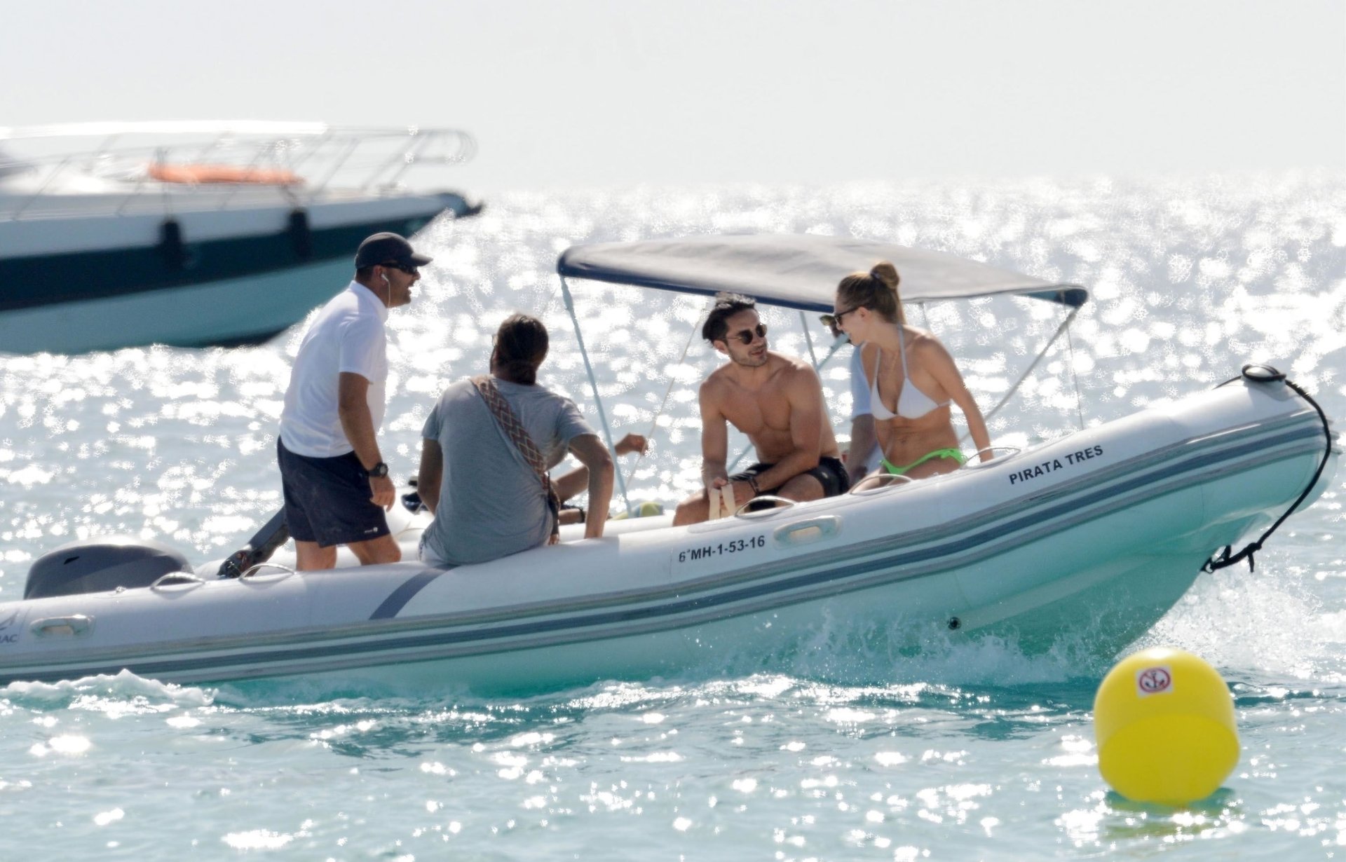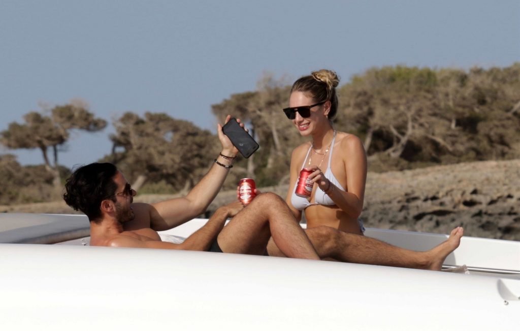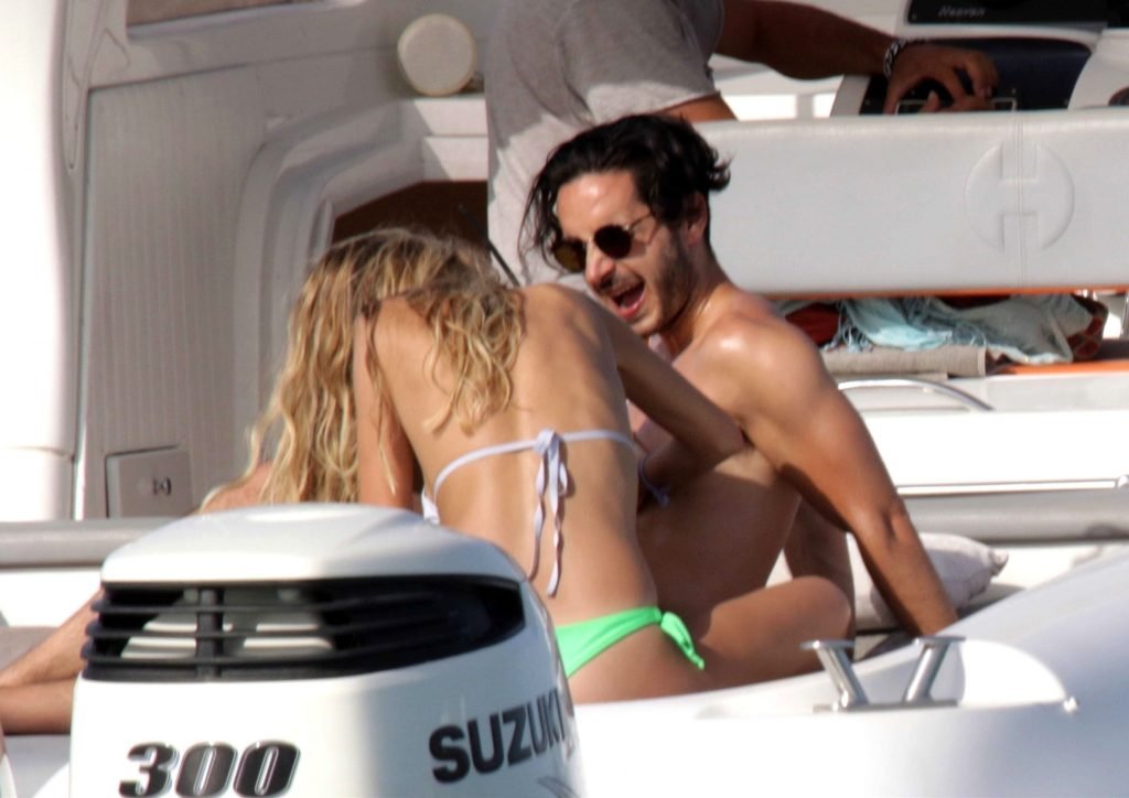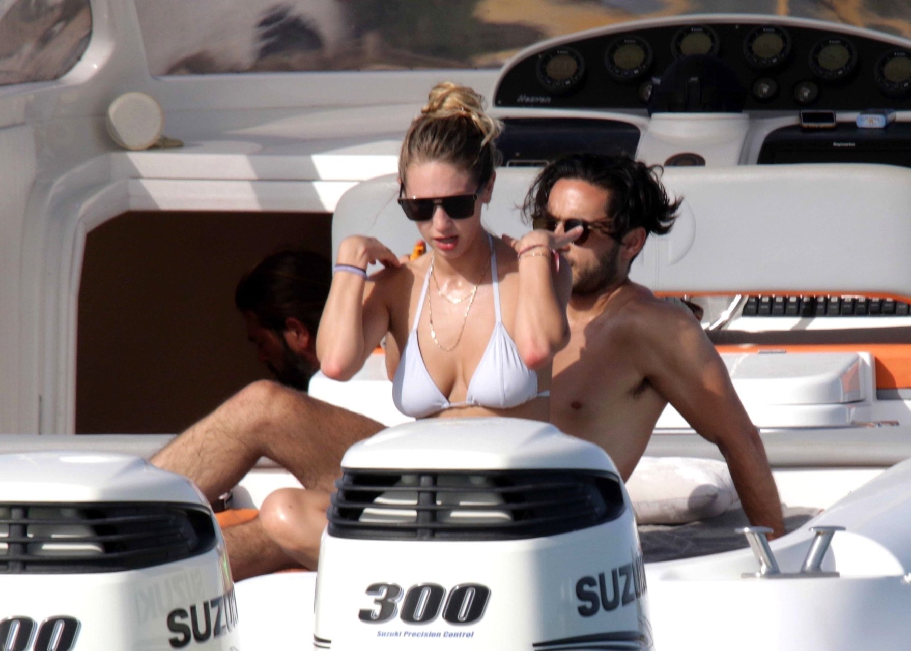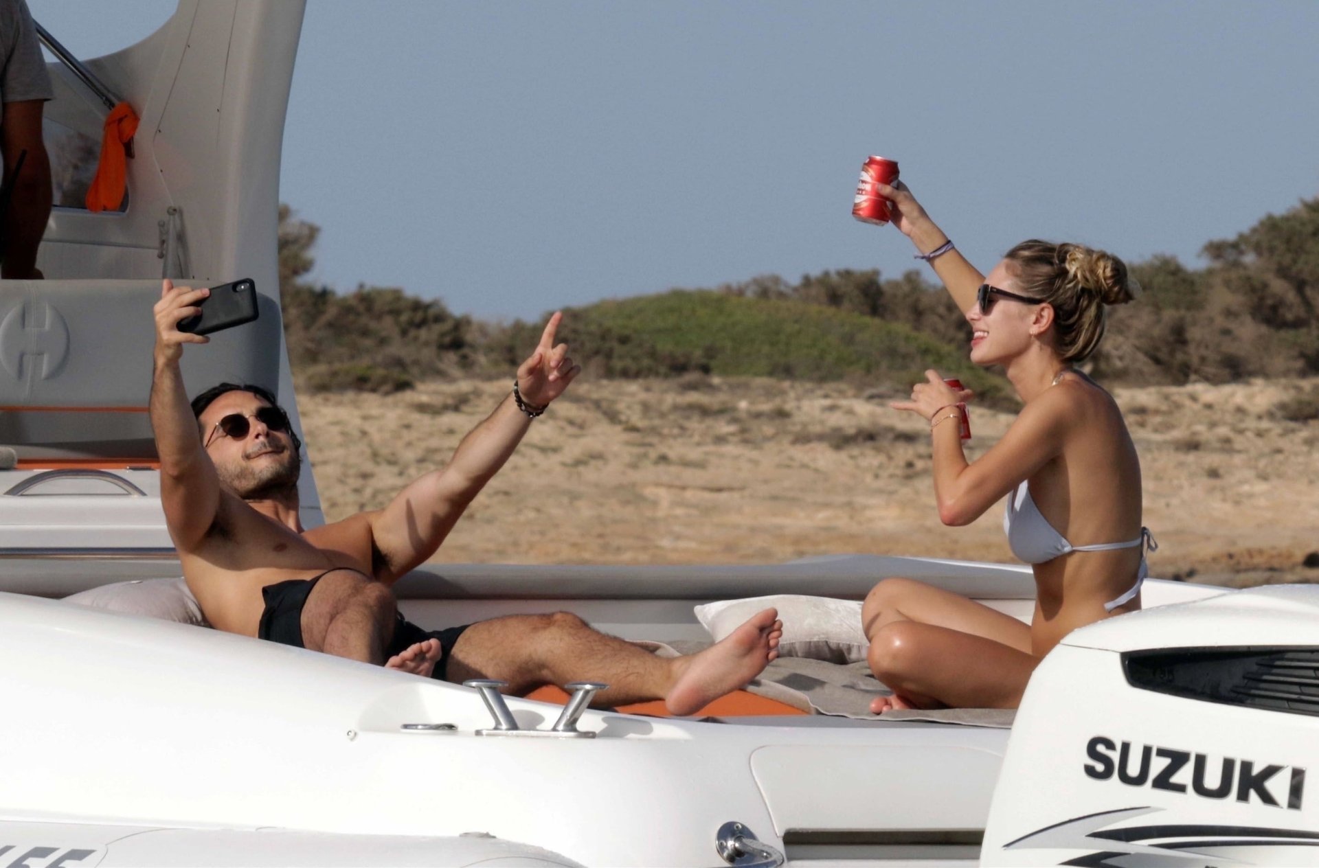 A modelo americana Dylan Frances Penn exibindo um público sexy demonstração de afeto com possível novo namorado de férias em Formentera, 17/07/2018. A filha de 27 anos do ator americano Sean Penn brilhou sob o sol espanhol com seu biquíni minúsculo.