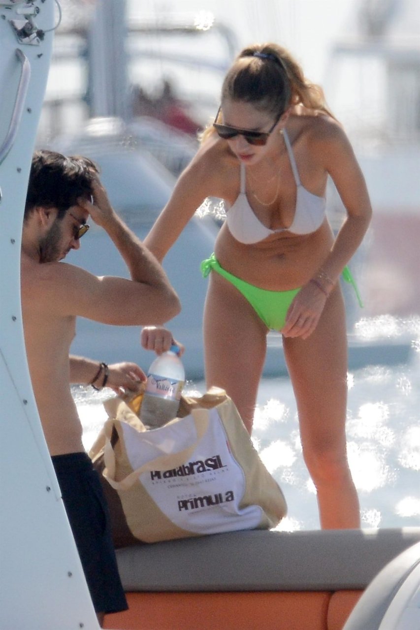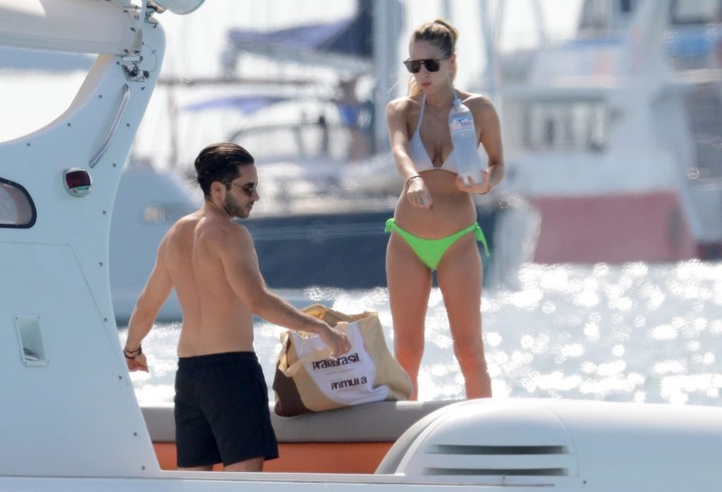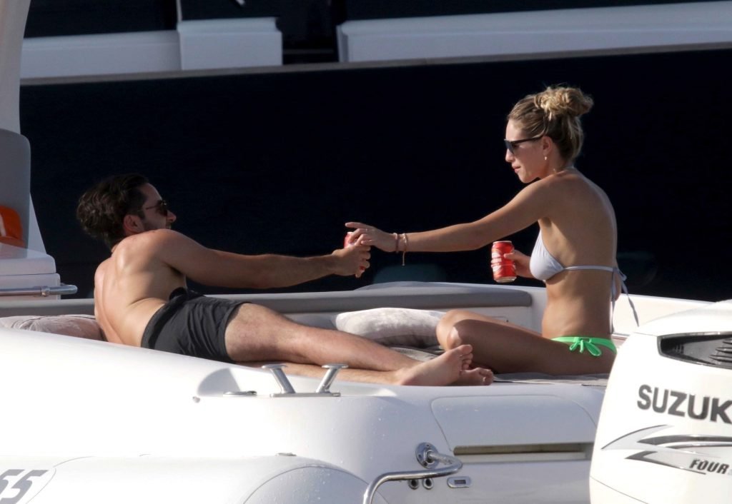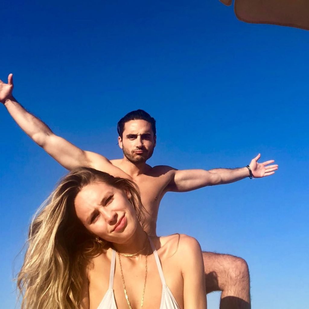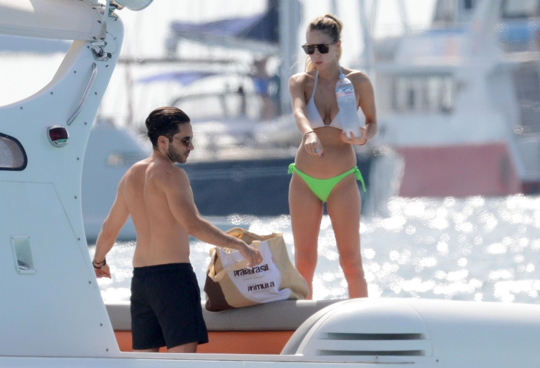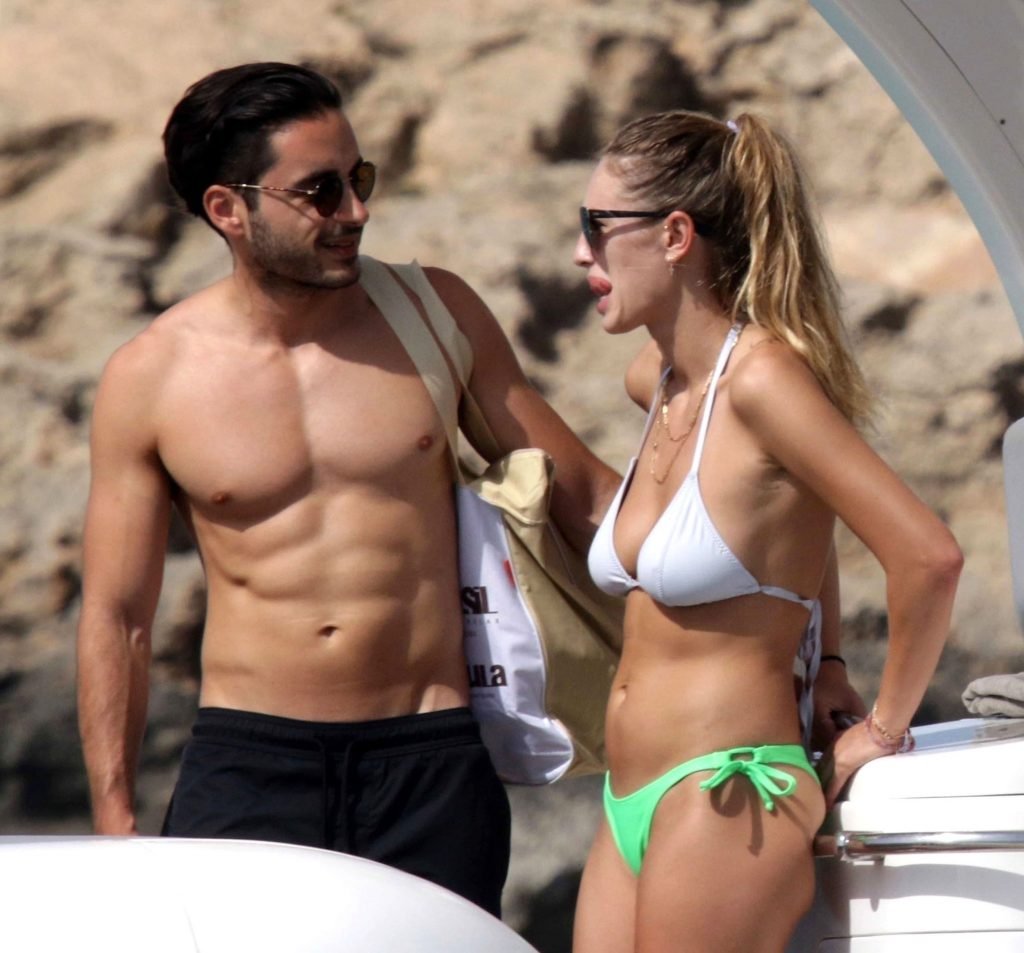 A modelo americana Dylan Frances Penn exibindo um público sexy demonstração de afeto com possível novo namorado de férias em Formentera, 17/07/2018. A filha de 27 anos do ator americano Sean Penn brilhou sob o sol espanhol com seu biquíni minúsculo.