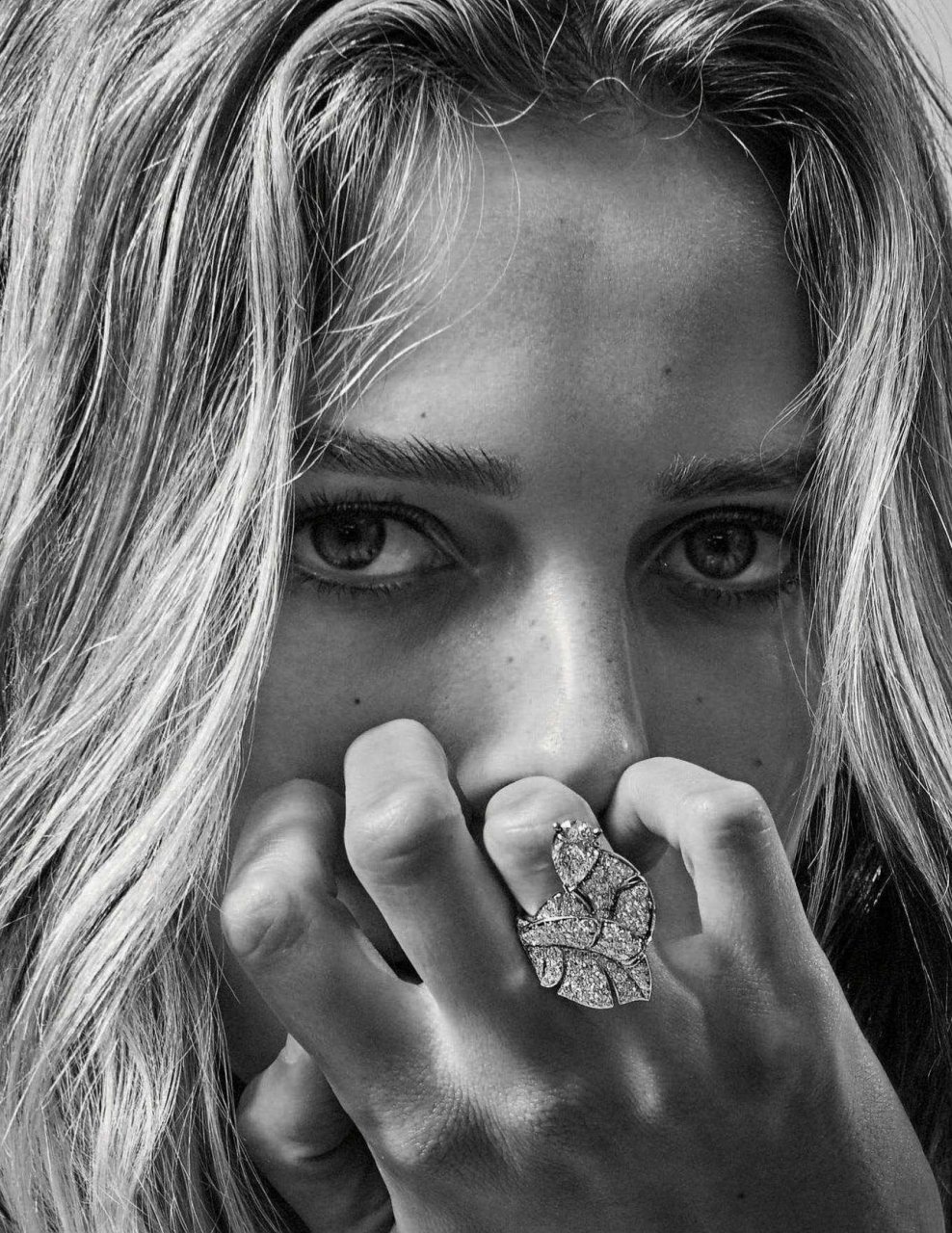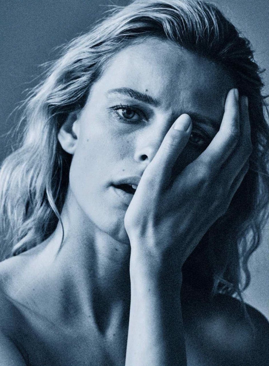 A modelo lituana Edita Vilkeviciute tenta lavar seus lindos seios em um ensaio fotográfico por Alique para a Vogue Alemanha (novembro de 2018).