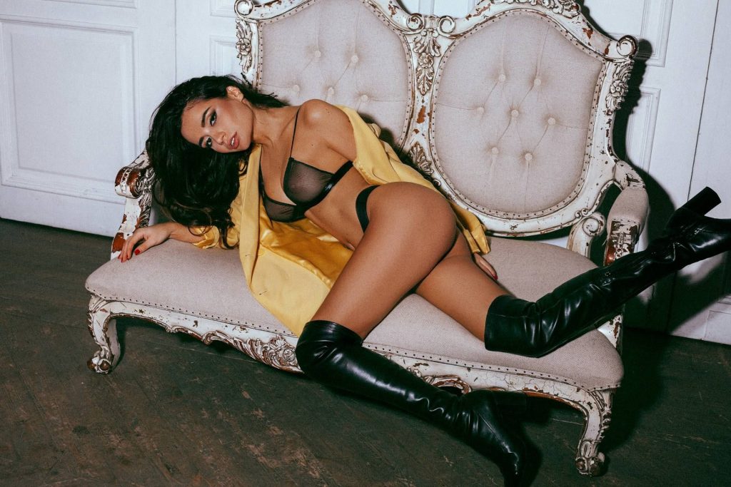 Modelo russa Ekaterina Zueva mostra seu corpo deslumbrante e seios, enquanto posa com sutiã transparente em um novo ensaio fotográfico de Lara Sarapova (2020).