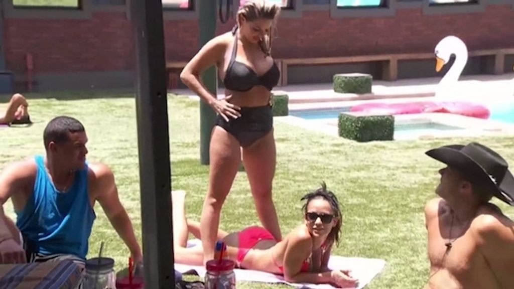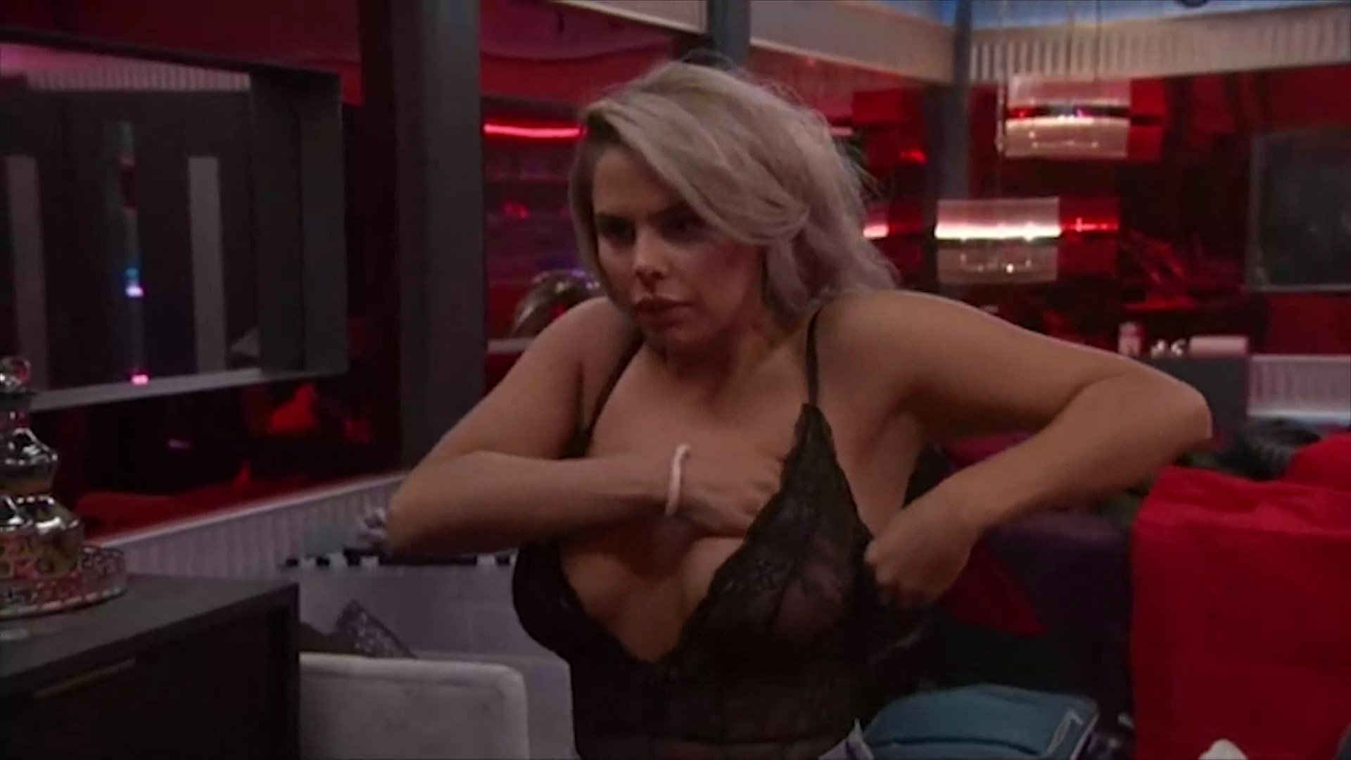 Elena Davies exibe seus grandes seios nus e bunda sexy nos clipes de gif e vídeo abaixo do set do reality show “Big Brother.”