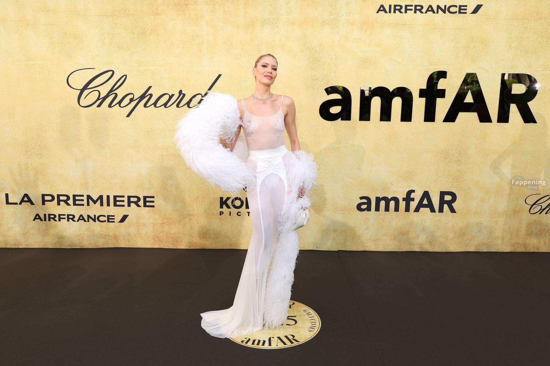 A modelo russa Elena Perminova exibe seus seios nus no Gala AmfAR durante o Festival de Cinema de Cannes 2025.