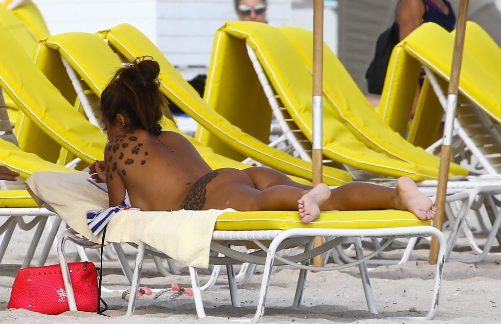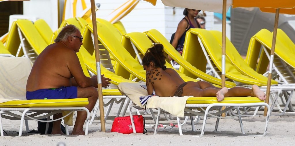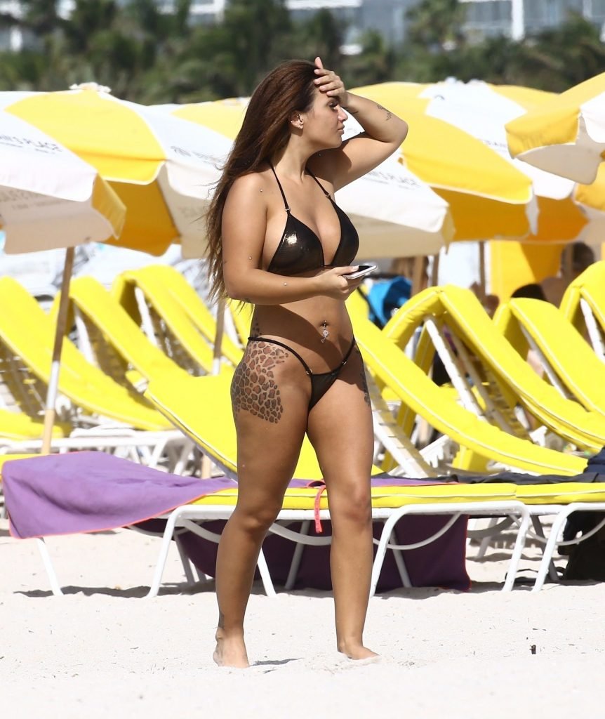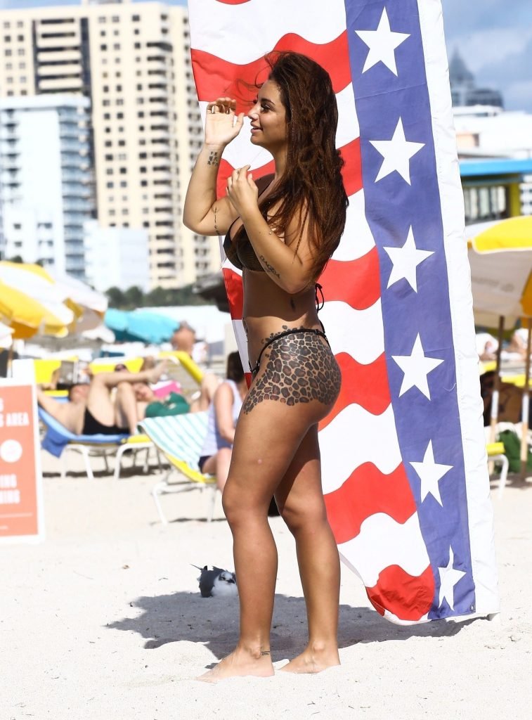 Model e personalidade de TV Elettra Lamborghini (23) aproveita um dia na praia em Miami Beach, 12/02/2017.