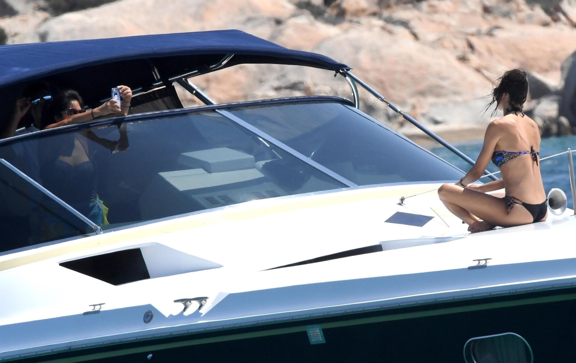 Elisabetta Gregoraci, a ex-esposa de Flavio Briatore, foi vista aproveitando férias em Porto Cervo, Sardenha, Itália, 16/07/2018. A modelo italiana e personalidade de TV de 38 anos parecia deslumbrante em um biquíni minúsculo em um barco.