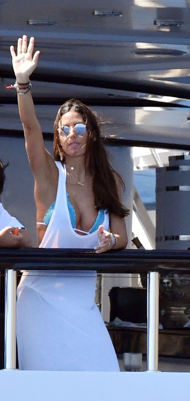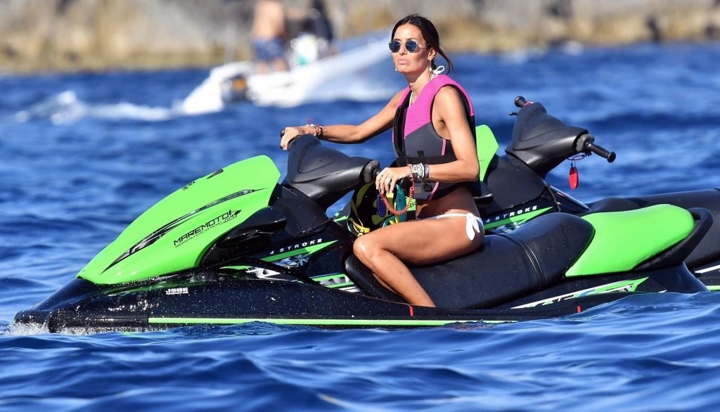 O ex-casal foi visto em um iate de luxo. Elisabetta foi vista se divertindo em um jet ski, ela usava um top de biquíni azul com parte de baixo branca.