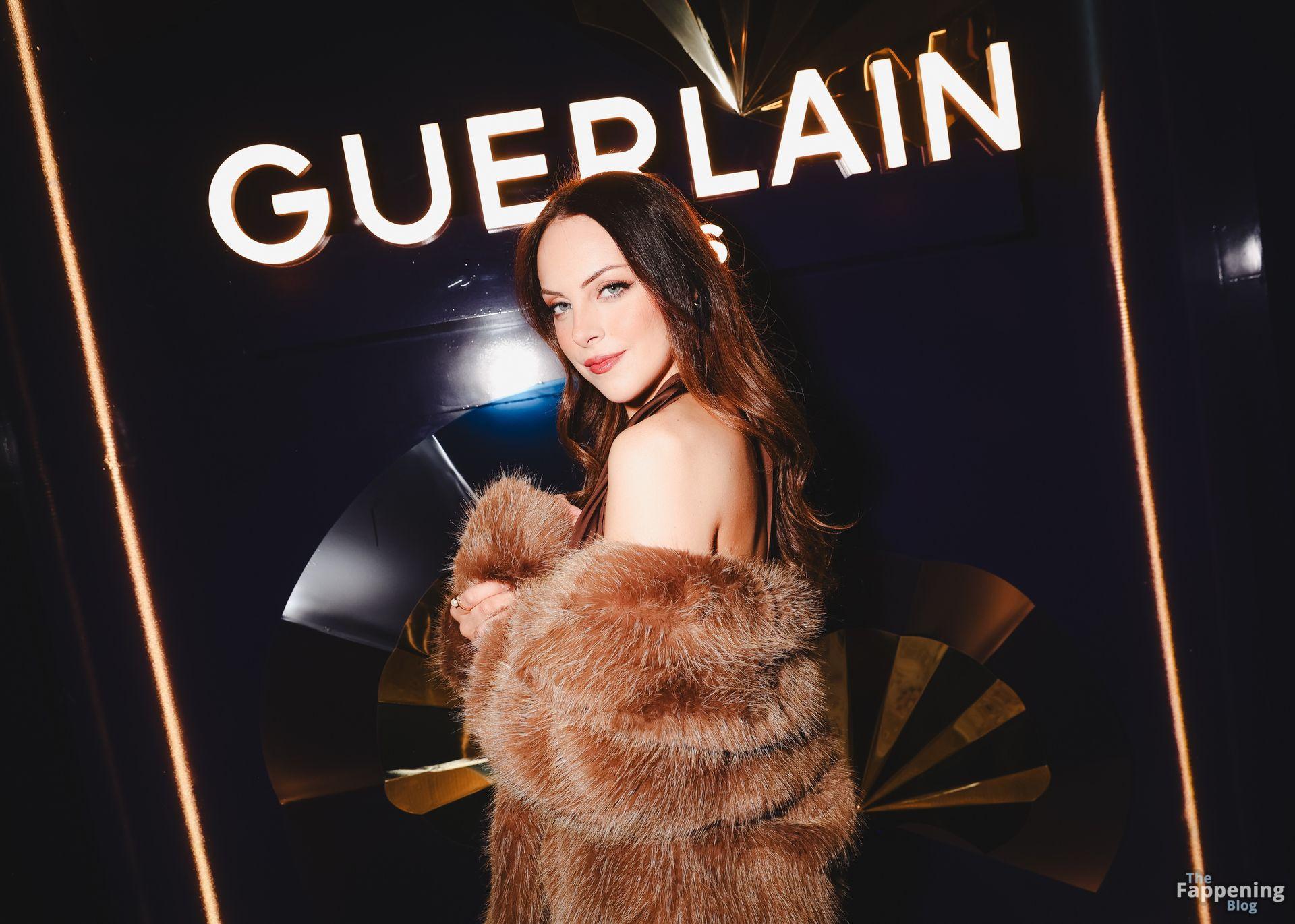 A atriz Elizabeth Gillies mostra seu decote na festa Shalimar da Guerlain em NYC.