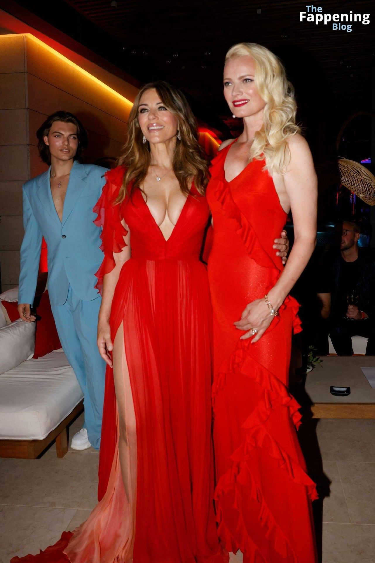 Prepare-se para uma ação de cair o queixo! Elizabeth Hurley está trazendo charme em um vestido vermelho que destaca seu decote cativante.