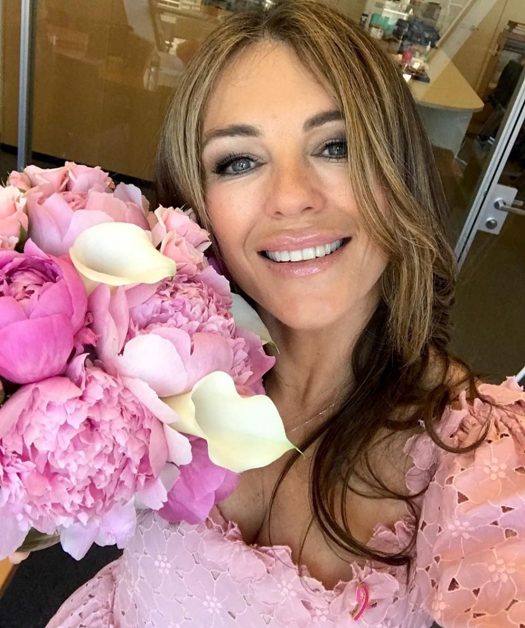 Elizabeth “Liz” Hurley comemorou seu 54º aniversário em Los Angeles, 10/06/2019. A atriz/designers postou uma série de fotos de biquíni vermelho e outras fotos sensuais anteriores.
