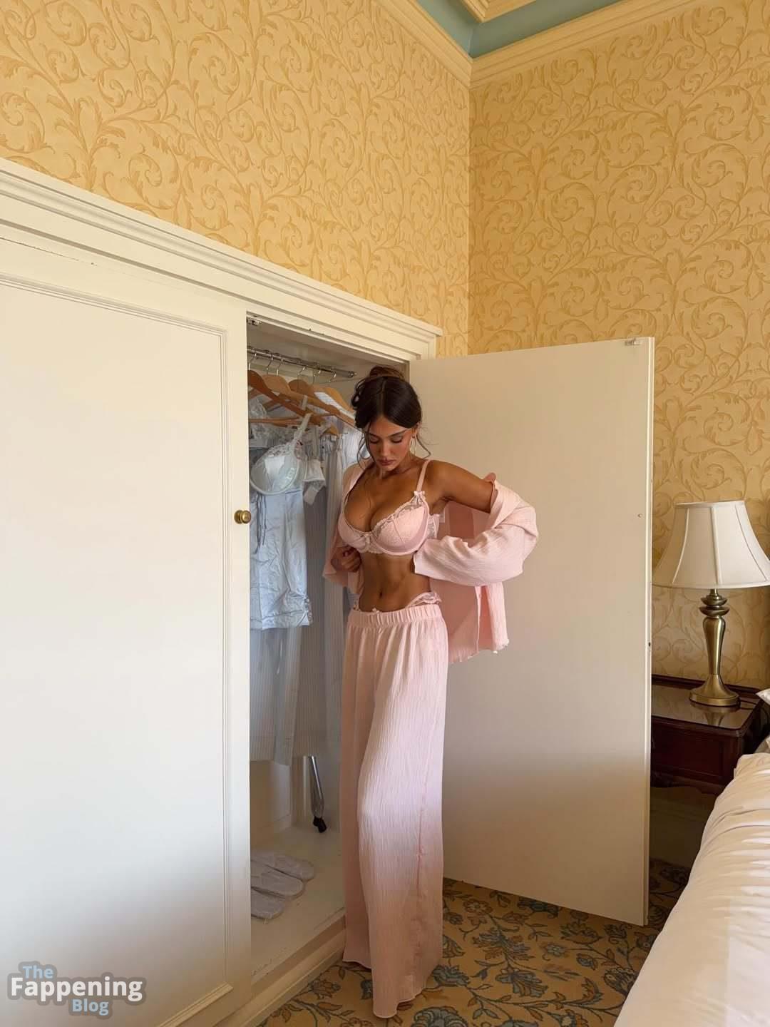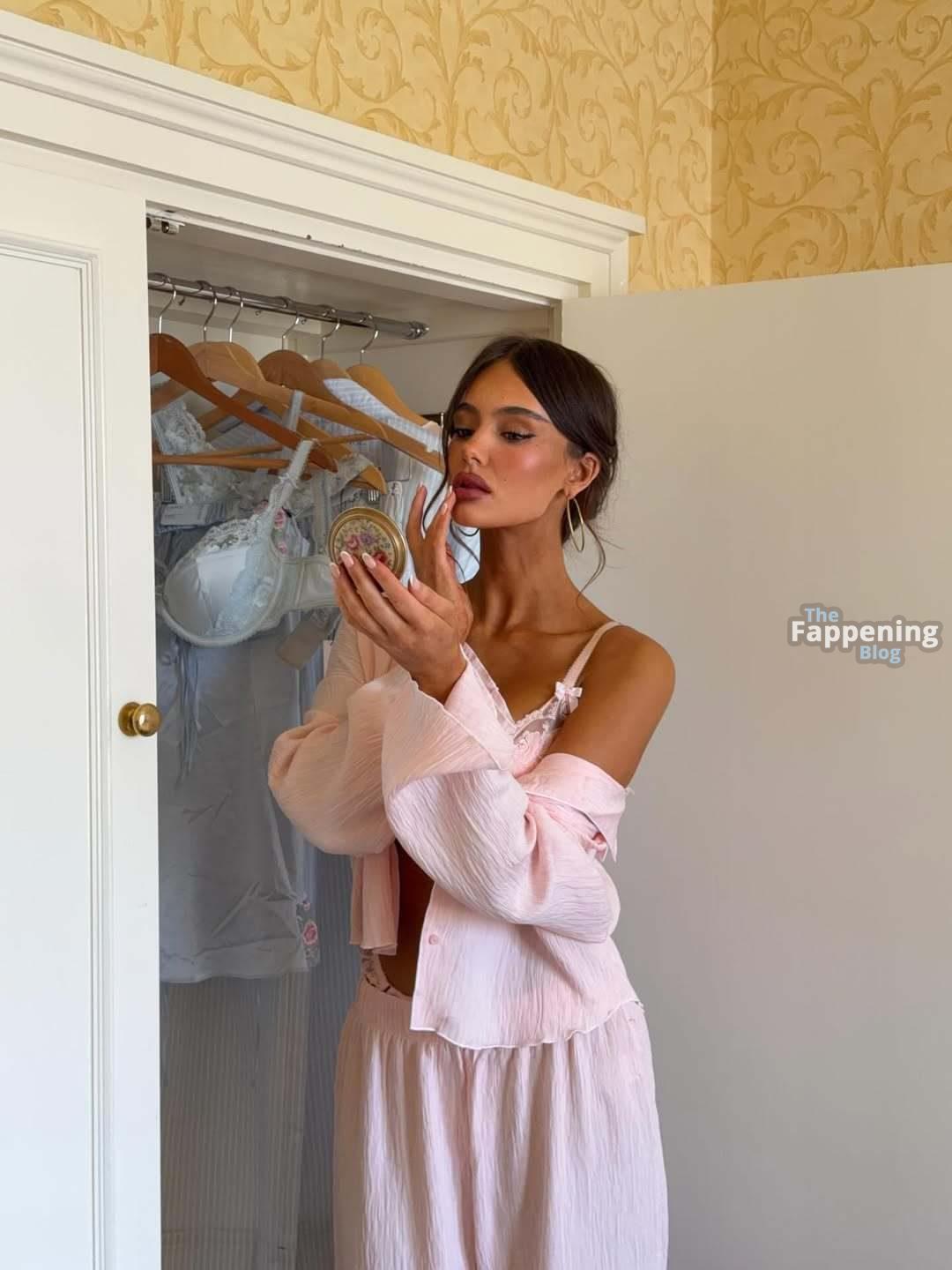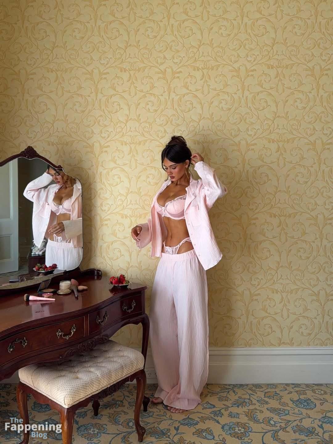 A modelo e influenciadora australiana Ella Cervetto está deslumbrante em uma lingerie rosa sexy enquanto posa em seu quarto. Confira seus seios enormes e abdômen perfeito.