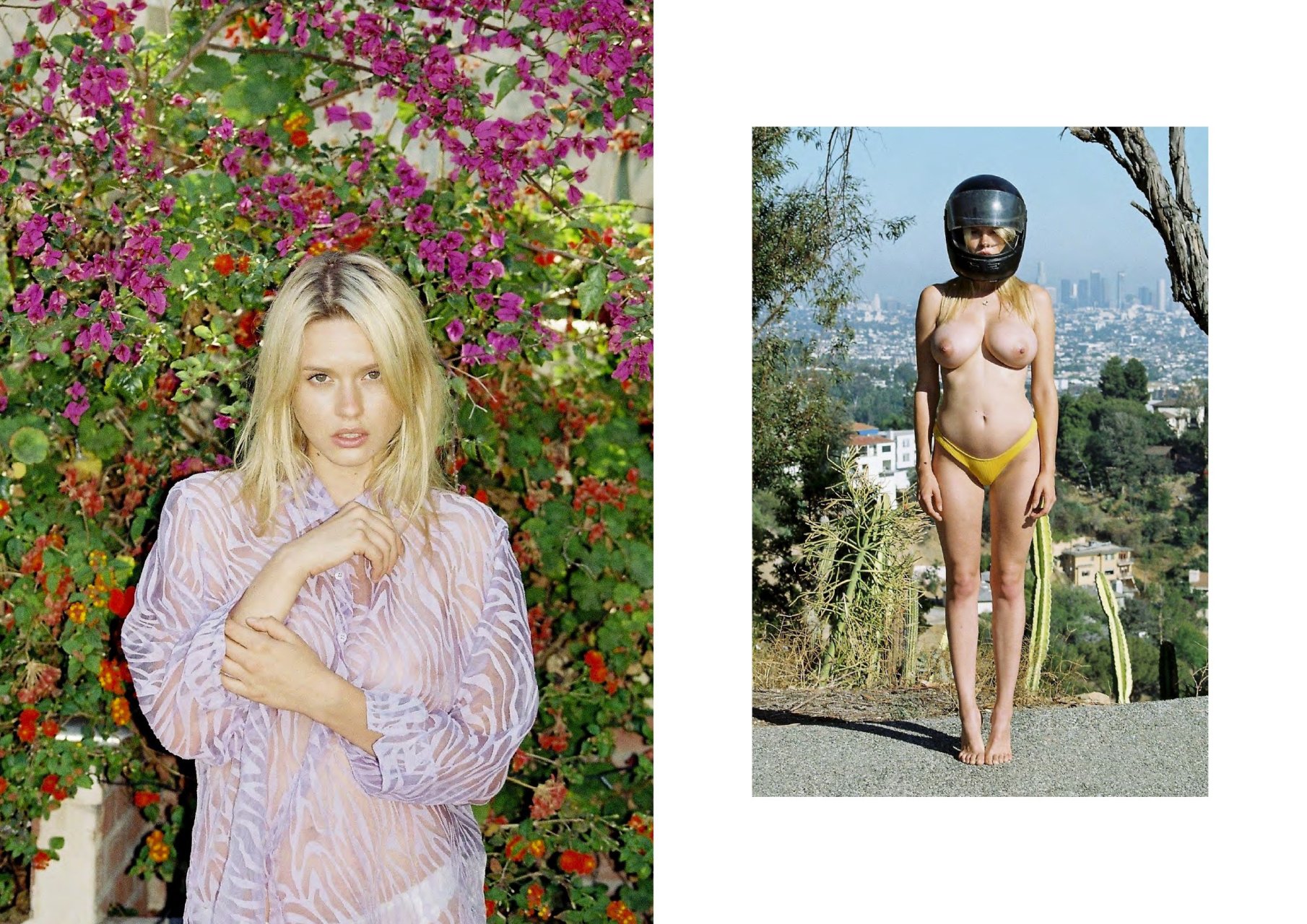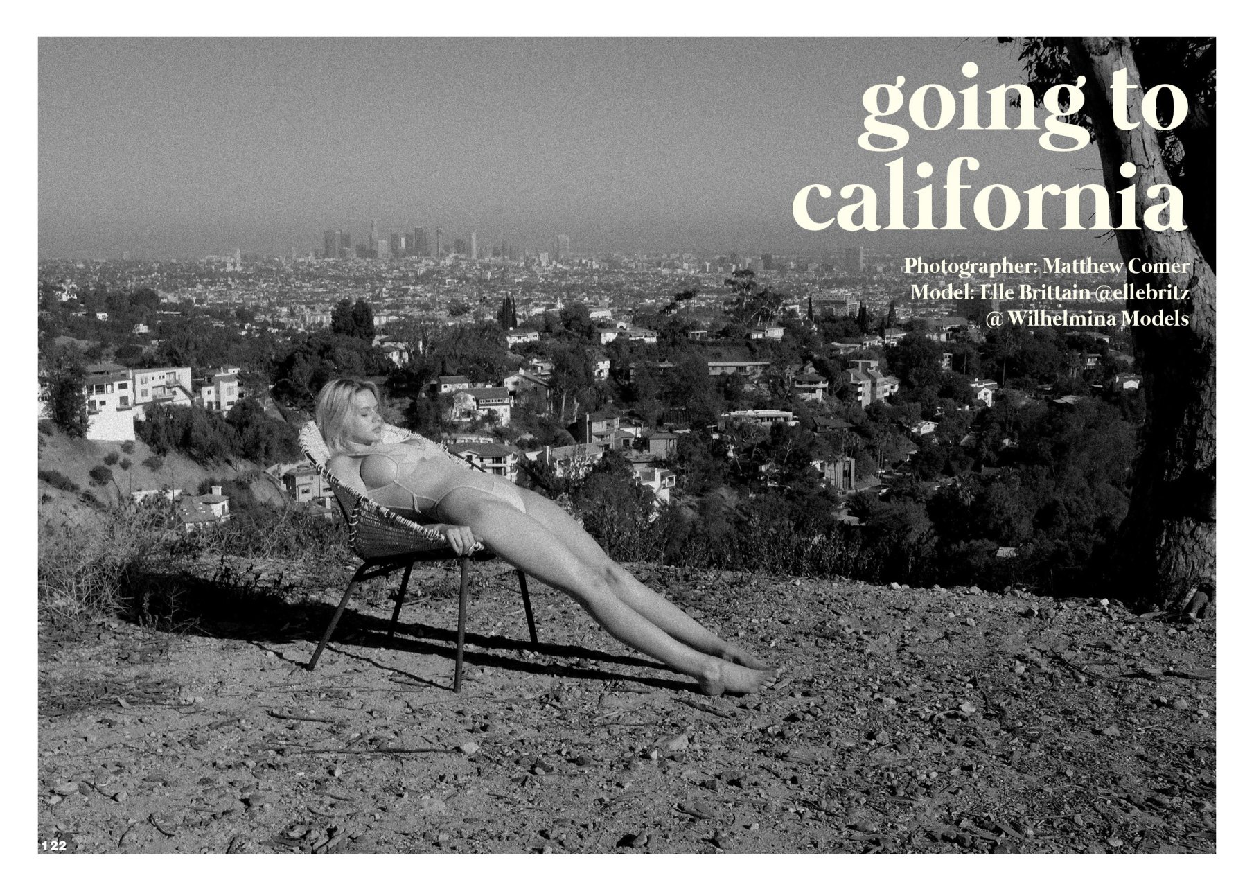 Fotos sexy e topless de Elle Brittain por Matthew Comer para Off the Rails nº9. “Indo para a Califórnia”. Elle Brittain é uma modelo. Idade: 21. Altura: 175 cm