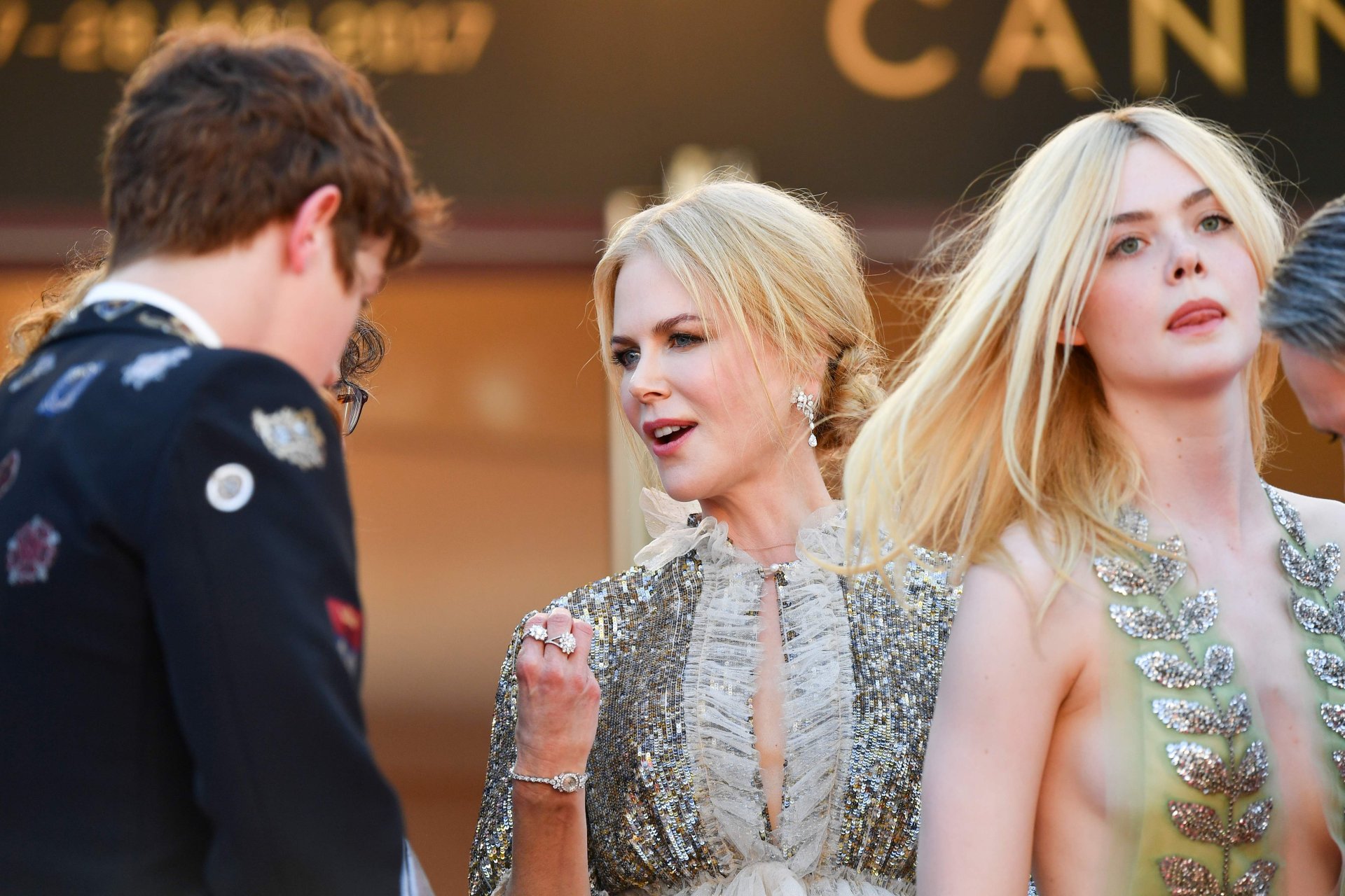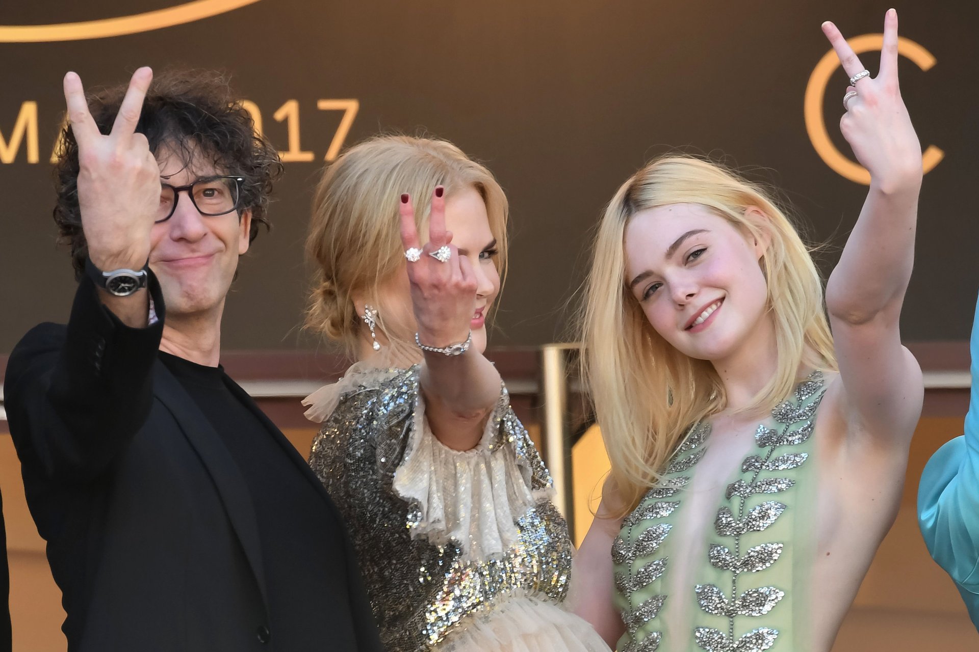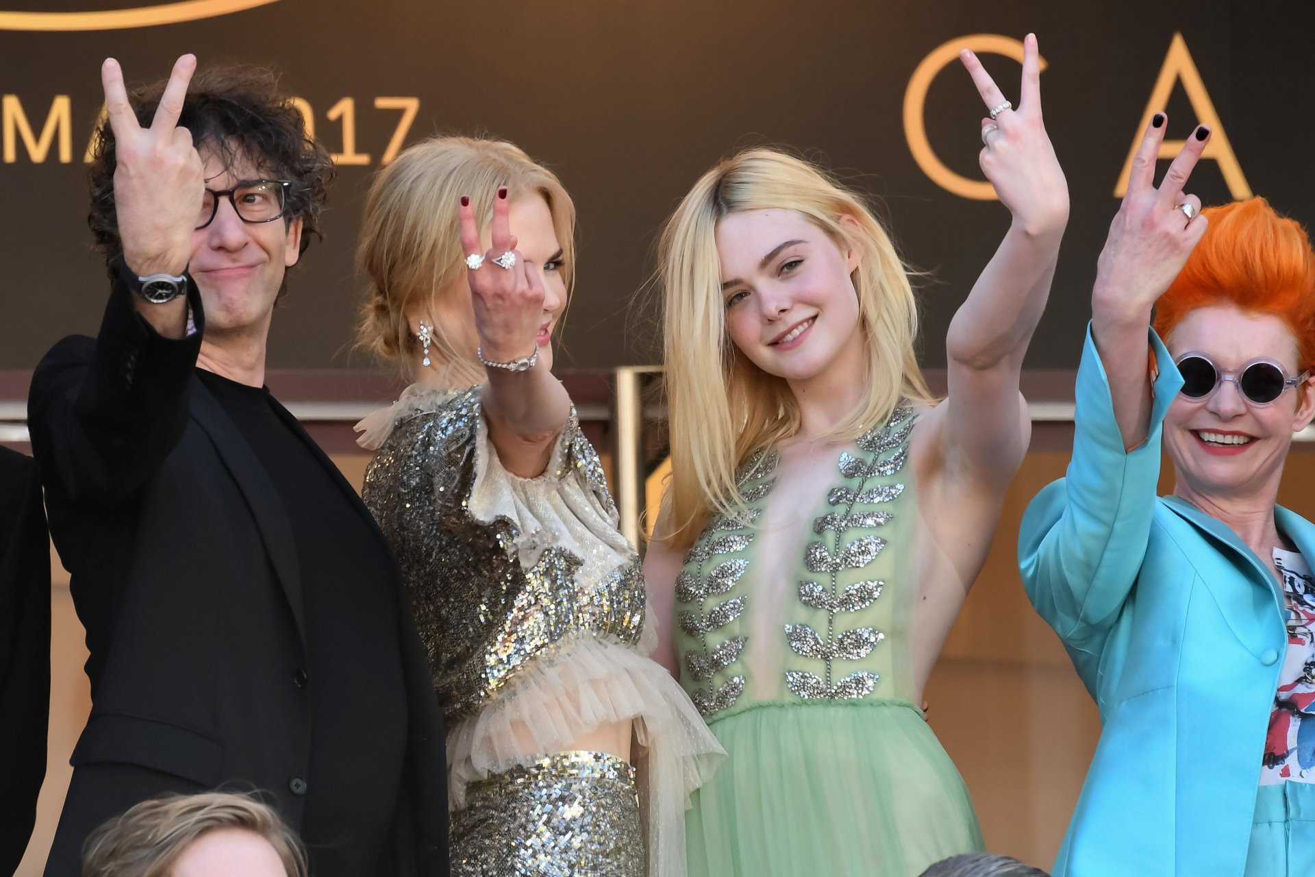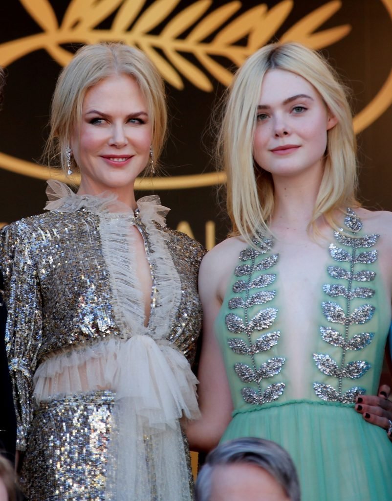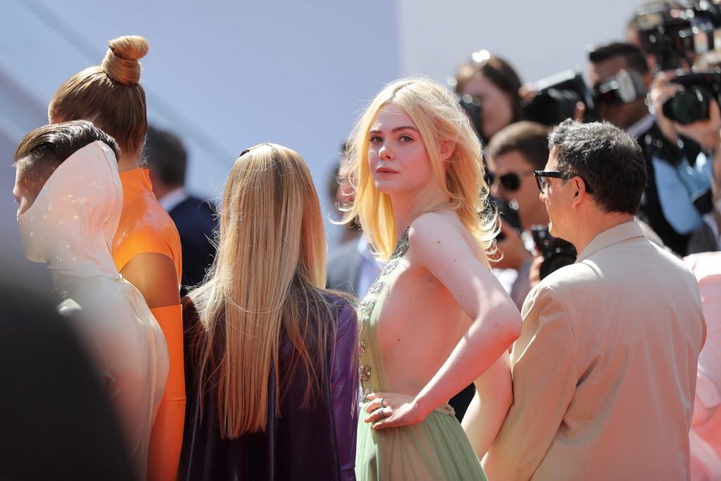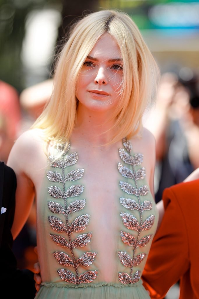 Elle Fanning sem sutiã exibe sideboob em vestido verde na estreia de ‘Como Falar com Garotas em Festas’ no 70º Festival de Cinema de Cannes, 21/05/17. Elle Fanning é uma atriz americana (Galveston, 2018). Idade: 19.