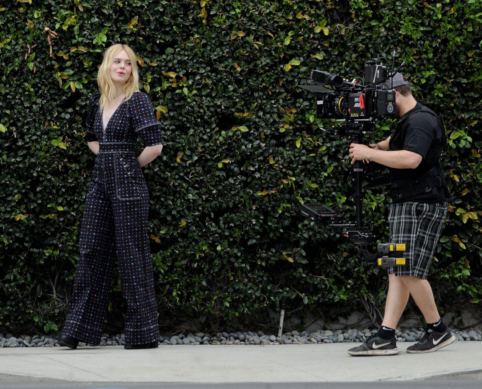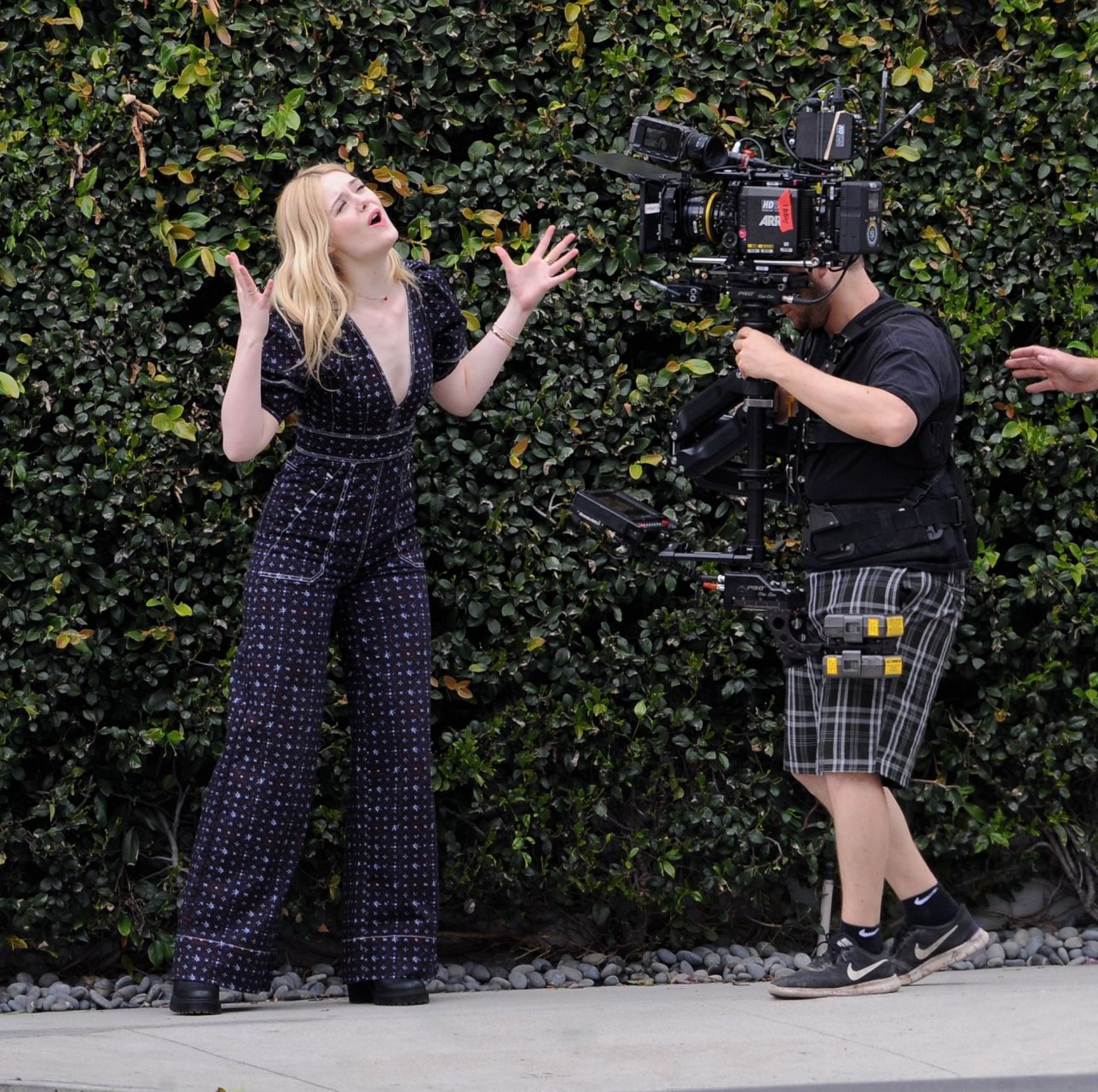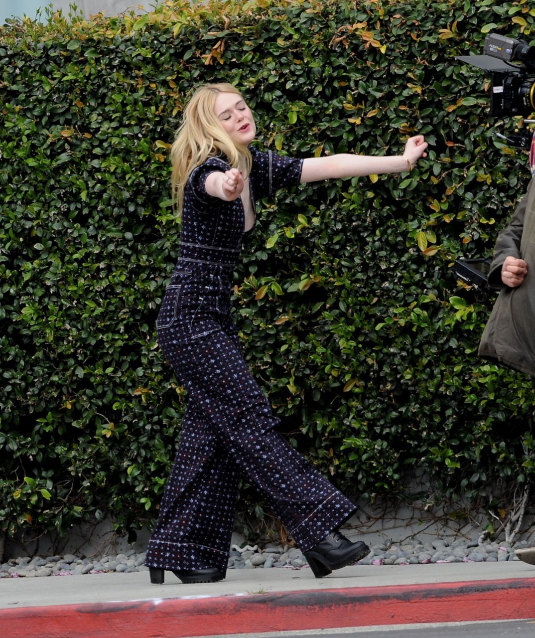A atriz Elle Fanning foi vista filmando um videoclipe para “Teen Spirit” em Los Angeles, 21/03/2019.