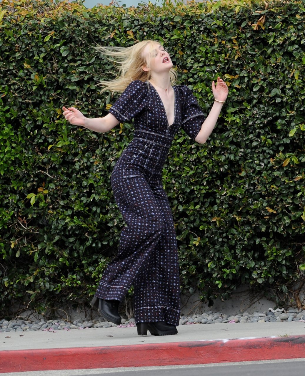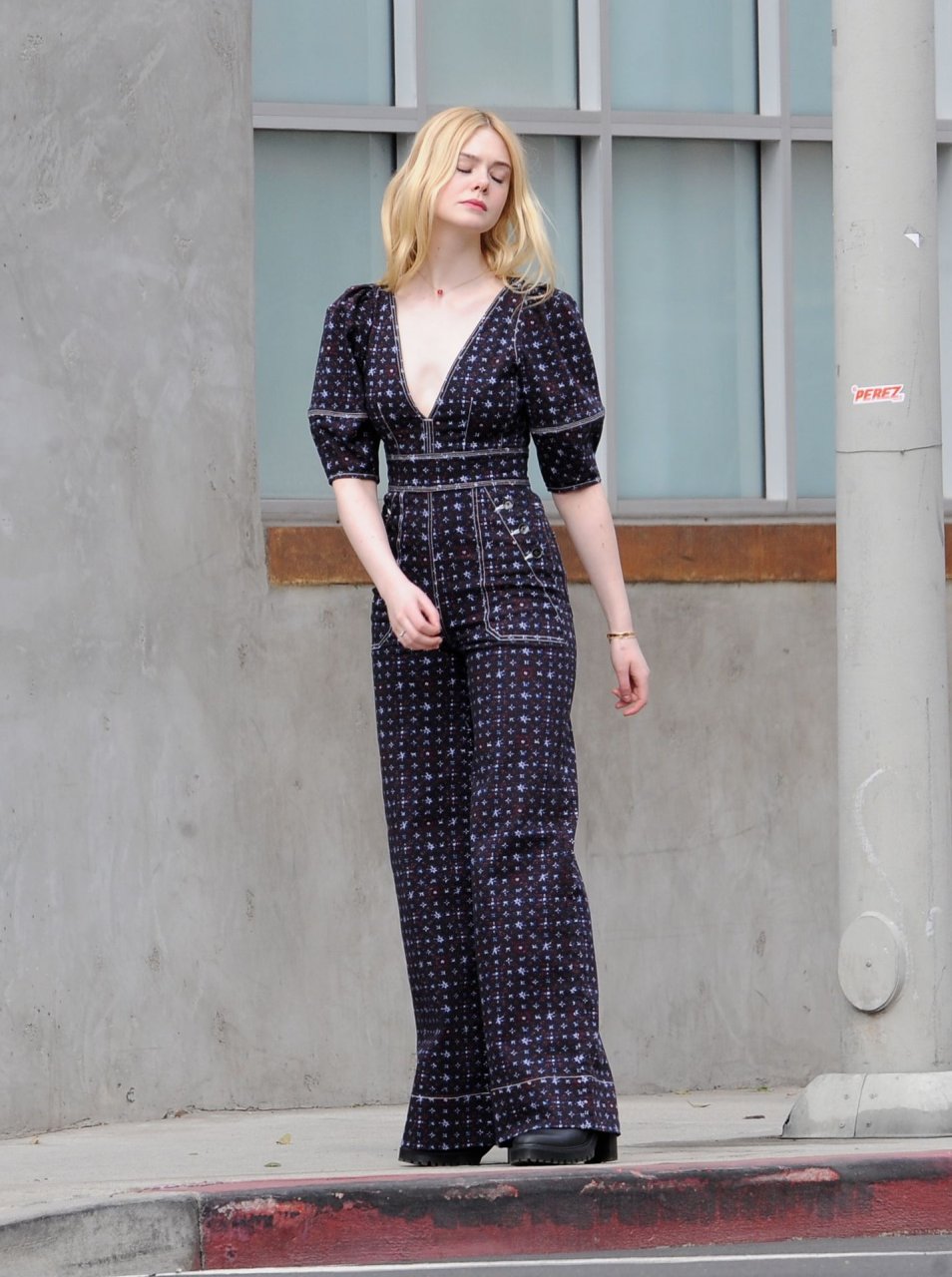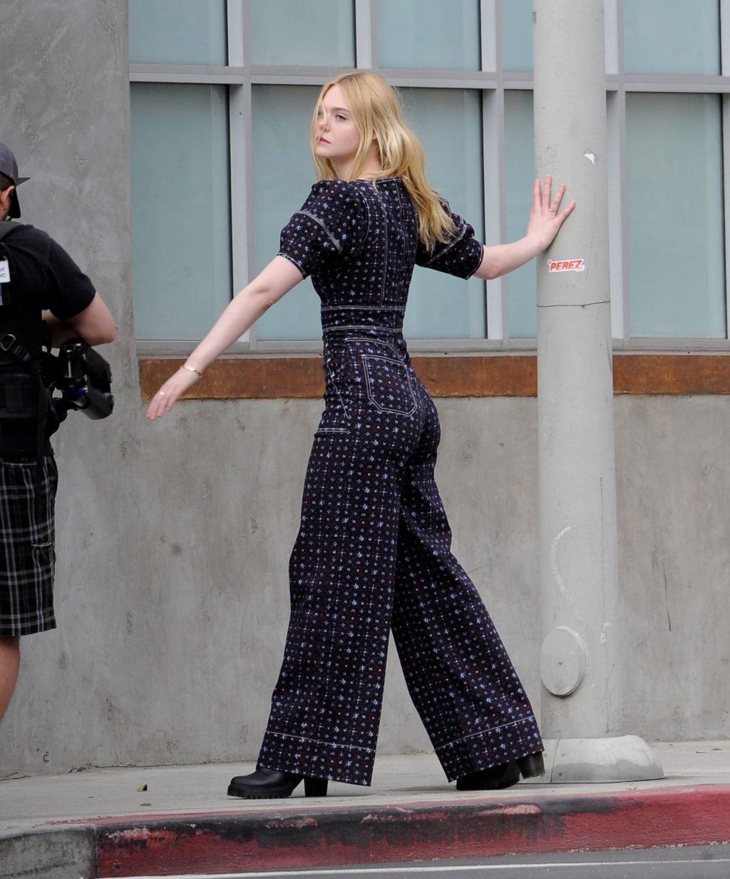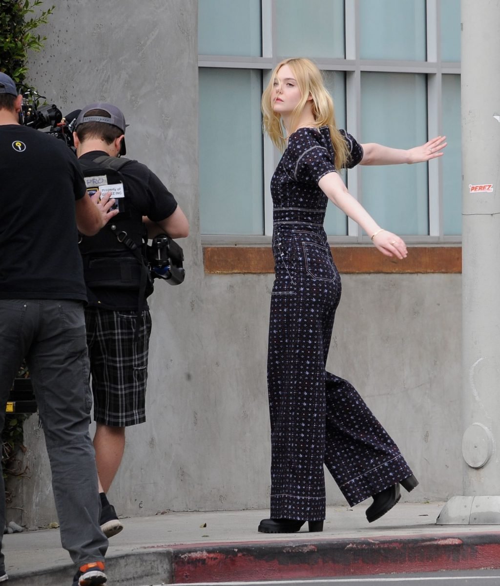 A atriz Elle Fanning foi vista filmando um videoclipe para “Teen Spirit” em Los Angeles, 21/03/2019.