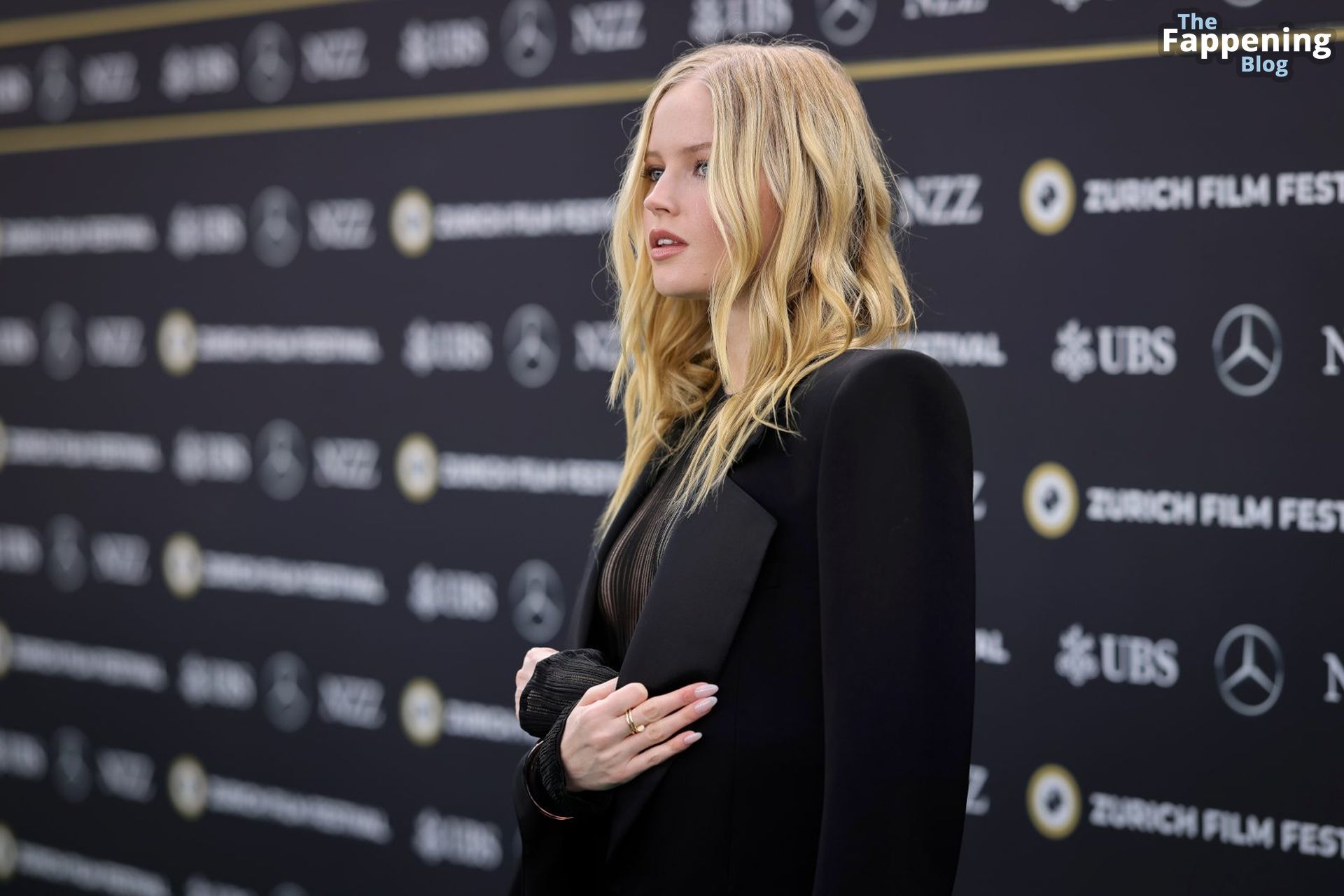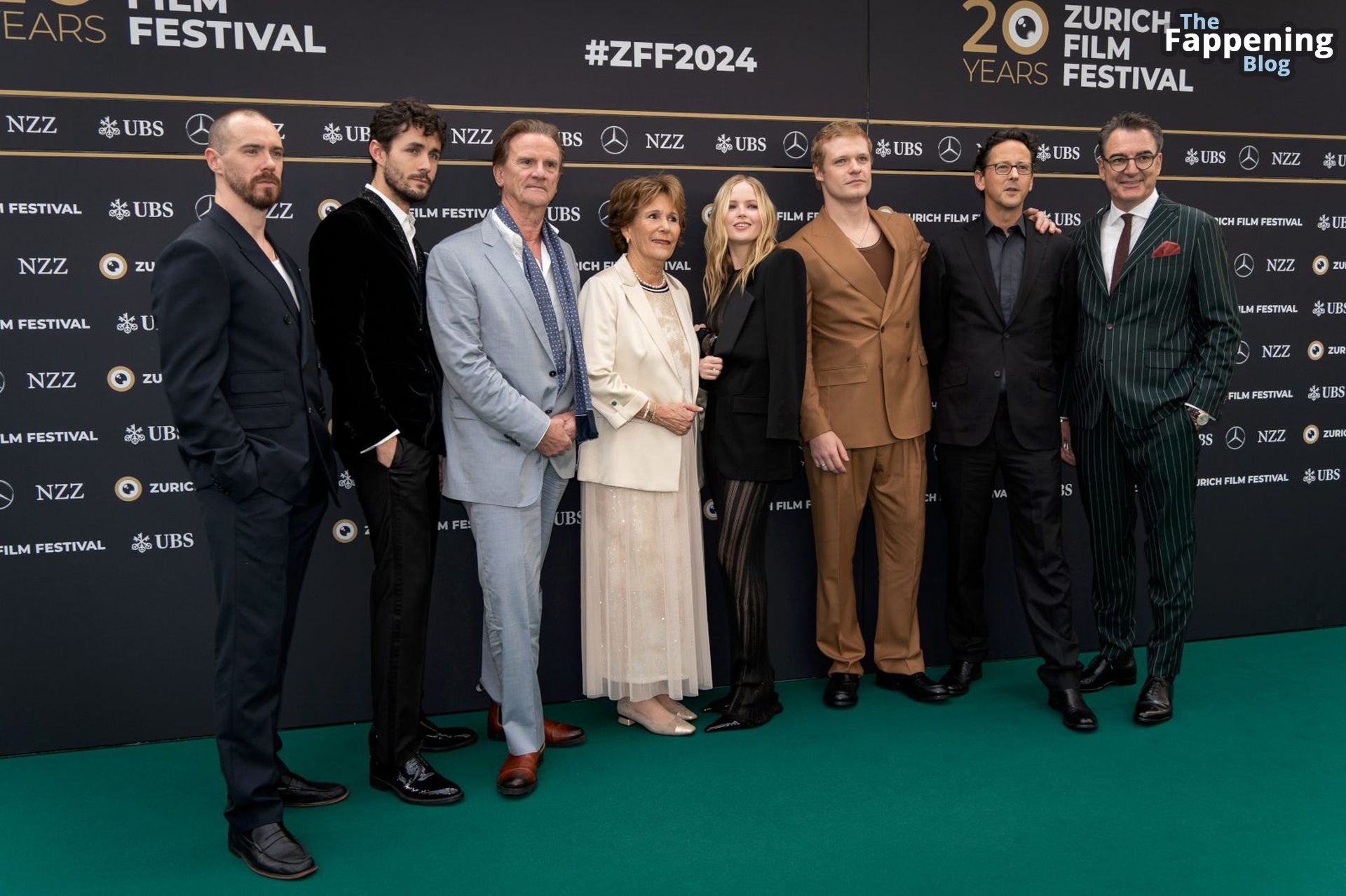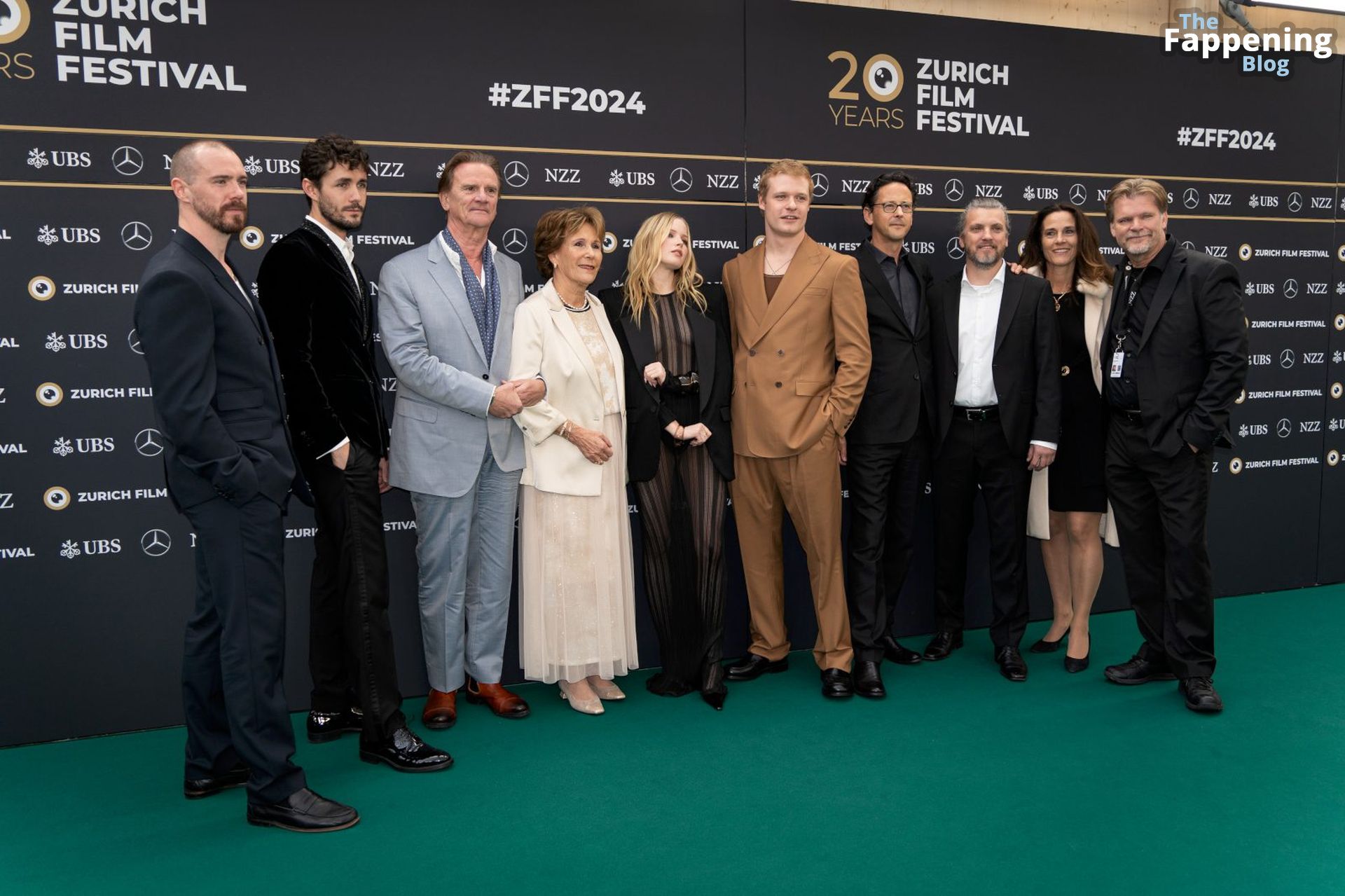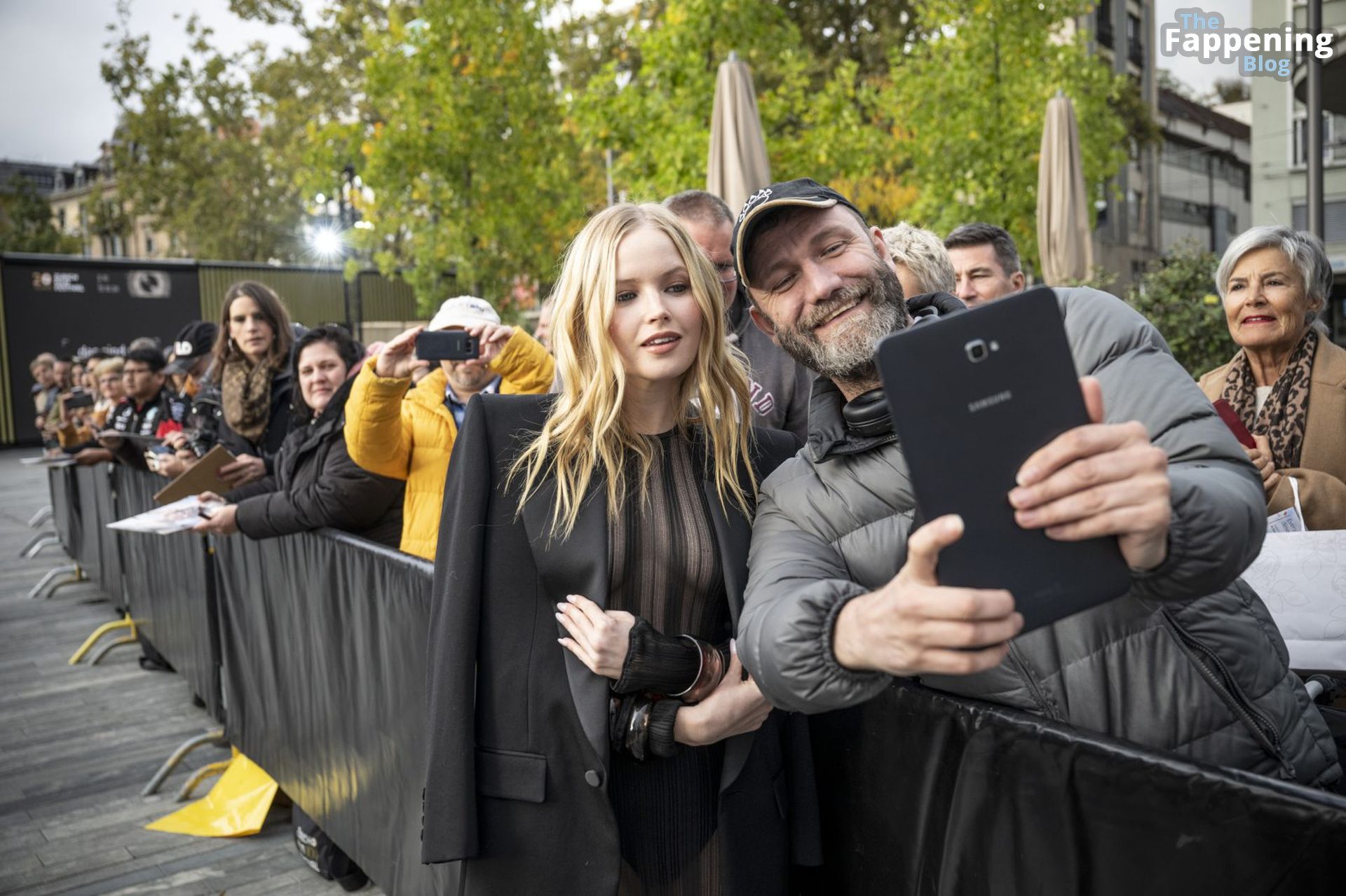 Ellie Bamber foi fotografada usando um vestido preto transparente no Festival de Cinema de Zurique, sem sutiã e mostrando os mamilos na estreia de “William Tell”.