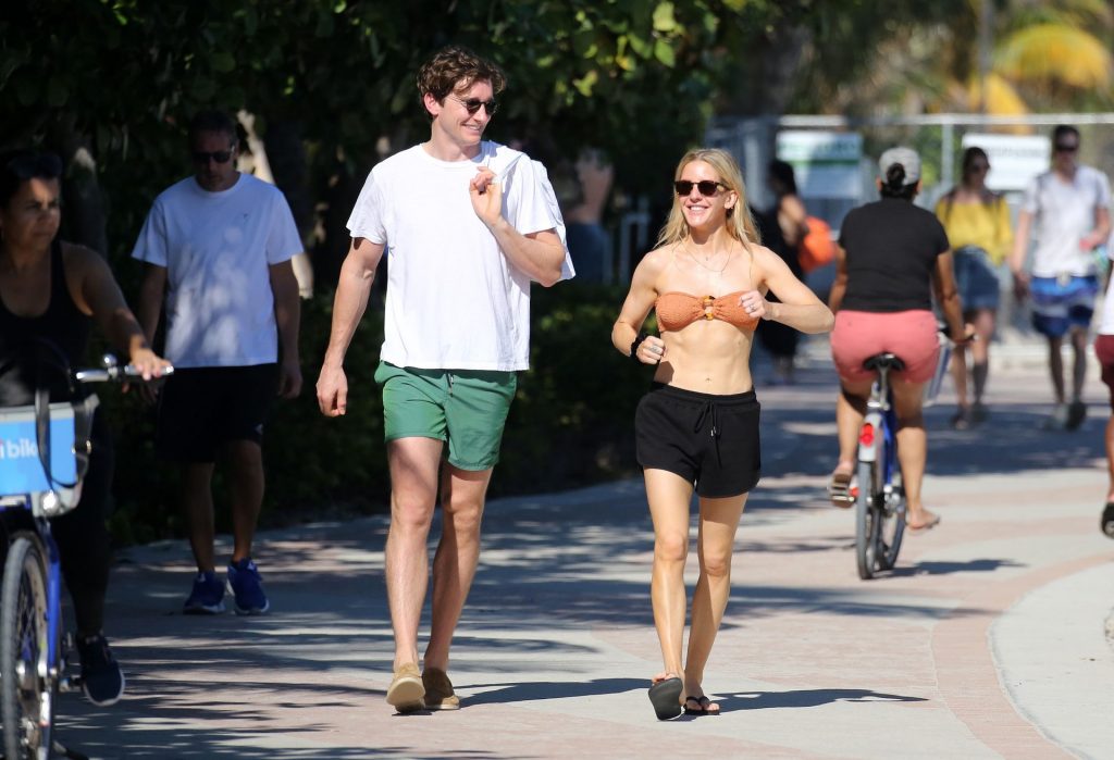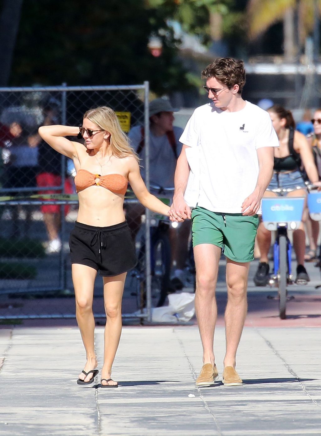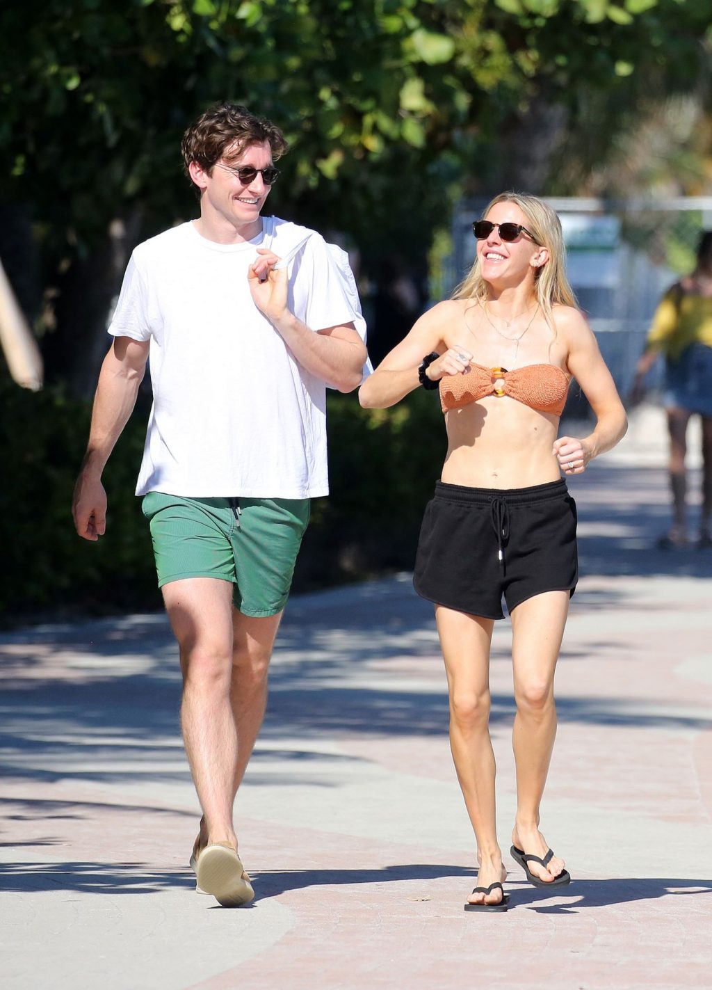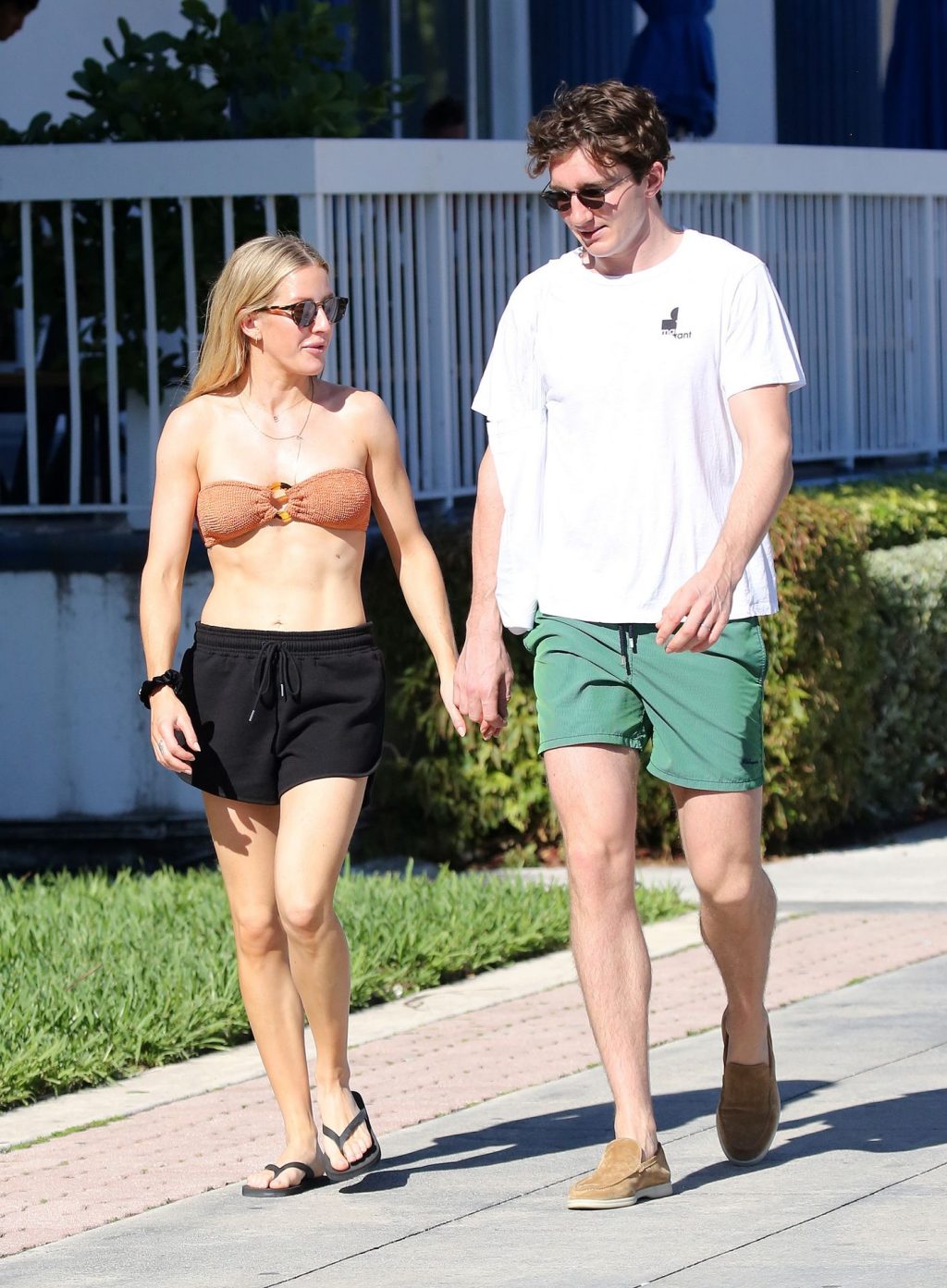 Cantora e estrela de The Fappening Ellie Goulding usa um top de biquíni tipo bandeau enquanto passeia com o marido Caspar Jopling em Miami no Dia de Ano Novo, 01/01/2020.