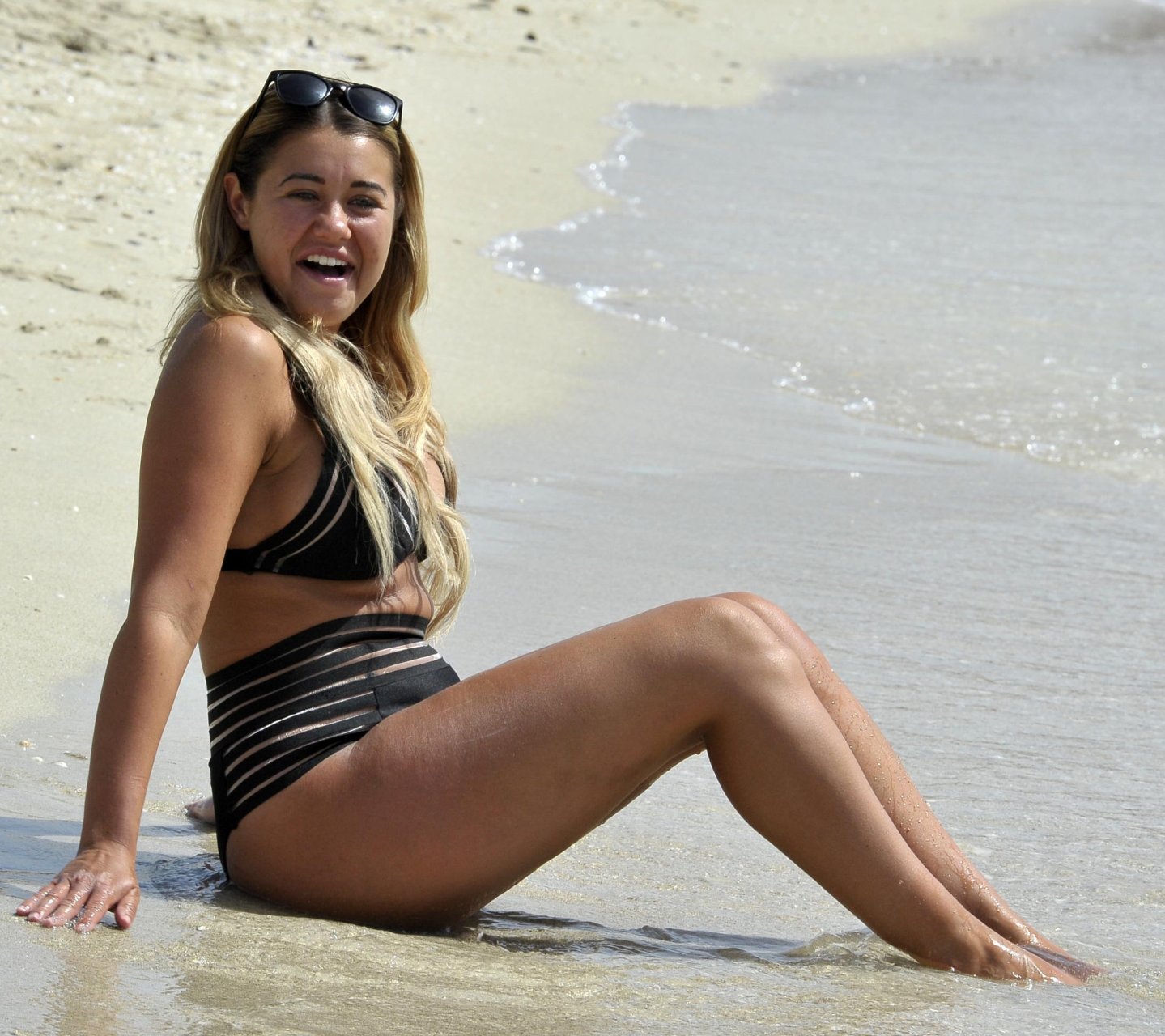 “Big Brother” e estrela de “Ibiza Weekender” Ellie Young aproveita um dia na praia, usando um biquíni preto durante uma escapada espanhola em Palma, Espanha, 15/11/2018.