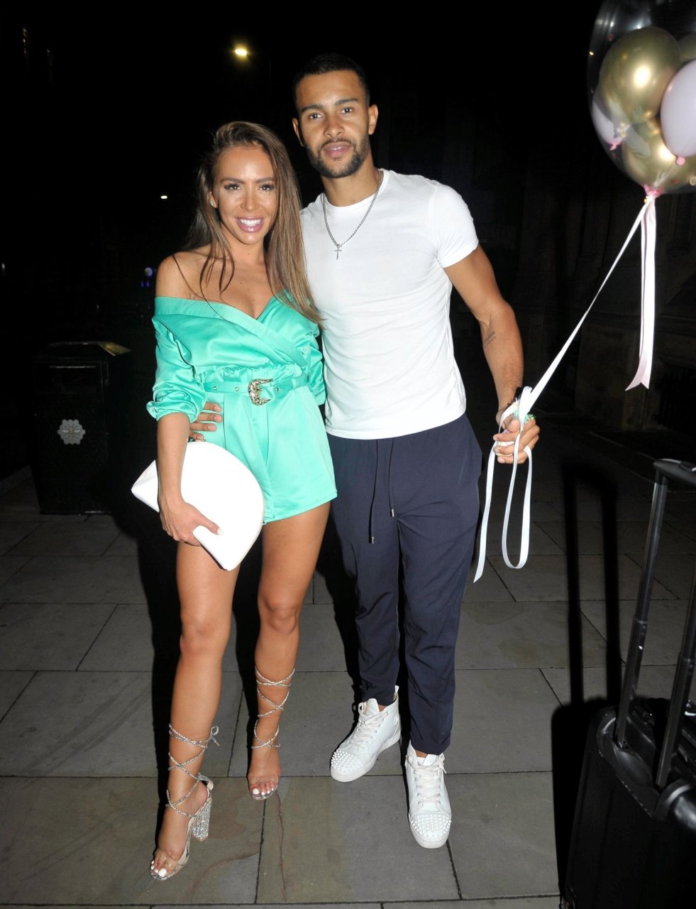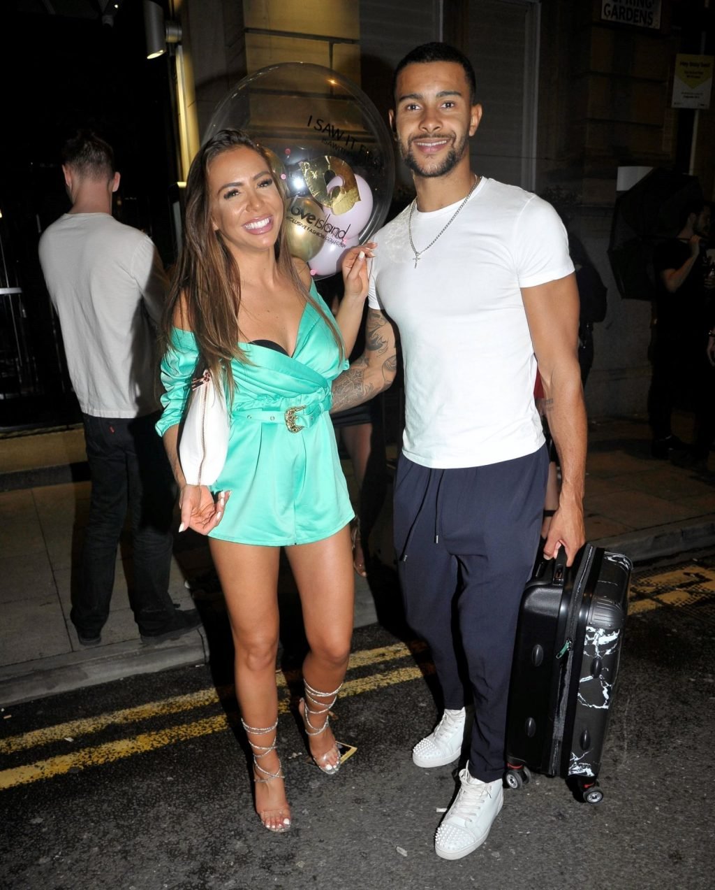 Estrela inglesa da TV reality Elma Pazar, de pernas longas, participa da festa The Love Island Final – I Saw It First no Restaurante Rosso em Manchester, 29/07/2019.