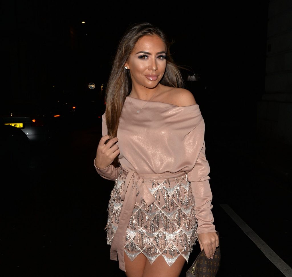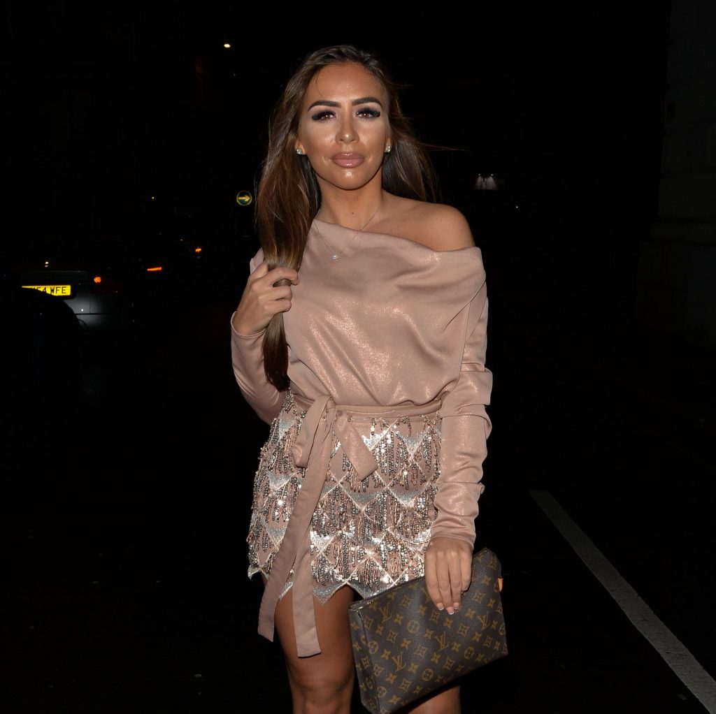 A estrela de reality show Elma Pazar, de pernas longas, foi vista saindo da boate Tape após festejar com amigos em Londres, 14/12/2019.