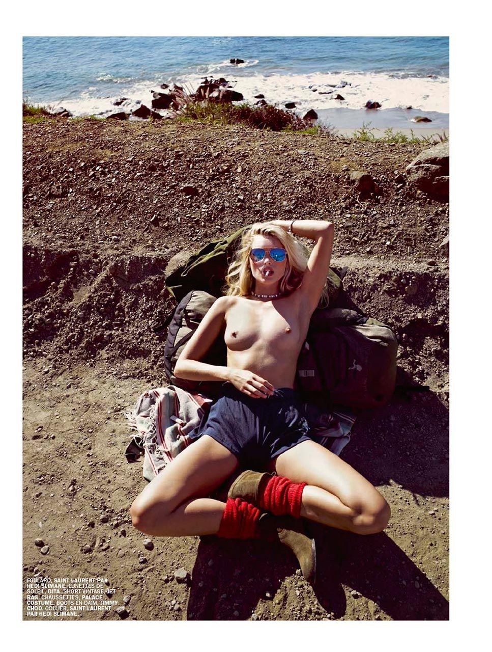 Guys, take a look at these Elsa Hosk’s hot photos she did for Vogue! These photos were taken just a few days ago, and we see Elsa Hosk topless and acting as a child on the swing and in the backyard!