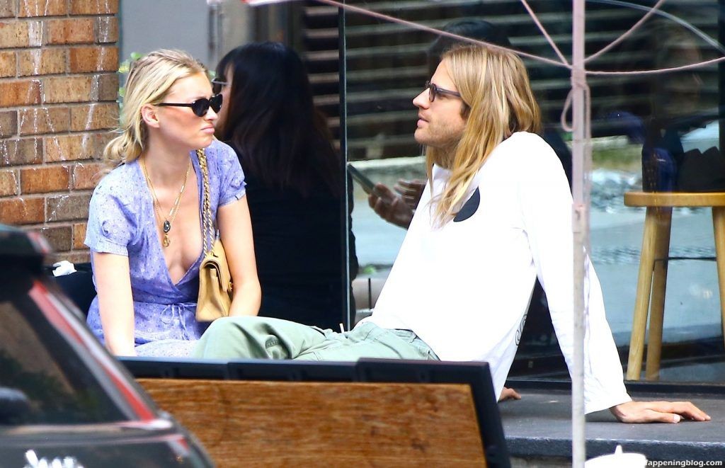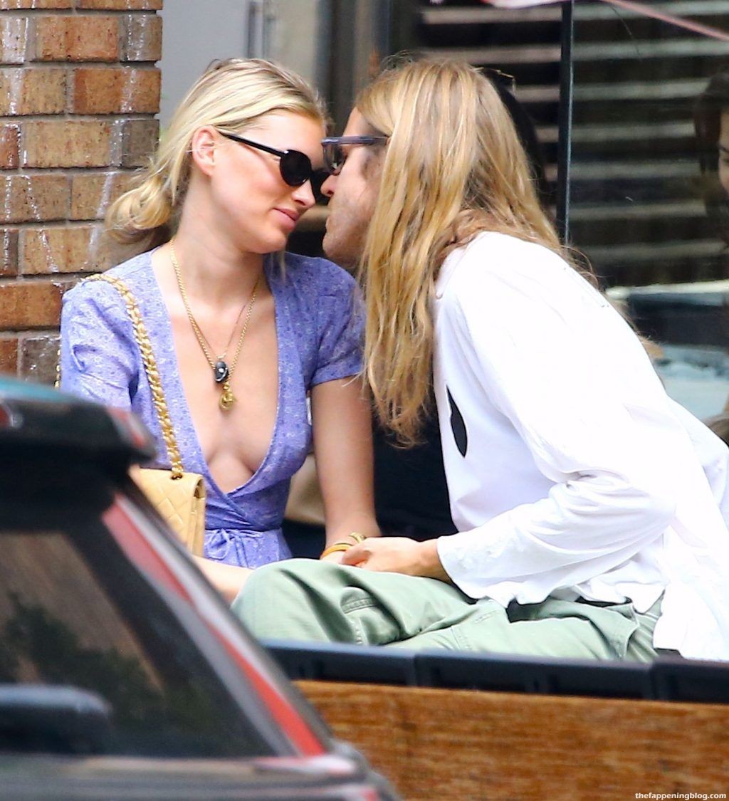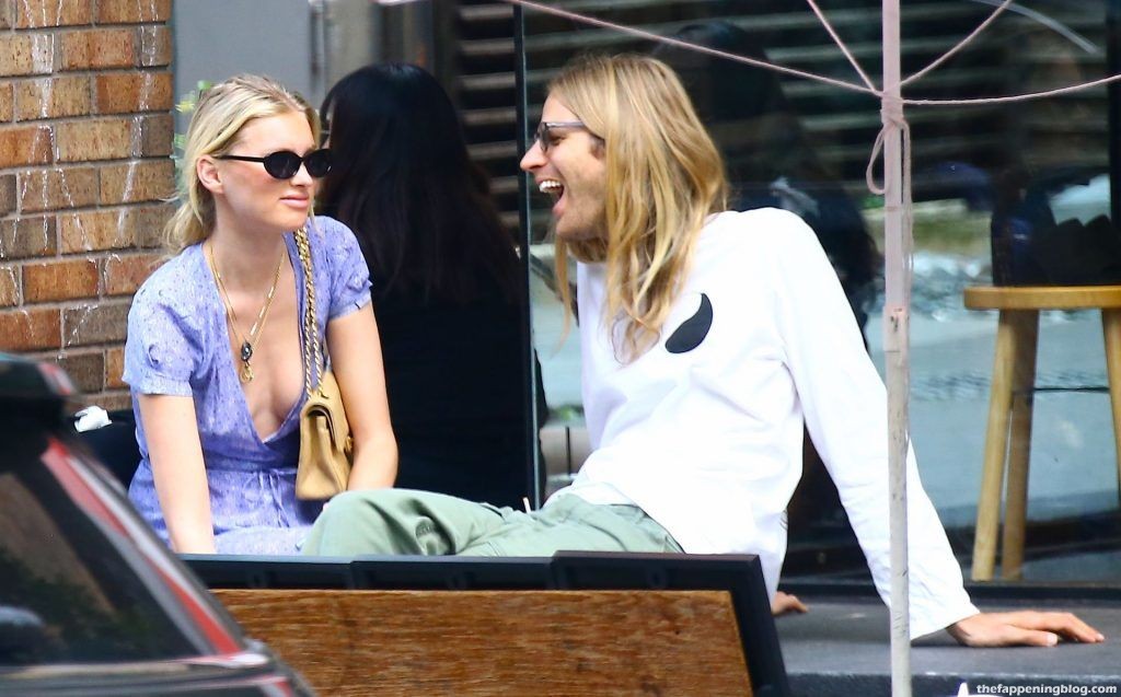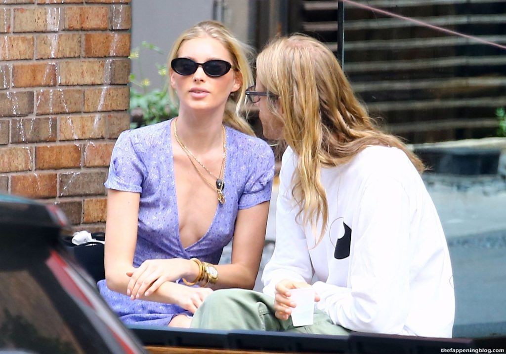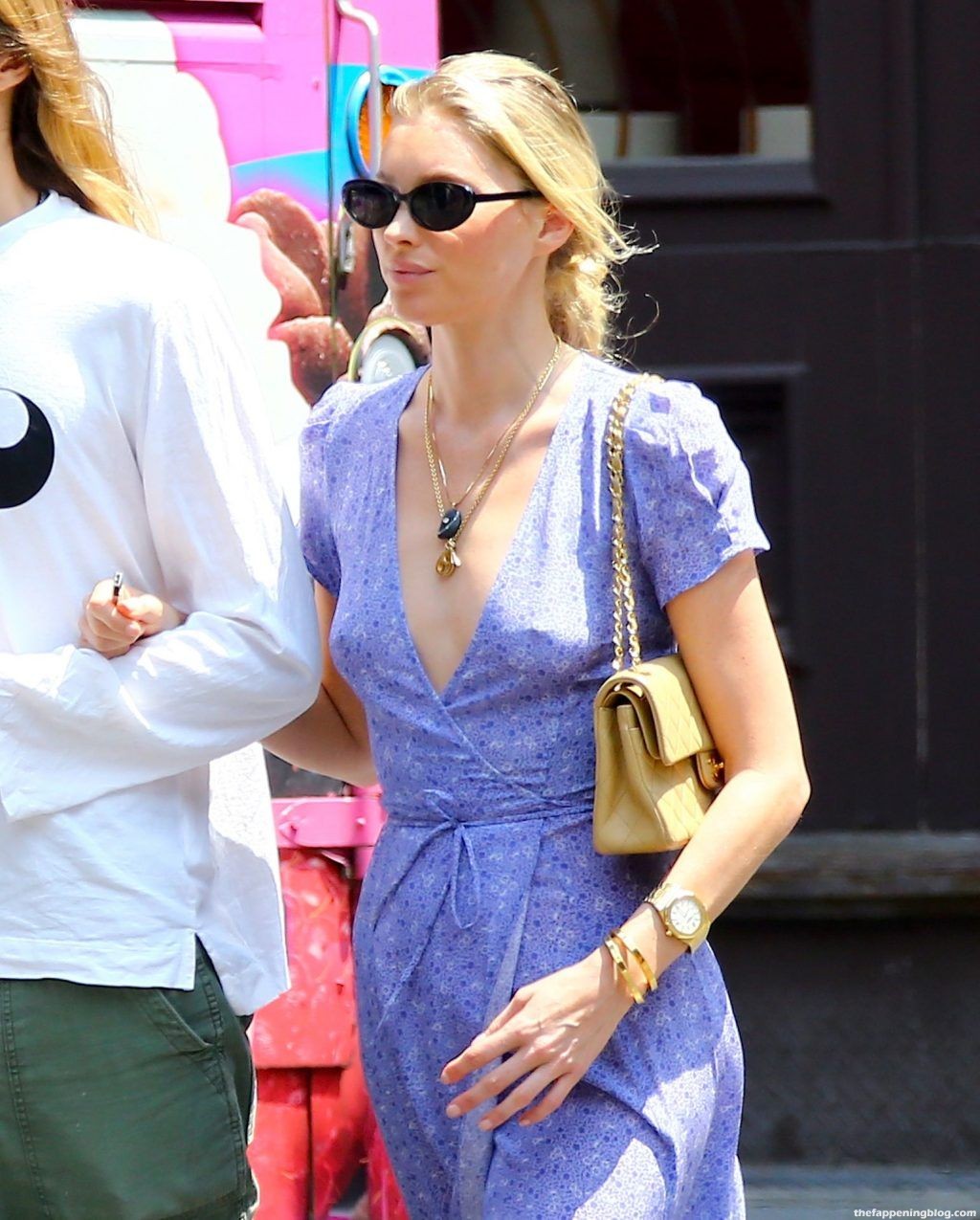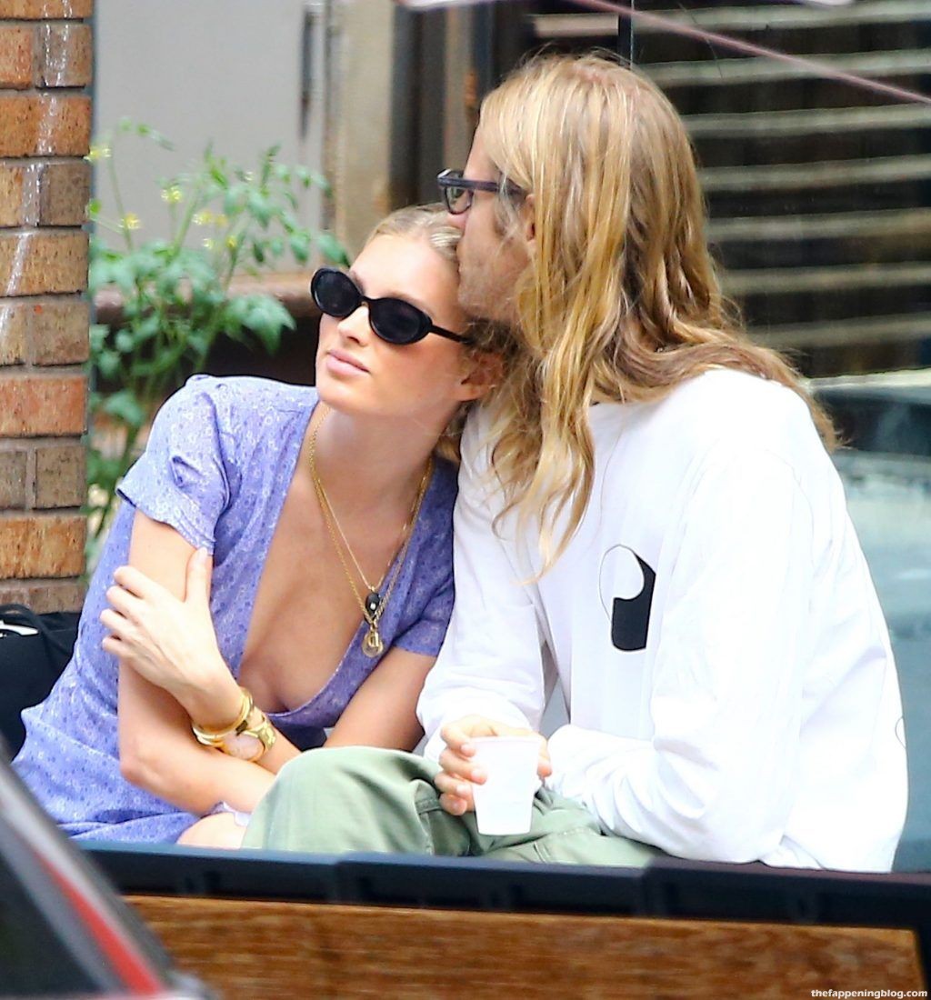 Check out one of the most famous Victoria’s Secret Angel Elsa Hosk braless pics from New York! Elsa was seen with her boyfriend shopping around Soho, then drinking coffee with him and kissing! This man looks just like Hosk’s twin sister; it’s so freaky seeing them together, holding hands, and making out! The blonde supermodel wore a blue dress with deep cleavage and no bra, so her nipples were poking for photographers!