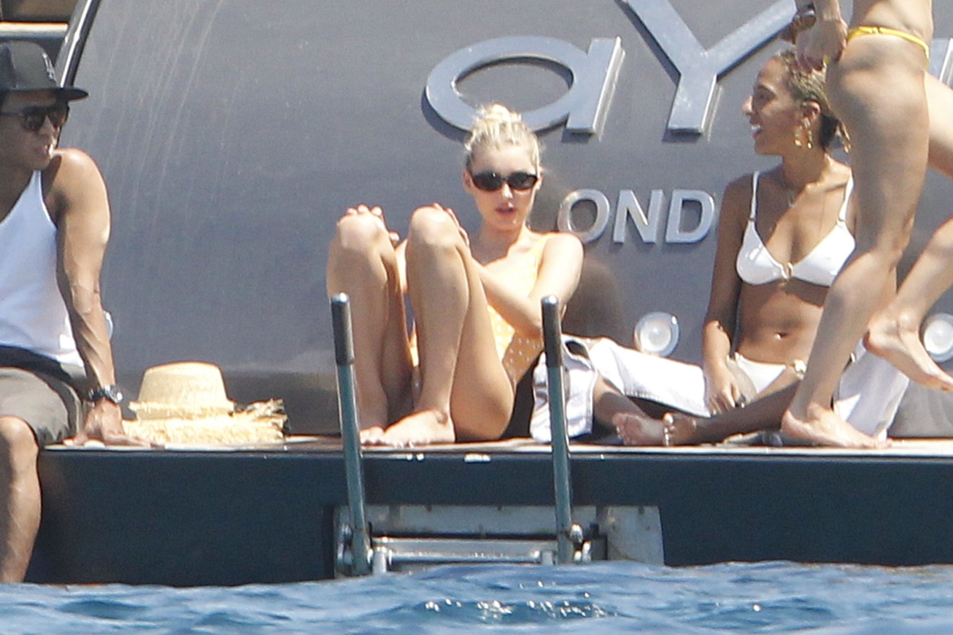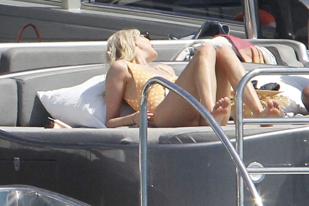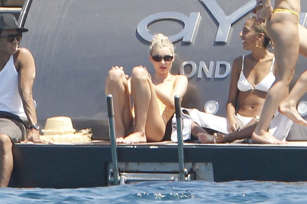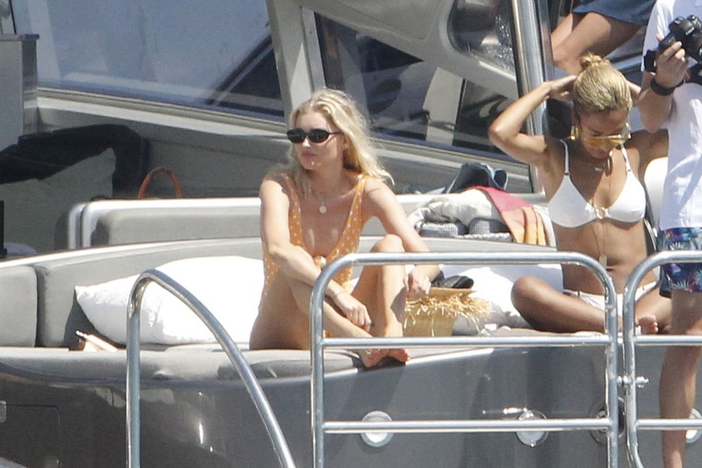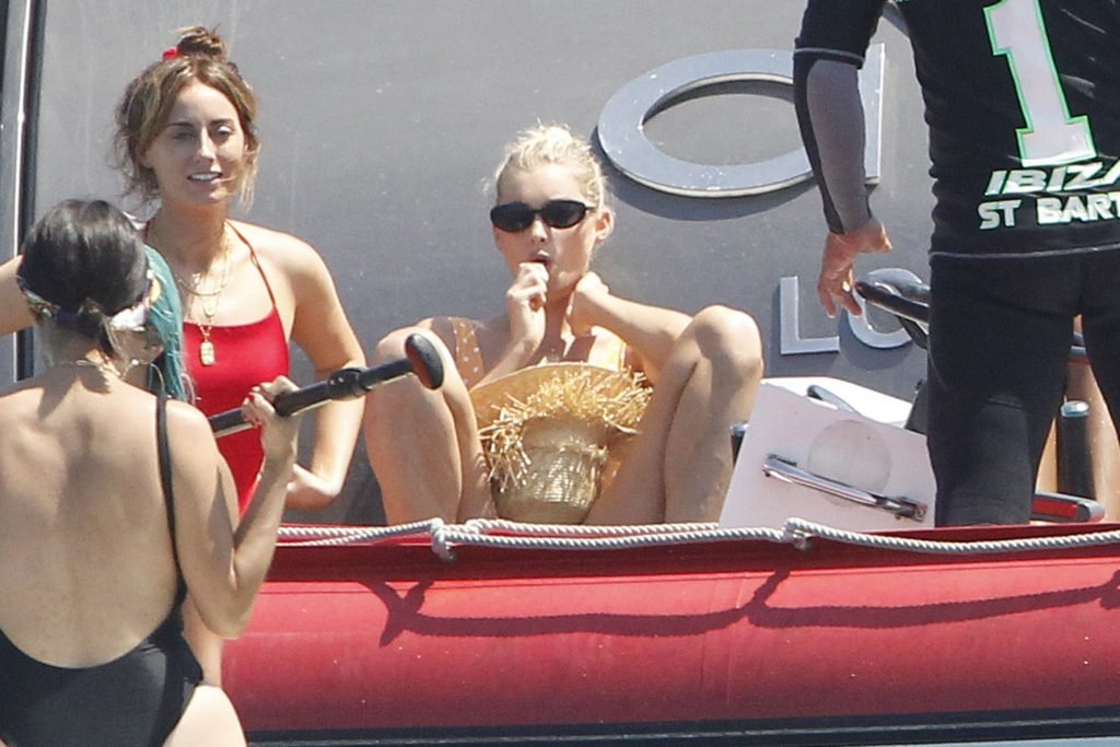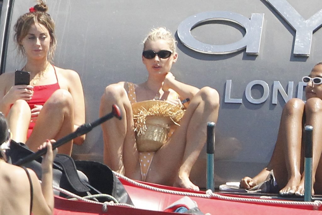 Angel da Victoria’s Secret Elsa Hosk (29) aproveita um dia de barco em Formentera, 26/06/2018. A modelo pode ser vista no convés traseiro do barco aproveitando o sol enquanto segura e usa um chapéu de palha.