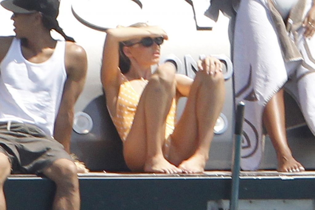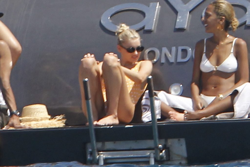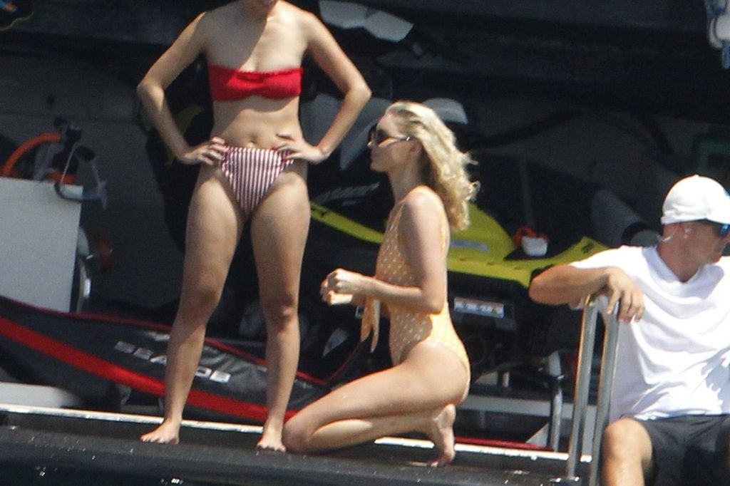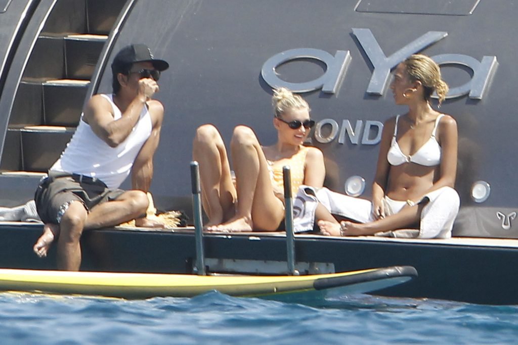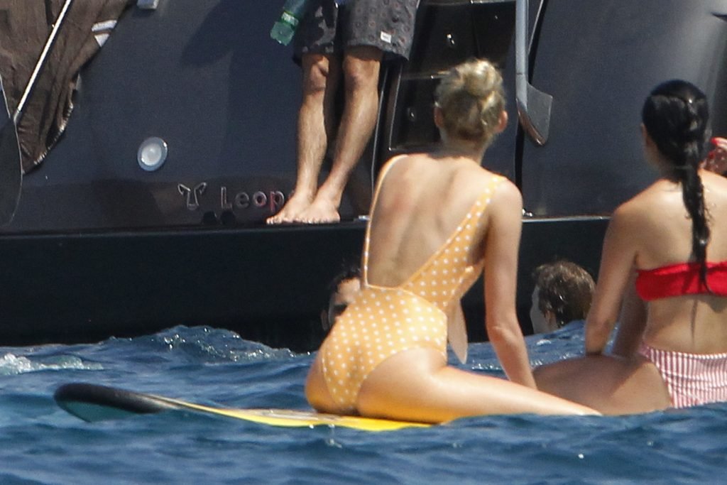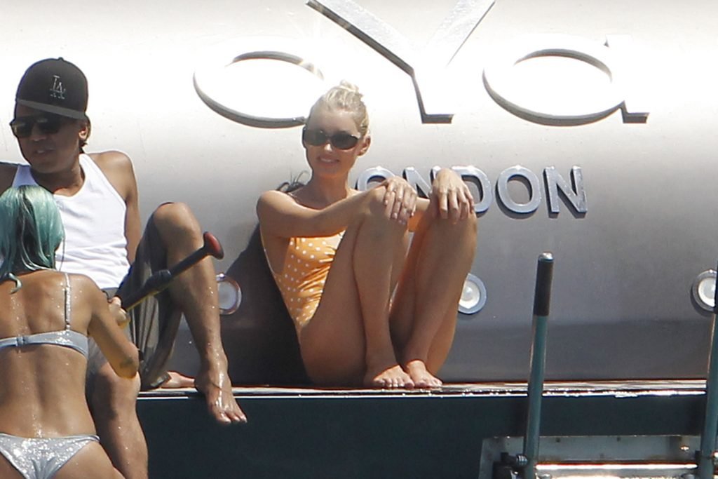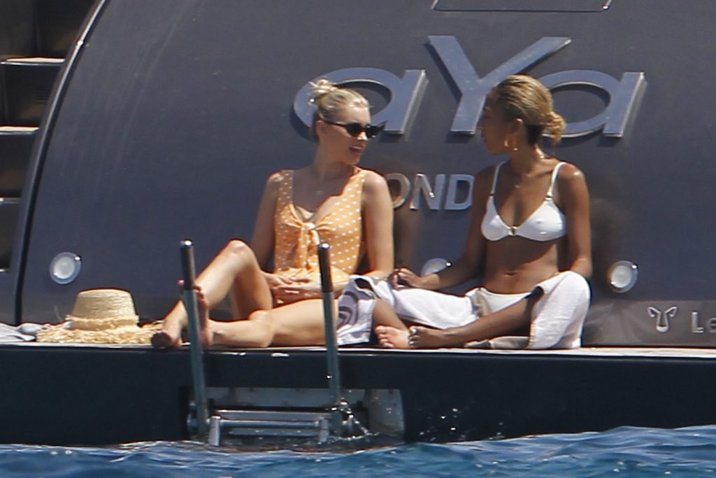Angel da Victoria’s Secret Elsa Hosk (29) aproveita um dia de barco em Formentera, 26/06/2018. A modelo pode ser vista no convés traseiro do barco aproveitando o sol enquanto segura e usa um chapéu de palha.