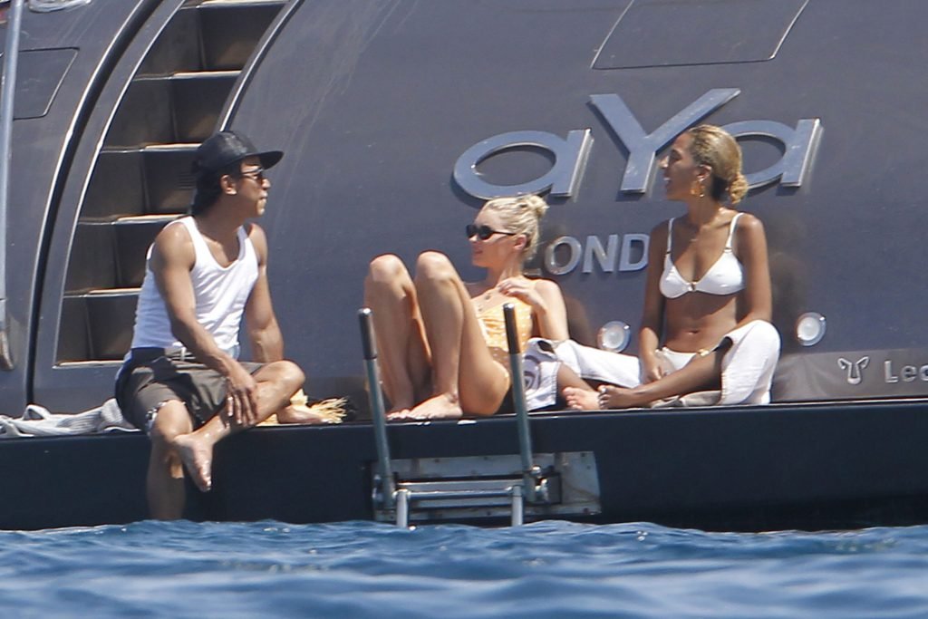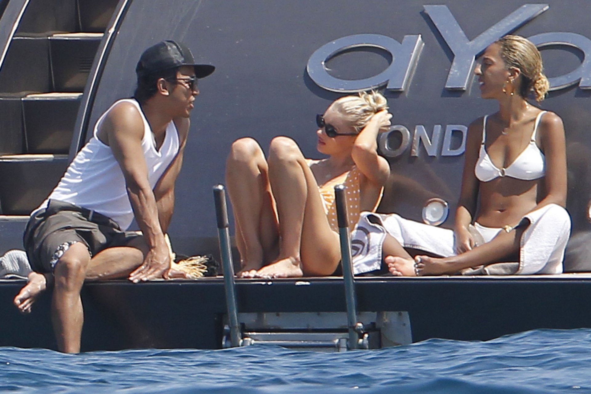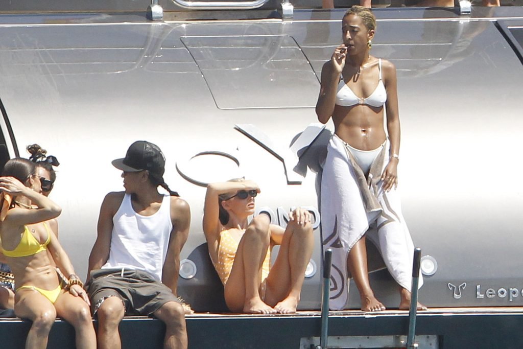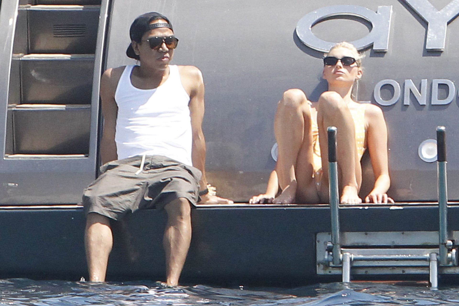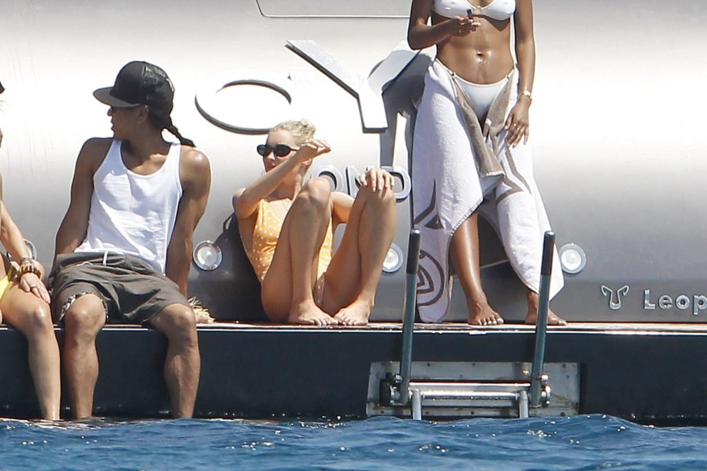 Angel da Victoria’s Secret Elsa Hosk (29) aproveita um dia de barco em Formentera, 26/06/2018. A modelo pode ser vista no convés traseiro do barco aproveitando o sol enquanto segura e usa um chapéu de palha.