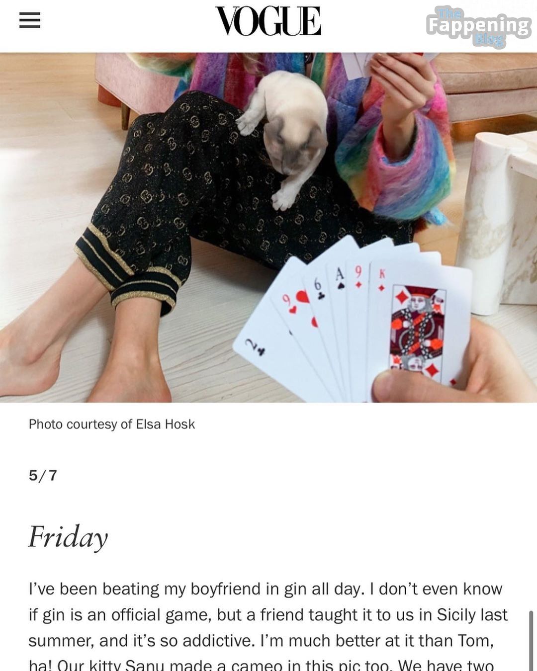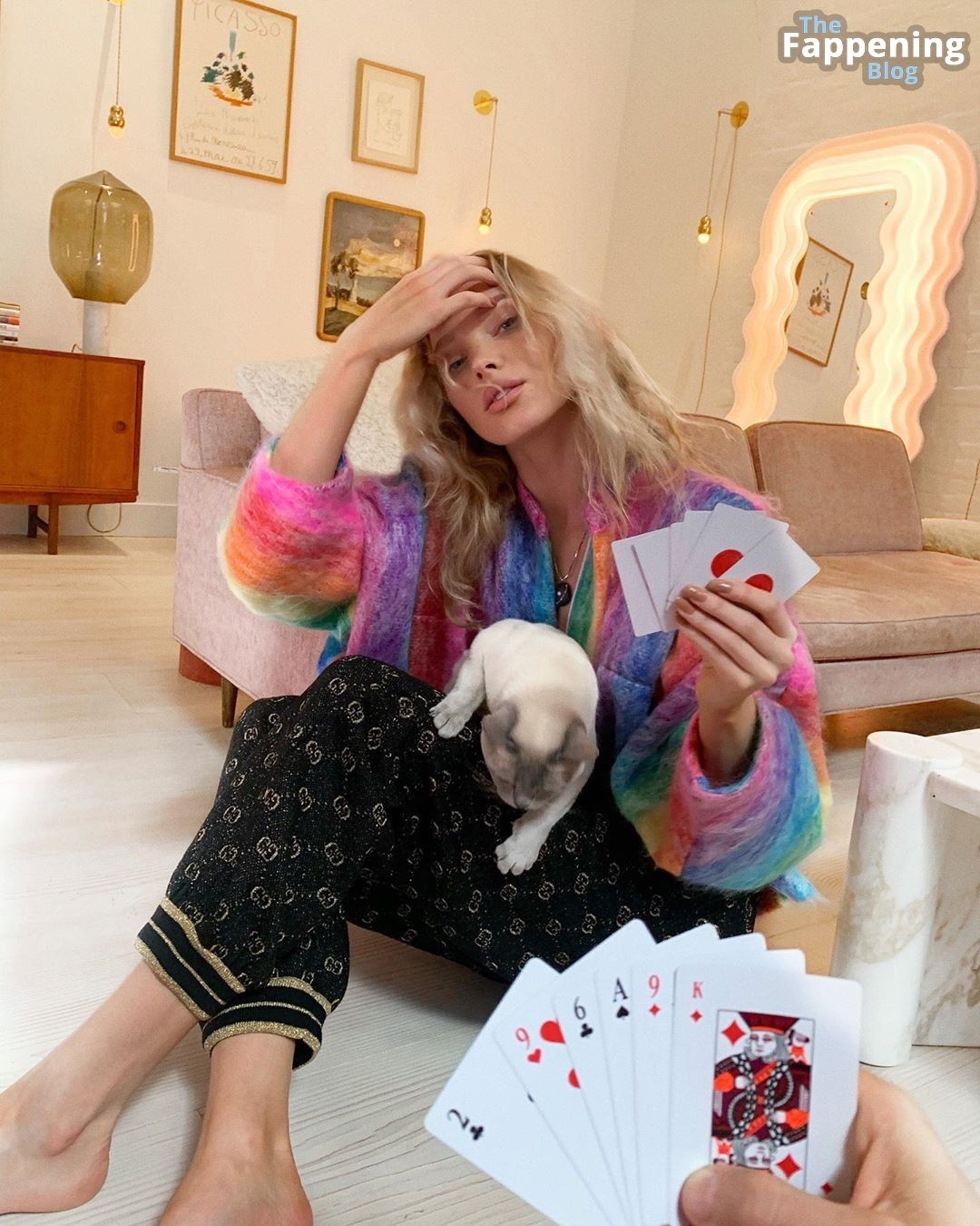 Elsa Hosk mantém o estilo em casa, arrasando com looks ousados e estilosos como se a quarentena fosse uma passarela. Mudando de visual diariamente, ela está tratando o isolamento social como um desfile de moda. Para uma noite tranquila com seu namorado, ela vestiu um cardigan colorido H2ofagerholt diretamente na pele, combinado com calças pretas Gucci exibindo o logo — fácil de tirar rápido para se divertir! Seu cabelo leve e ondulado estava solto, e ela manteve a maquiagem discreta com tons naturais.