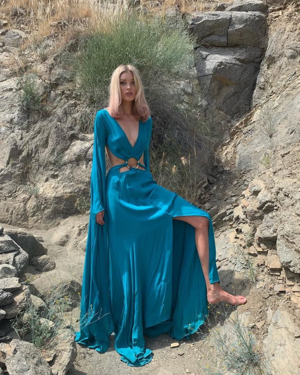 Elsa Hosk fica topless no Instagram (maio de 2019). A modelo sueca de 30 anos posou em novos ensaios fotográficos, incluindo uma foto da loira deitada no chão cobrindo os seios, e posando ao ar livre com um vestido verde justo.