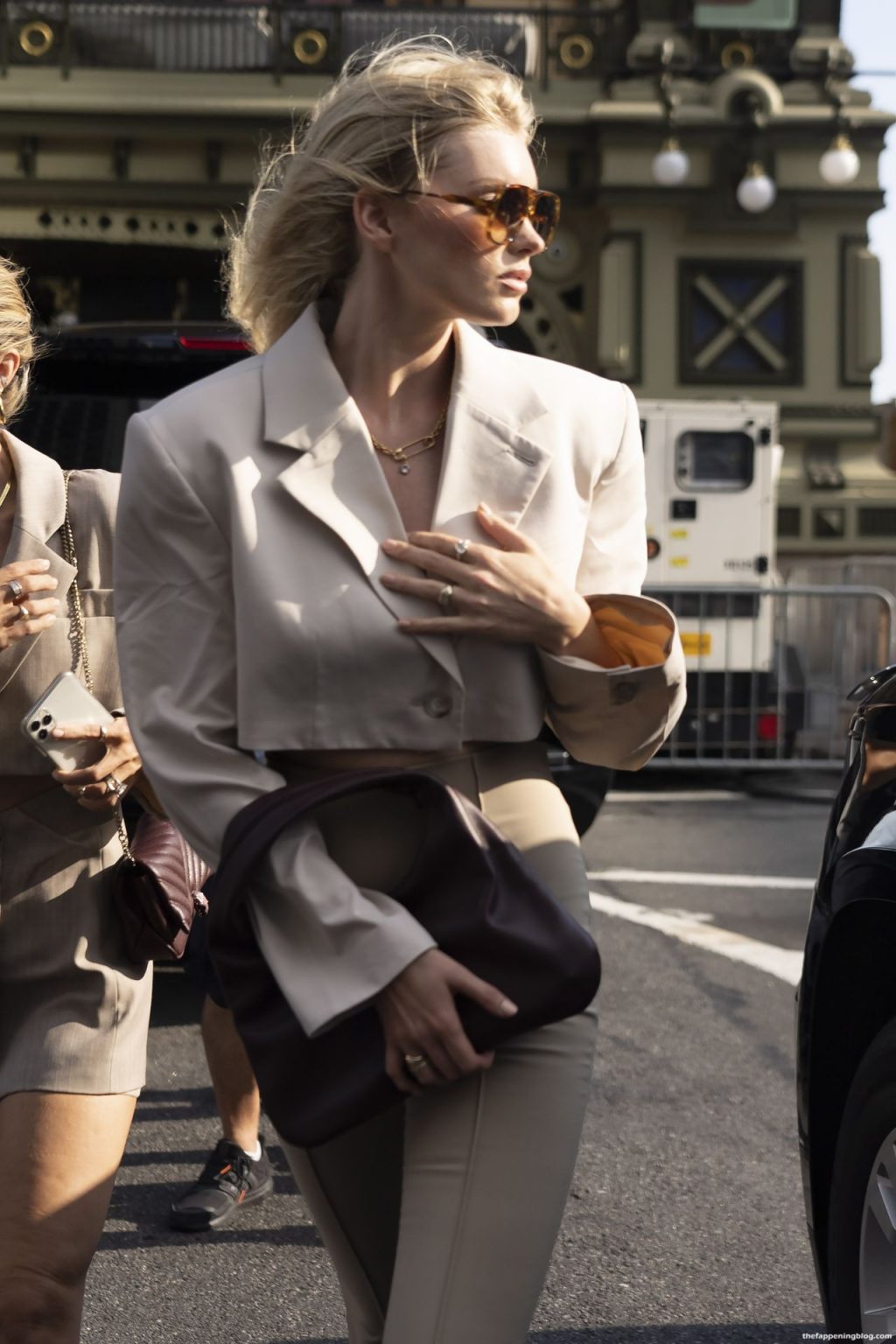 Modelo Elsa Hosk mostra seu underboob enquanto participa do evento Revolve X Dundas na NYFW SS2022, 09/09/2021.