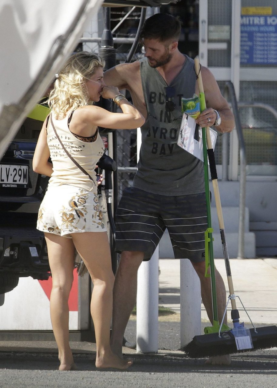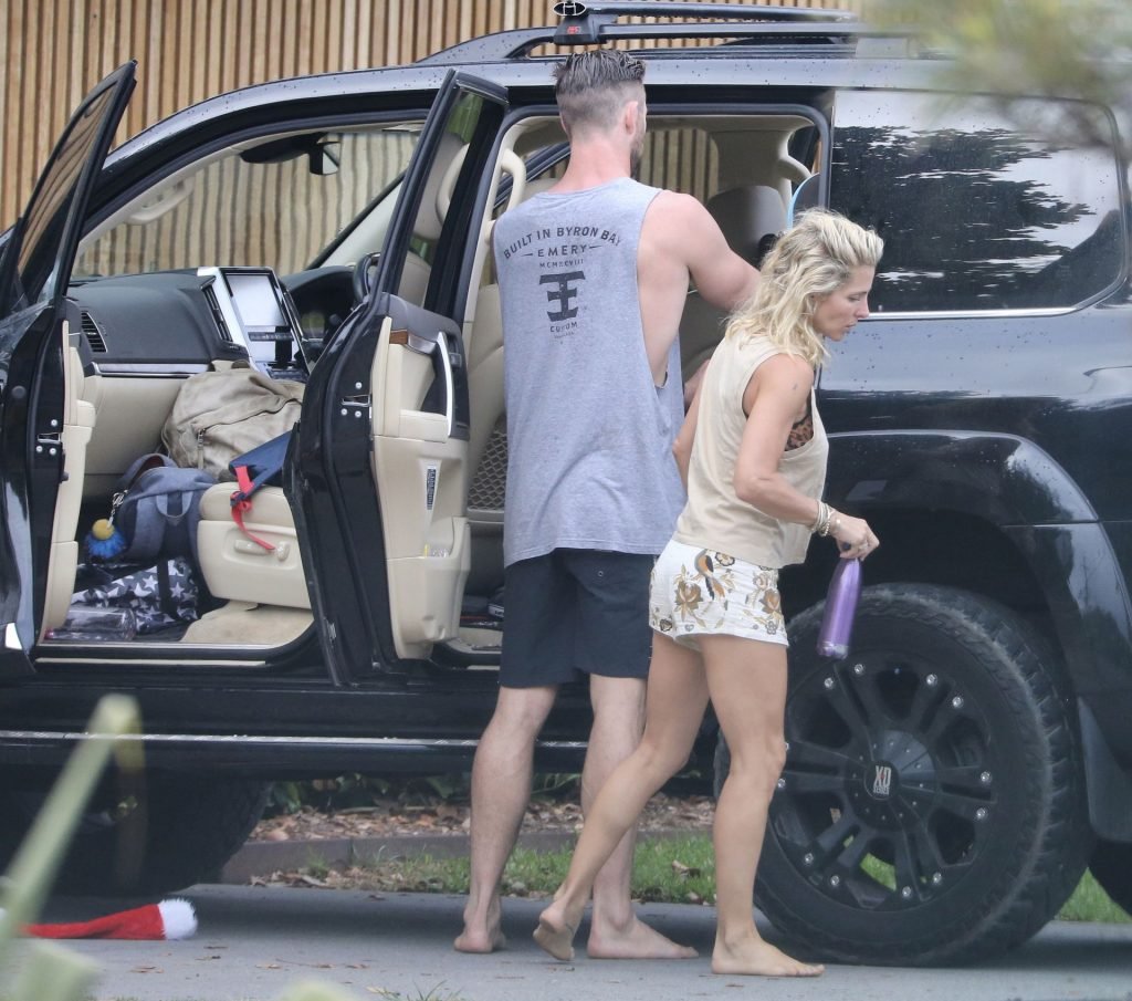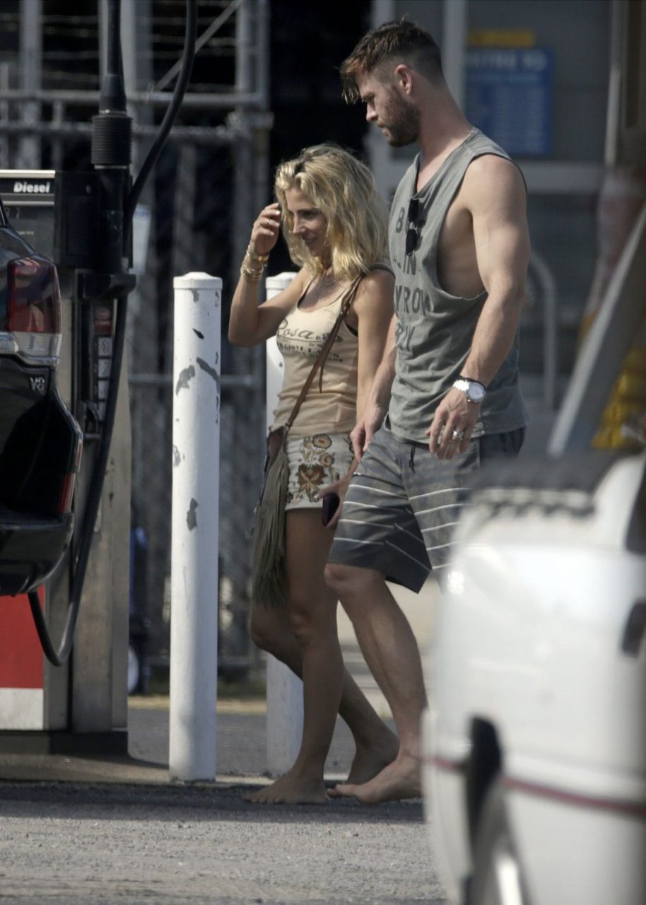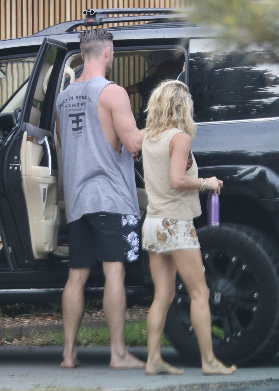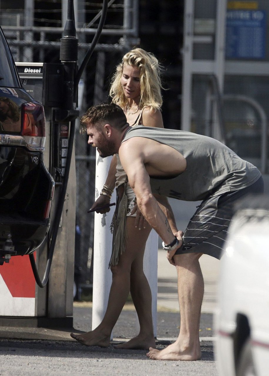 Chris Hemsworth exibe um novo corte de cabelo enquanto faz compras de supermercado com sua esposa, Elsa Pataky, em Byron Bay, 02/06/2019.