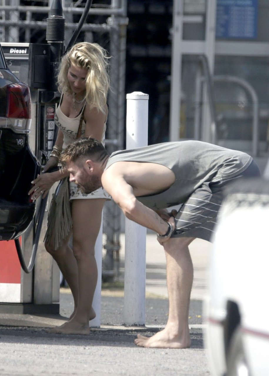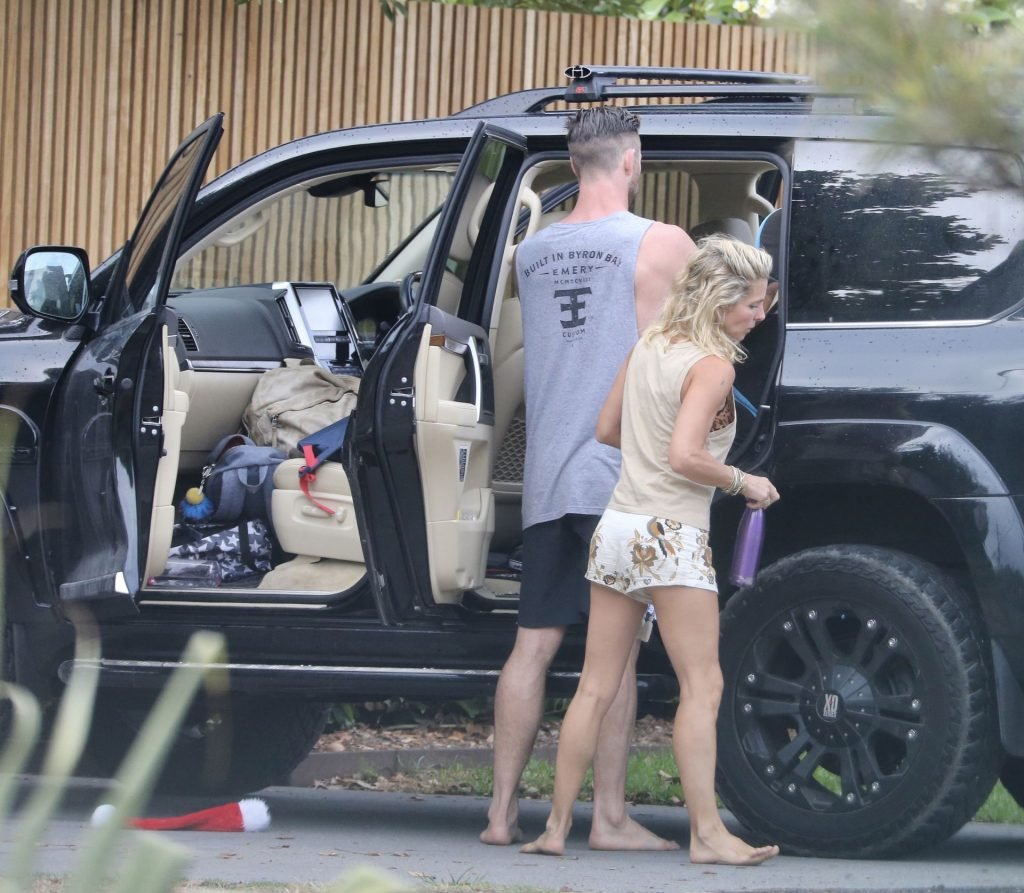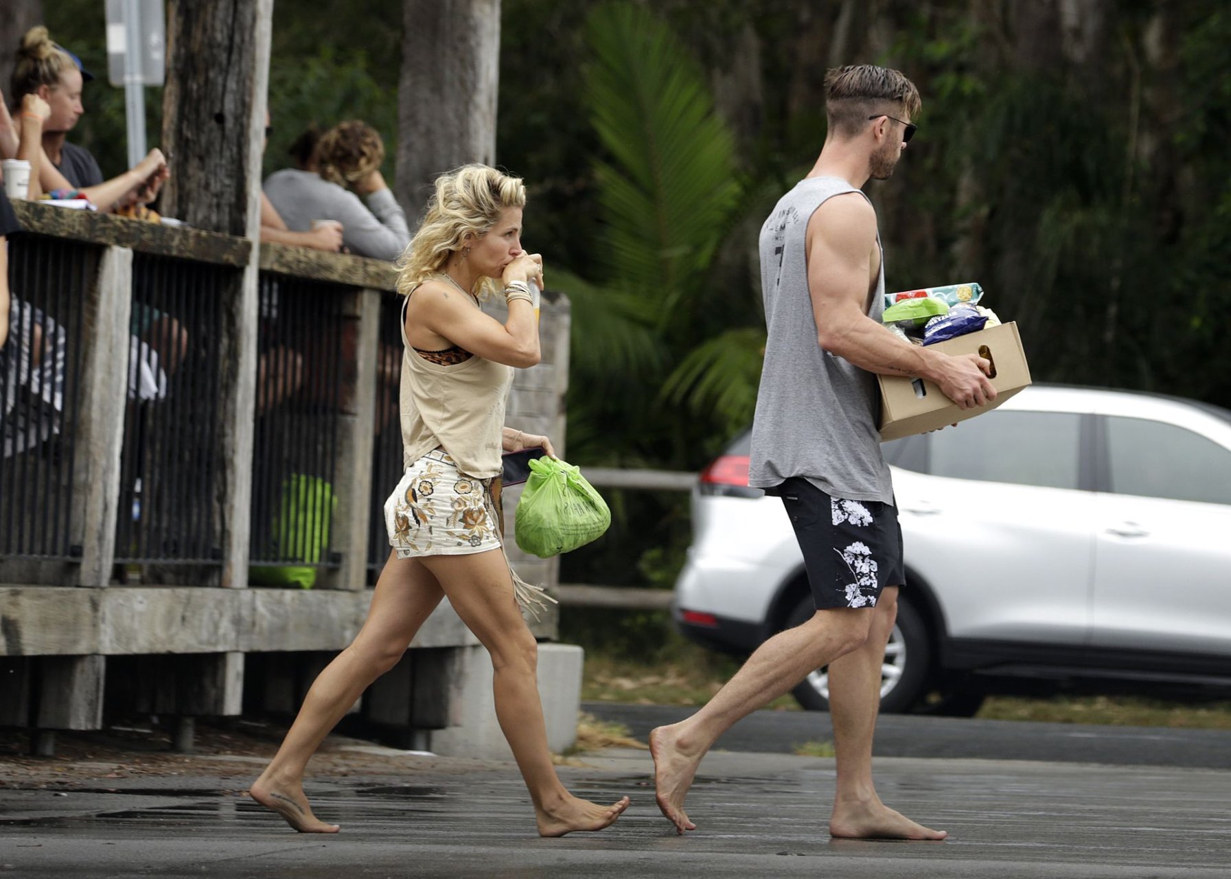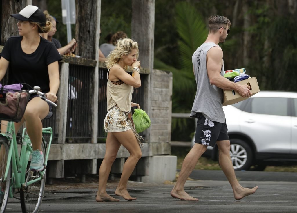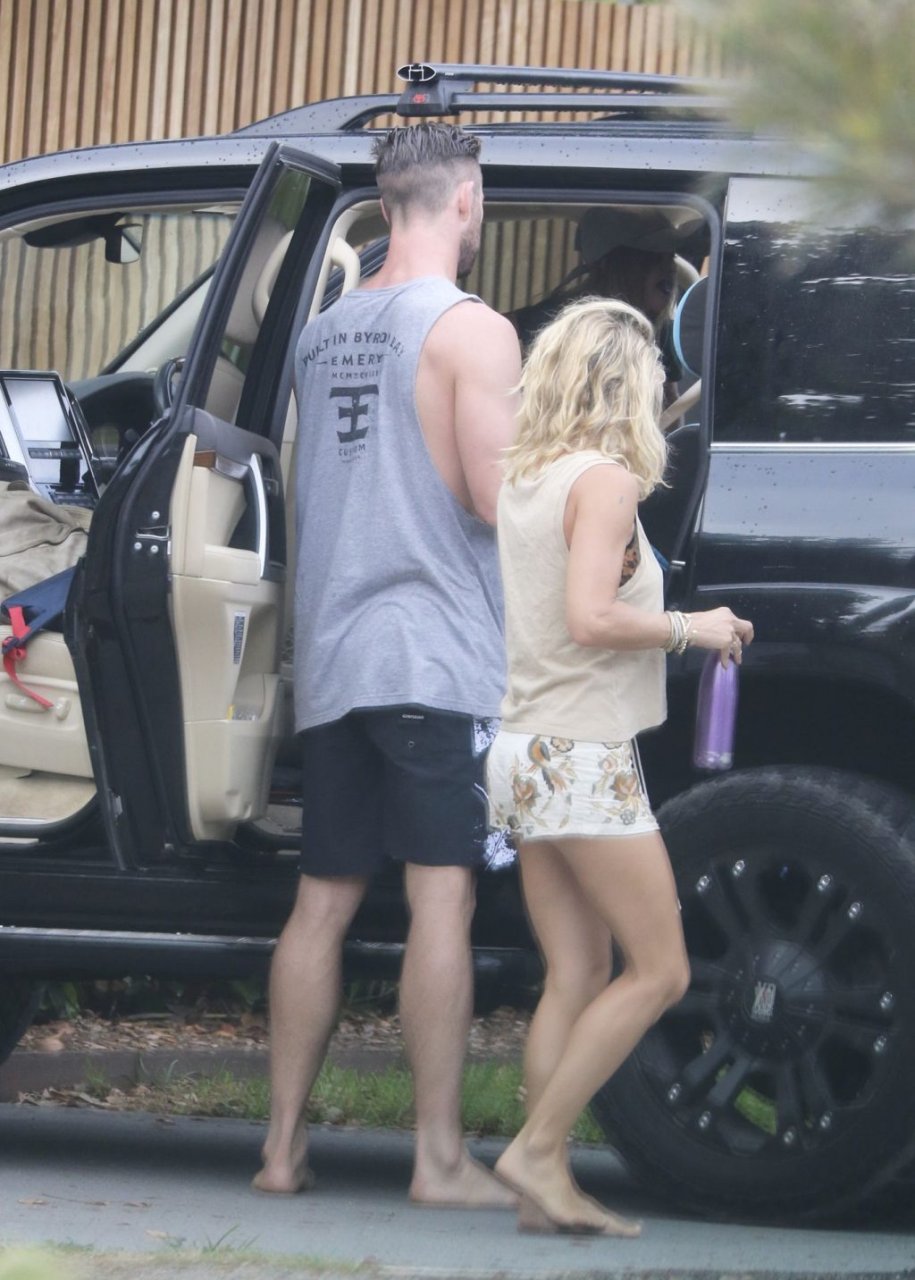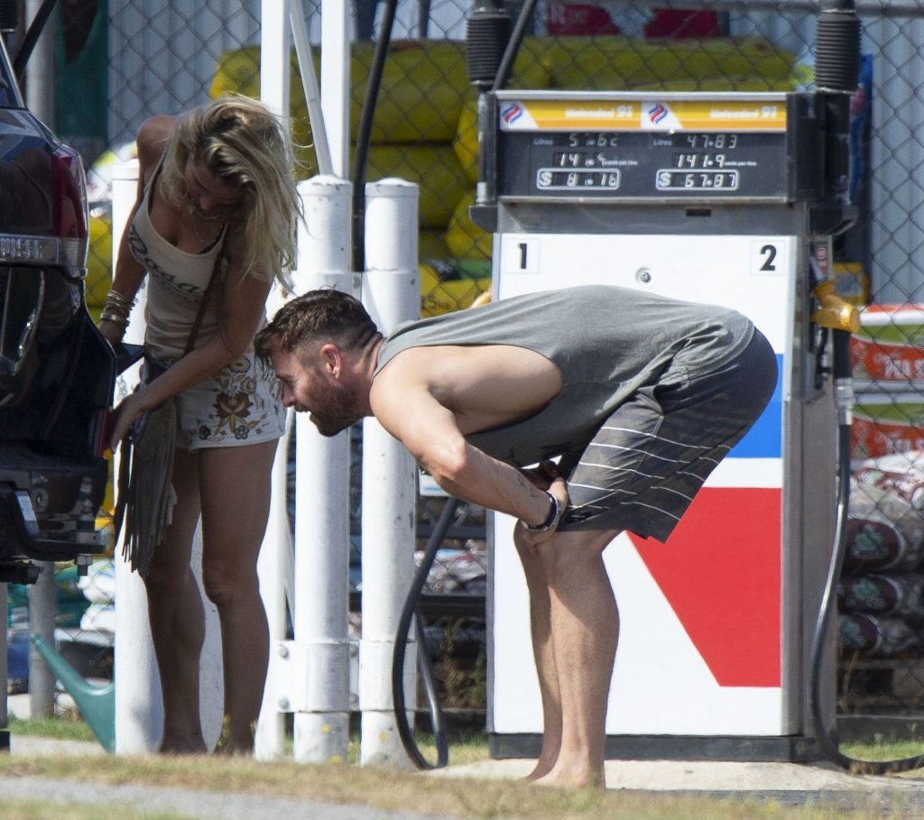 Chris Hemsworth exibe um novo corte de cabelo enquanto faz compras de supermercado com sua esposa, Elsa Pataky, em Byron Bay, 02/06/2019.