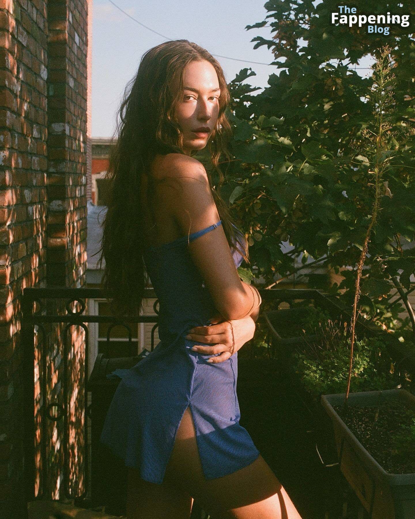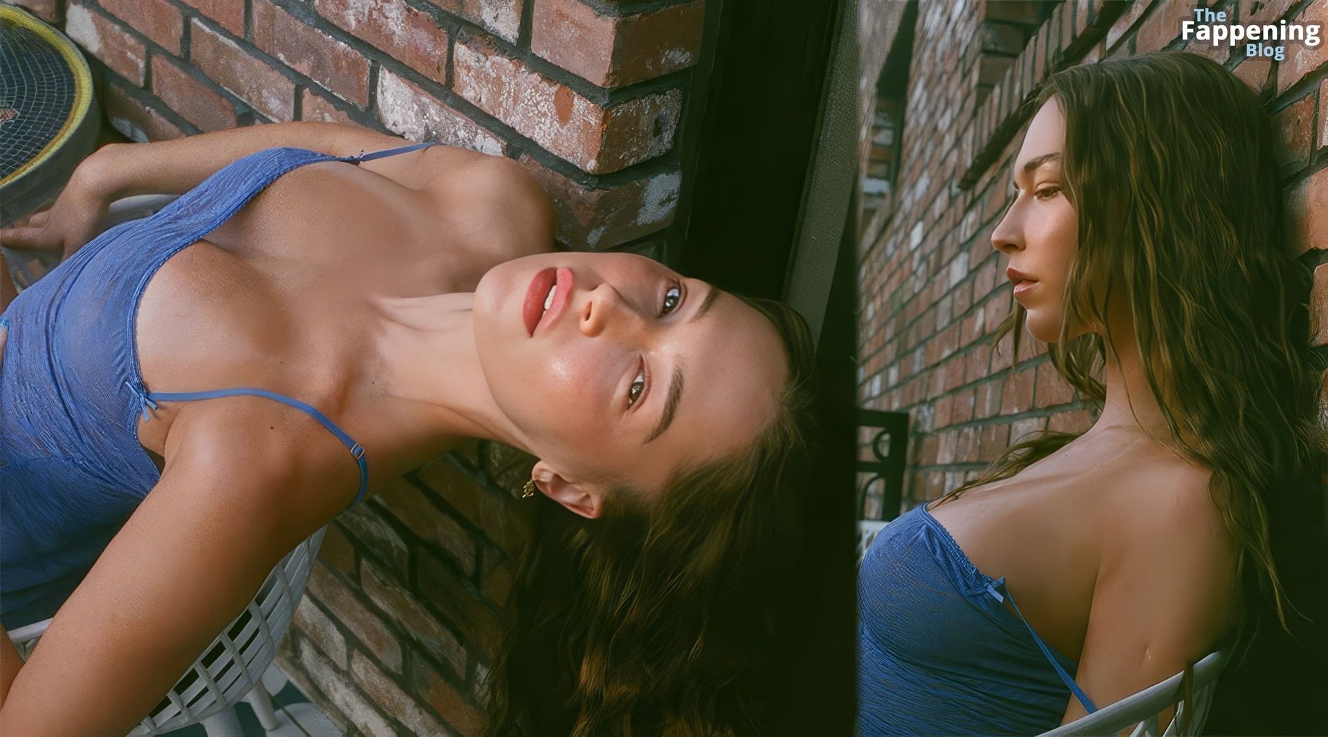 O ensaio sensual de Elsie Hewitt está quente, destacando seu decote em um vestido azul justo. Você precisa conferir essas fotos na varanda.